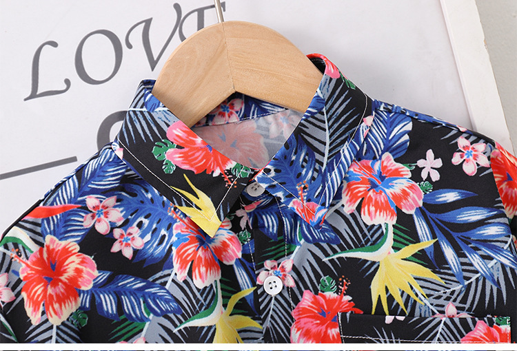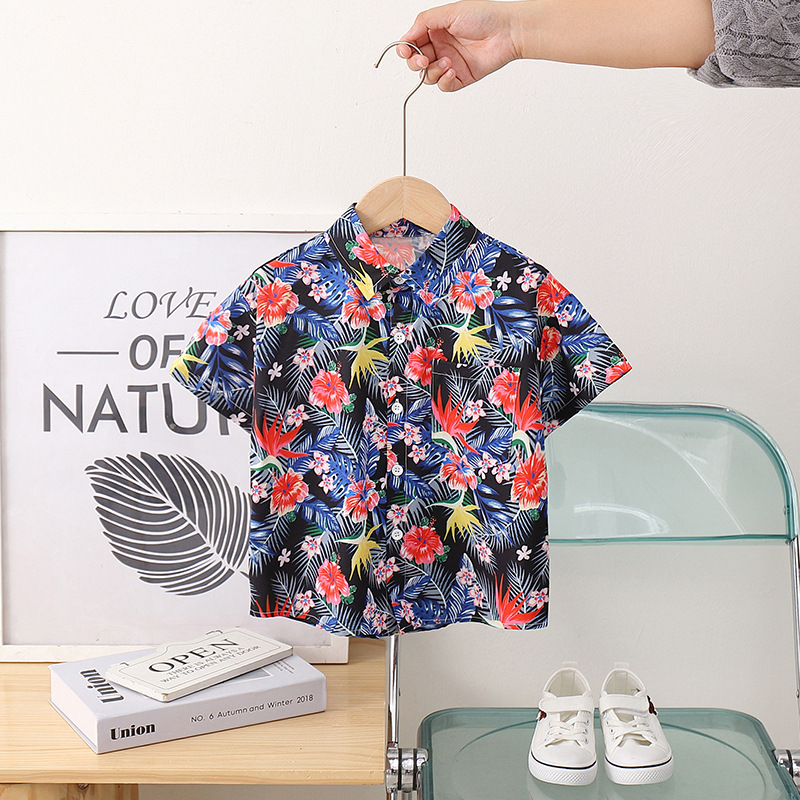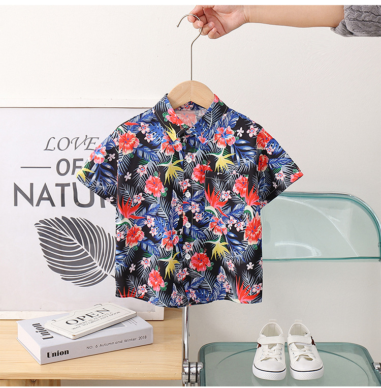 어린이 의류 공급 체인] 소년 여름 반팔 꽃 무늬 셔츠 세트 Pu shuaibao Bao 홍콩 스타일 어린이 꽃 무늬 셔츠 여름복스토어 가기
