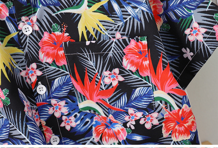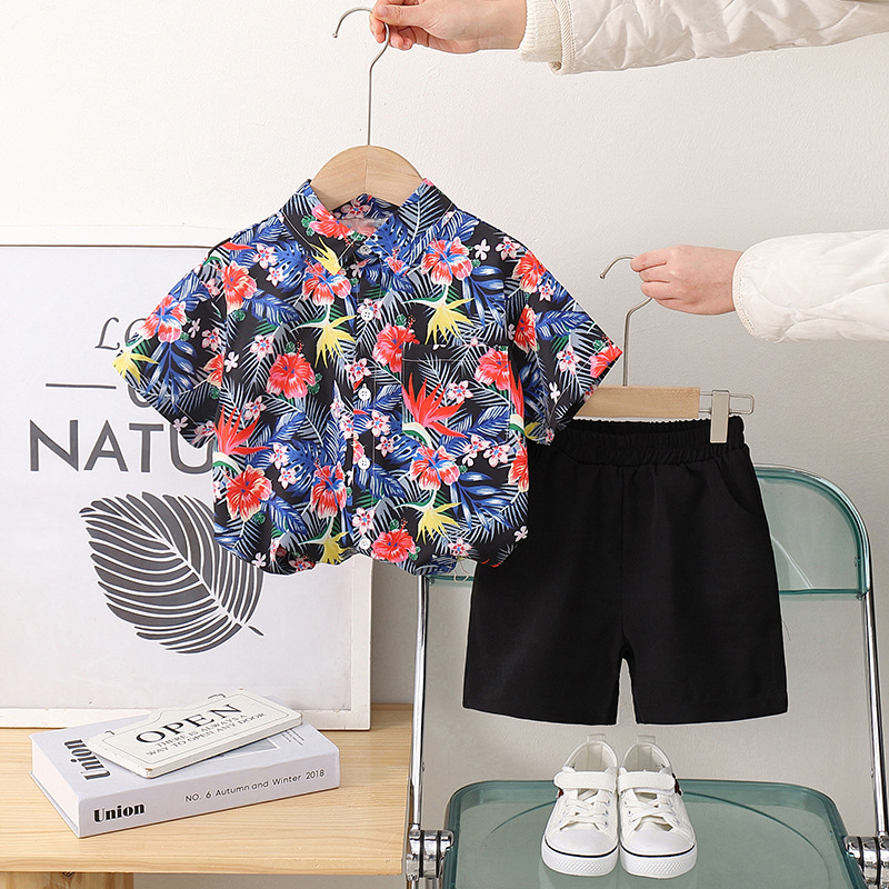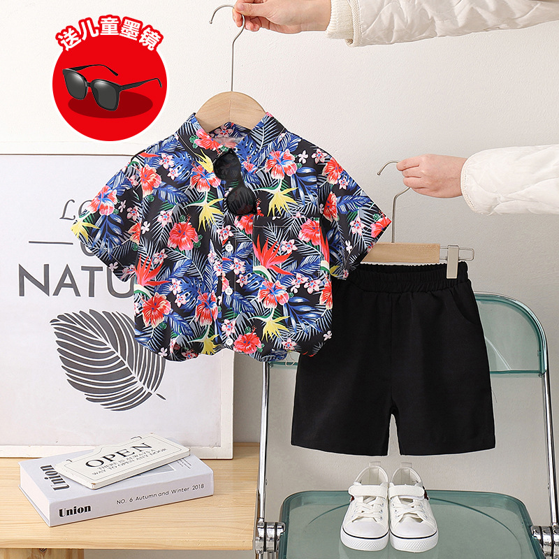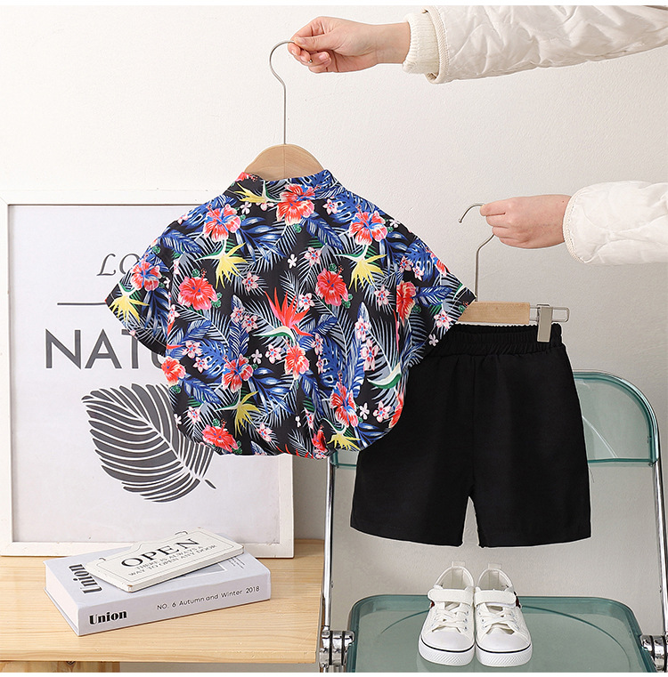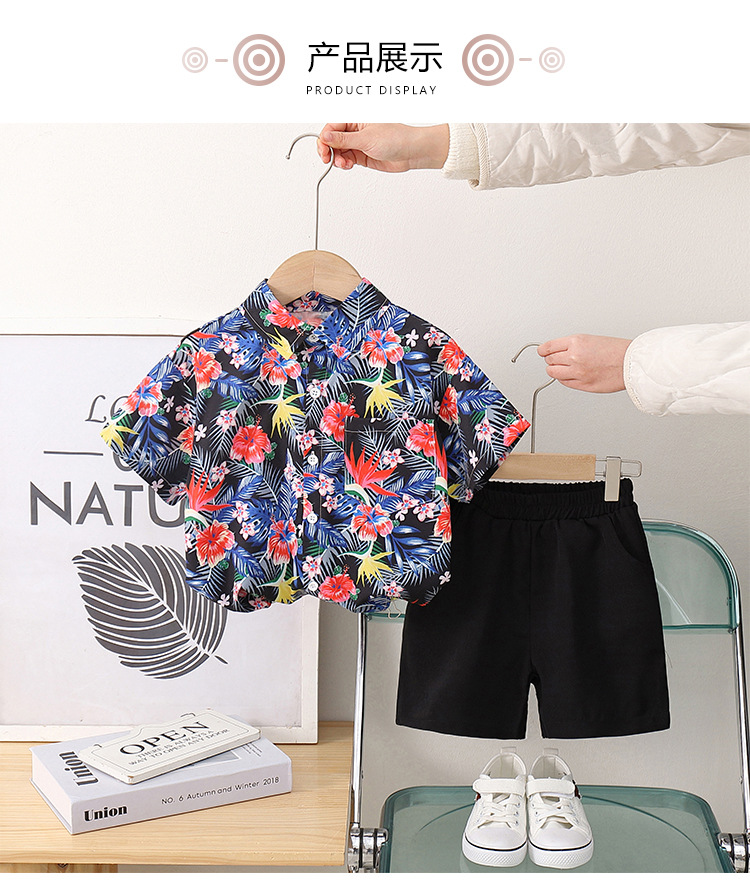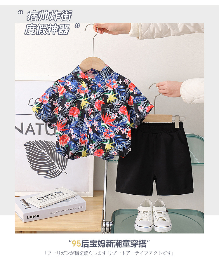 어린이 의류 공급 체인] 소년 여름 반팔 꽃 무늬 셔츠 세트 Pu shuaibao Bao 홍콩 스타일 어린이 꽃 무늬 셔츠 여름복