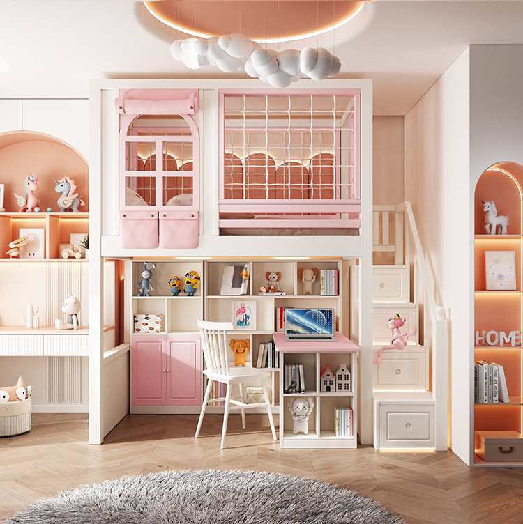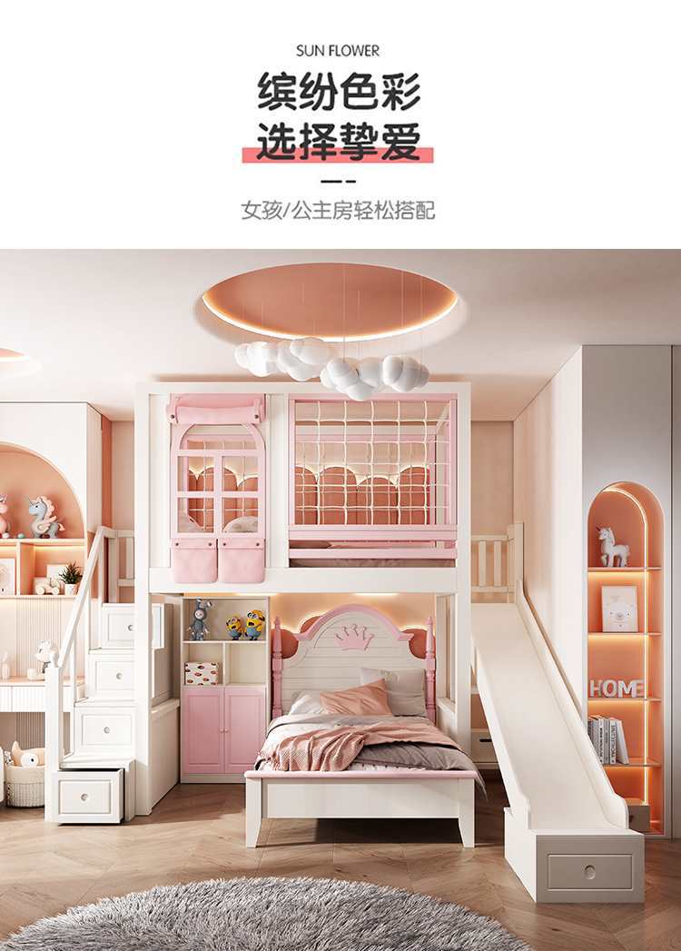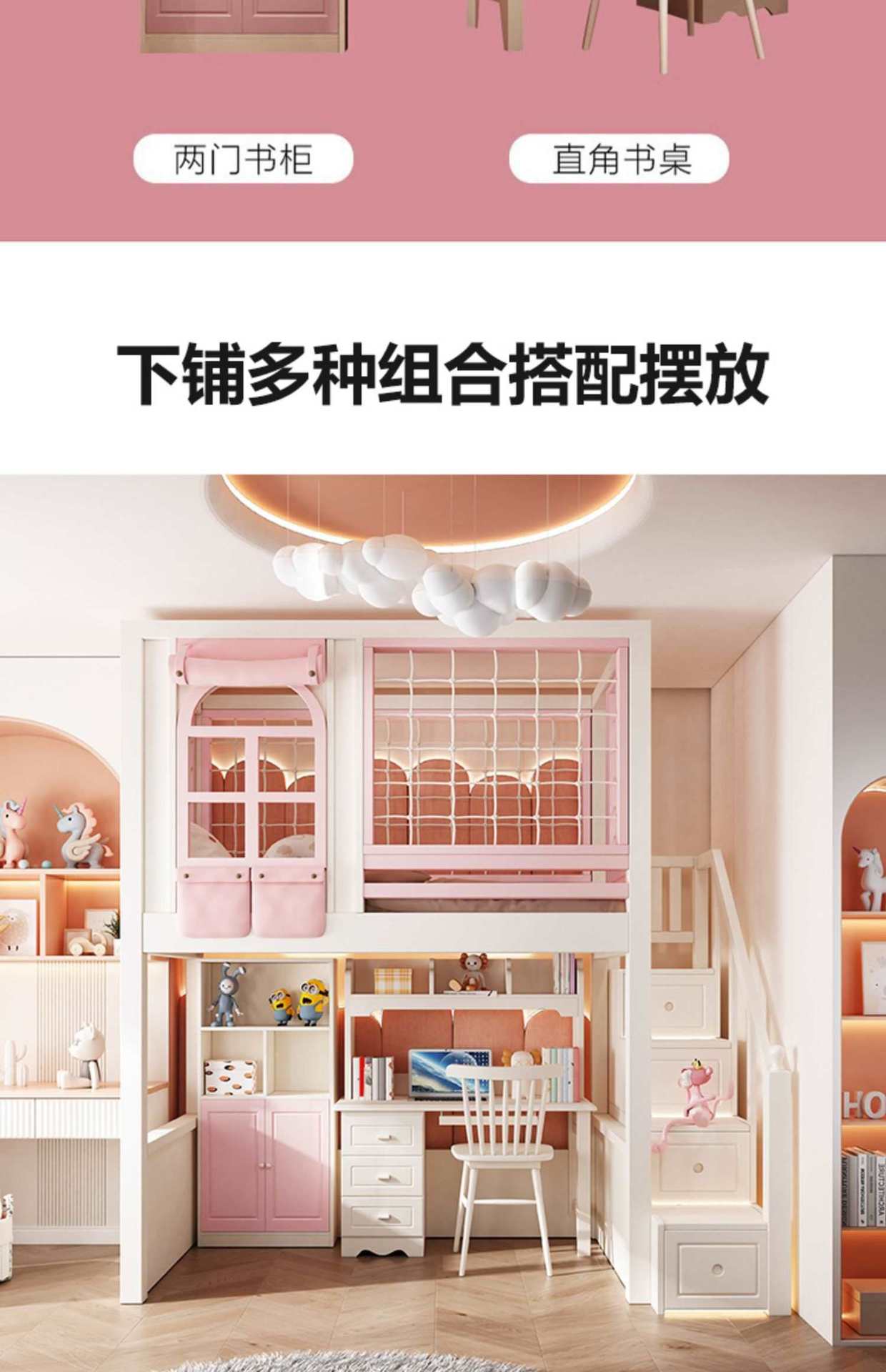 높은 가드 레일 데스크 통합 상단 및 하단 침대 옷장 다기능 조합 침대 상단 및 하단 테이블 공간 절약 엇갈린 슬라이드