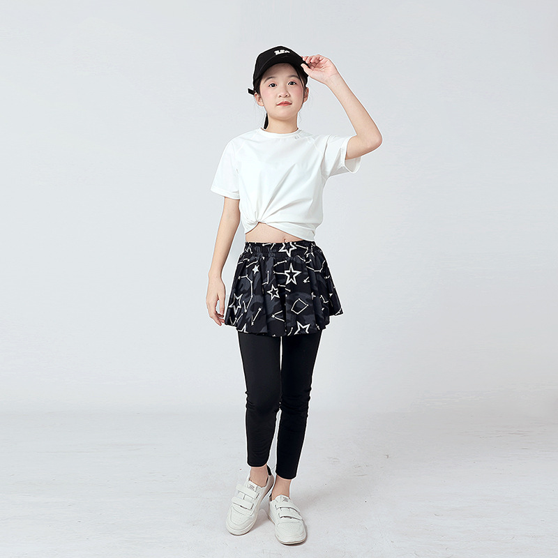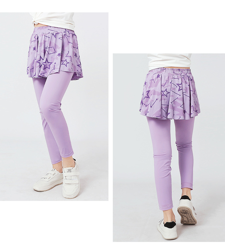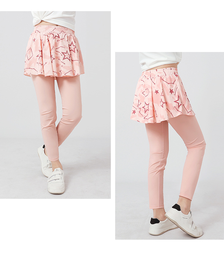 여름 한국 스타일 새로운 여자 테니스 스커트 바지 큰 어린이를위한 빠른 건조 얼음 실크 가짜 투피스 모기 방지 바지 여자 레깅스