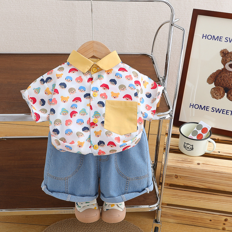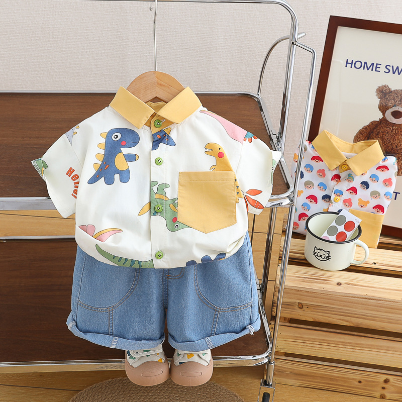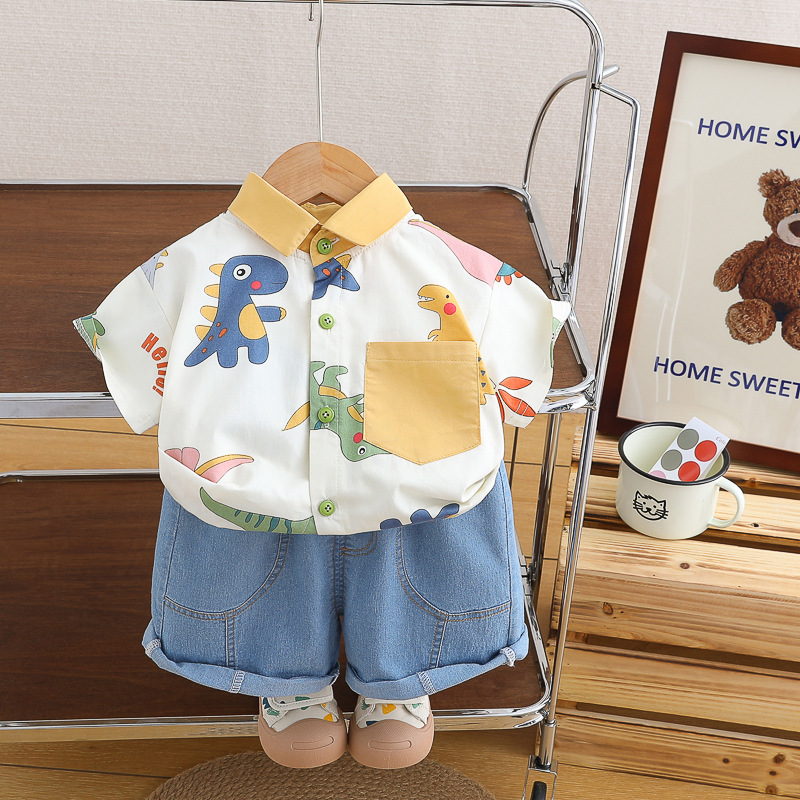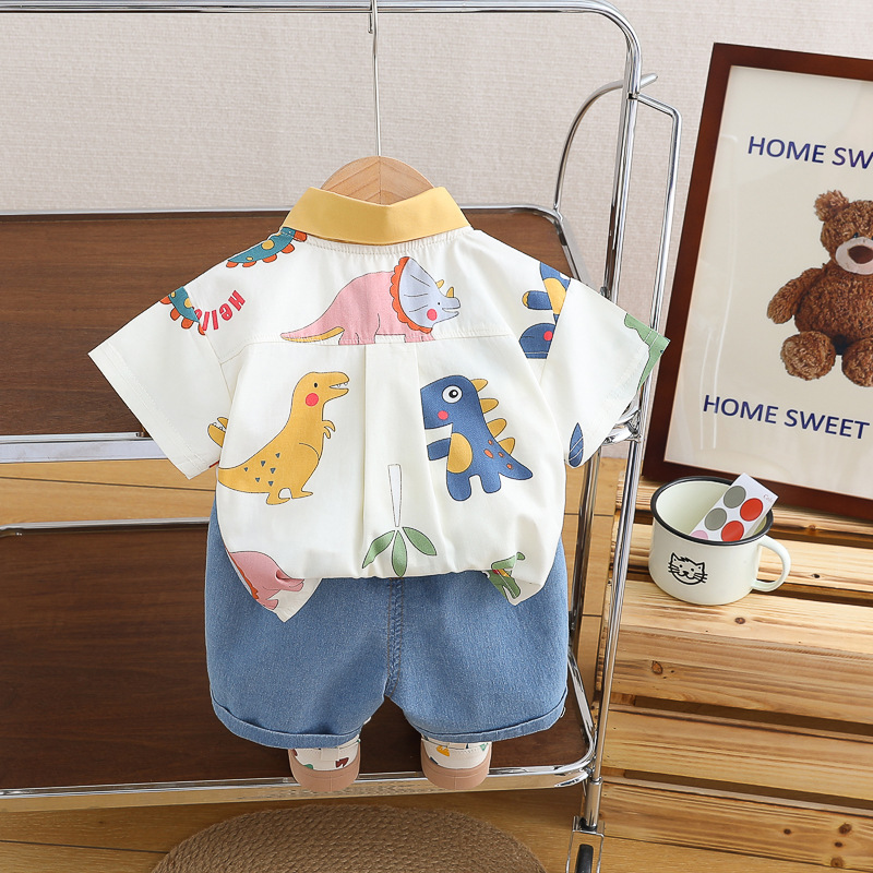 여름 새로운 2 어린이 공룡 반팔 반바지 3 소년 셔츠 세트 여자 캐주얼 신선한 2 피스 세트 패션스토어 가기