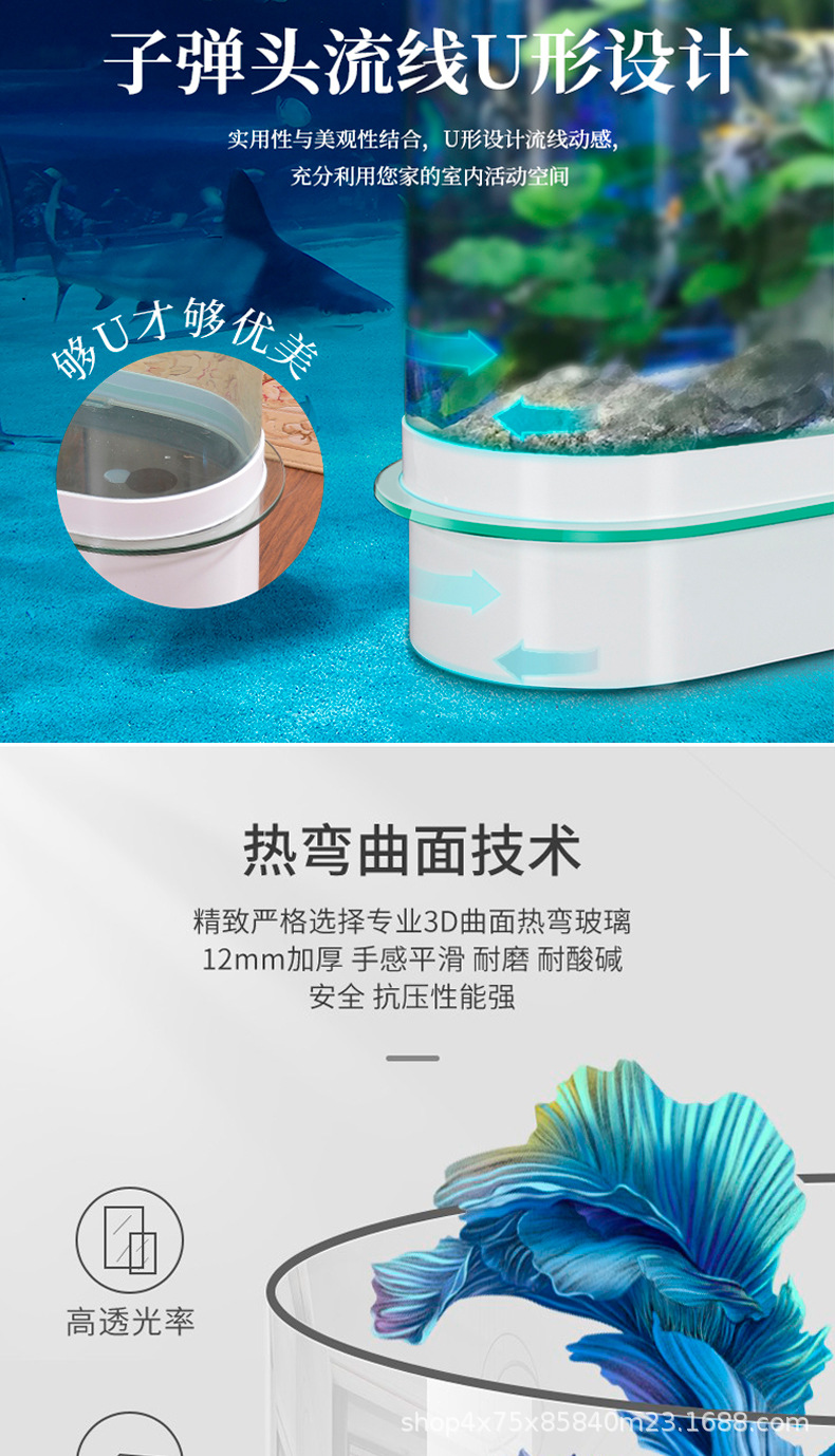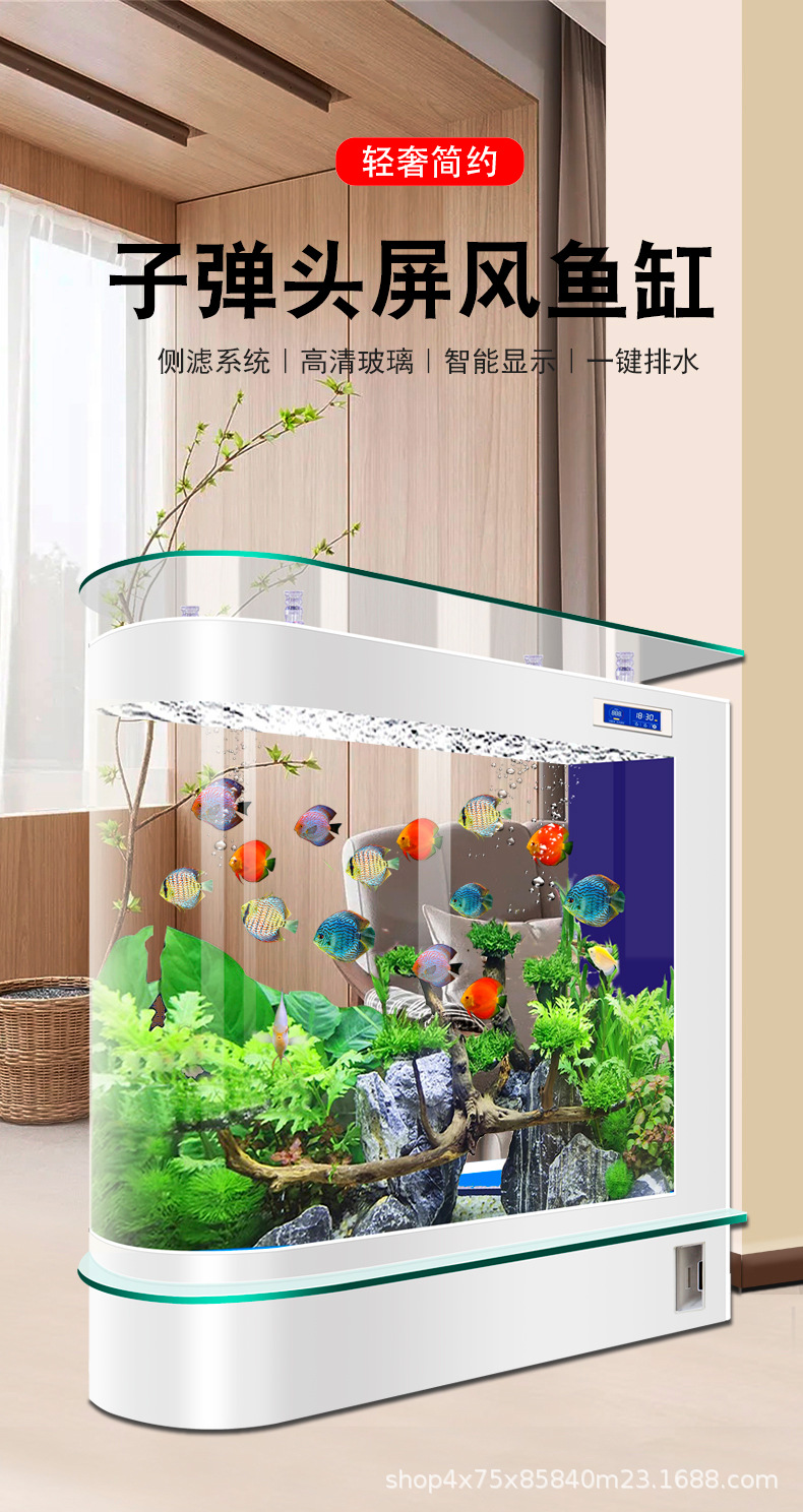 총알 스크린 어항 사이드 필터 수직 어항 거실 가정용 중형 및 대형 금붕어 탱크 물없는 수족관스토어 가기