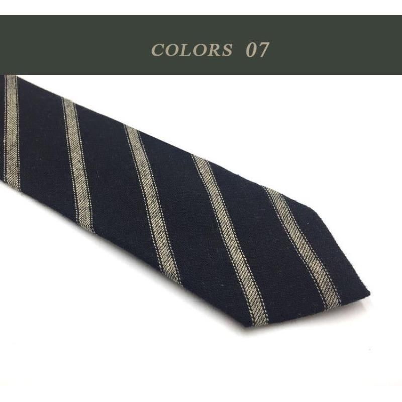 다크 브라운 린넨 코튼 타이 매트 레트로 캐주얼 영국 스타일 7cm 다크 레드 블랙 틈새 스트라이프 액세서리