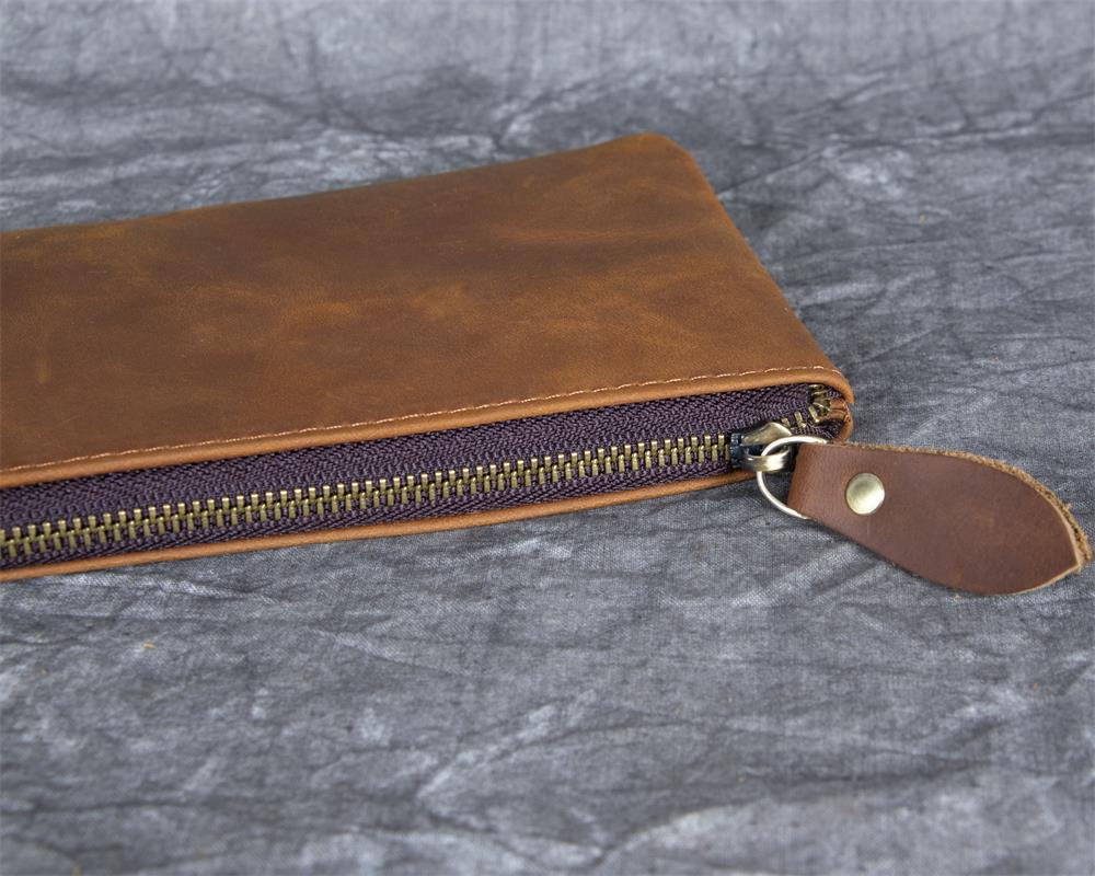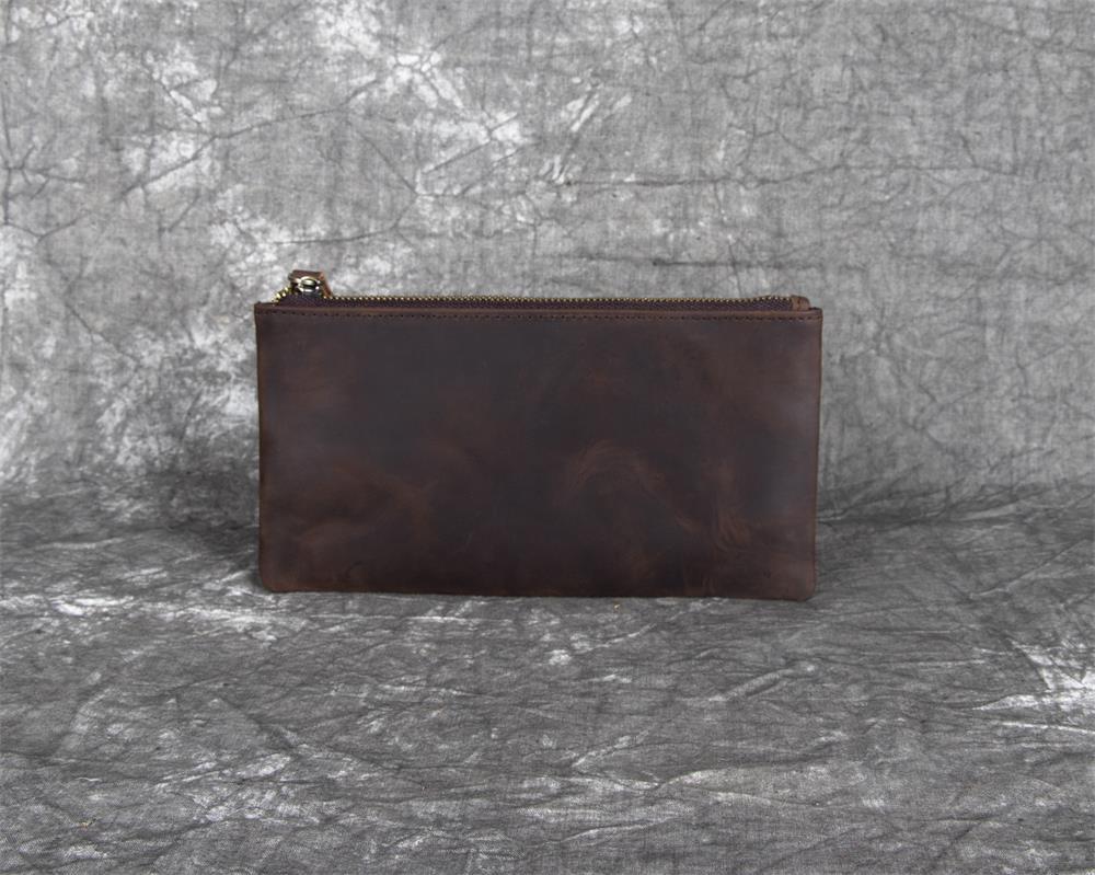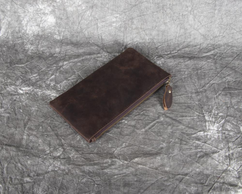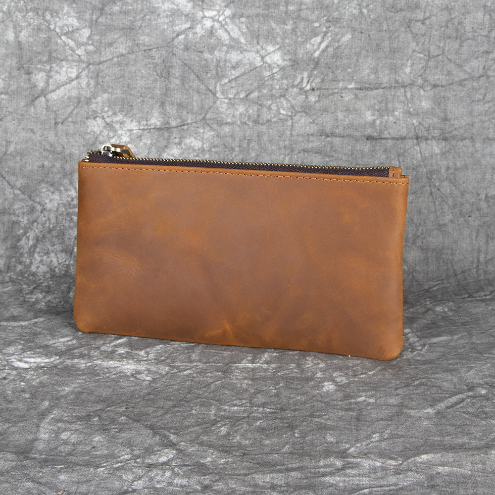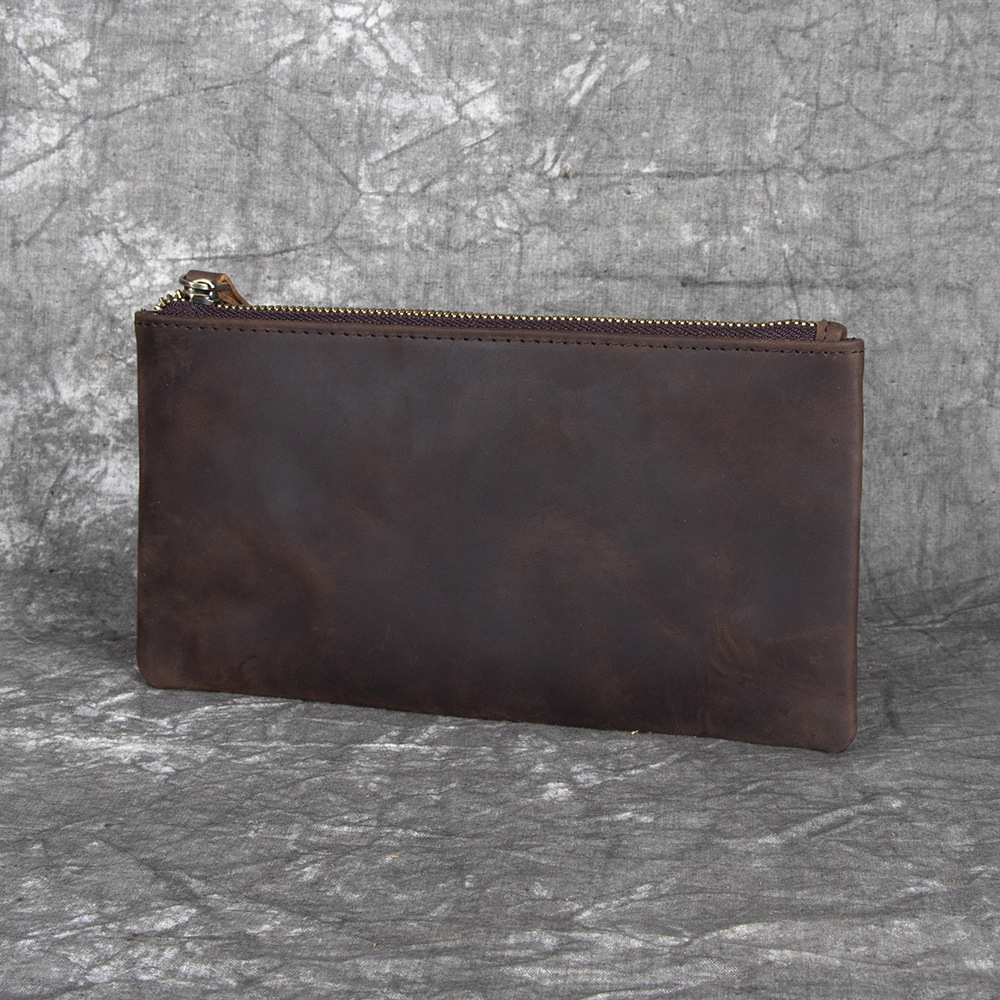 국경 간 독점 남성과 여성의 가죽 지갑 첫 번째 레이어 소 가죽 크레이지 말 공예 복고풍 맞춤형 긴 지퍼 지갑 배치스토어 가기