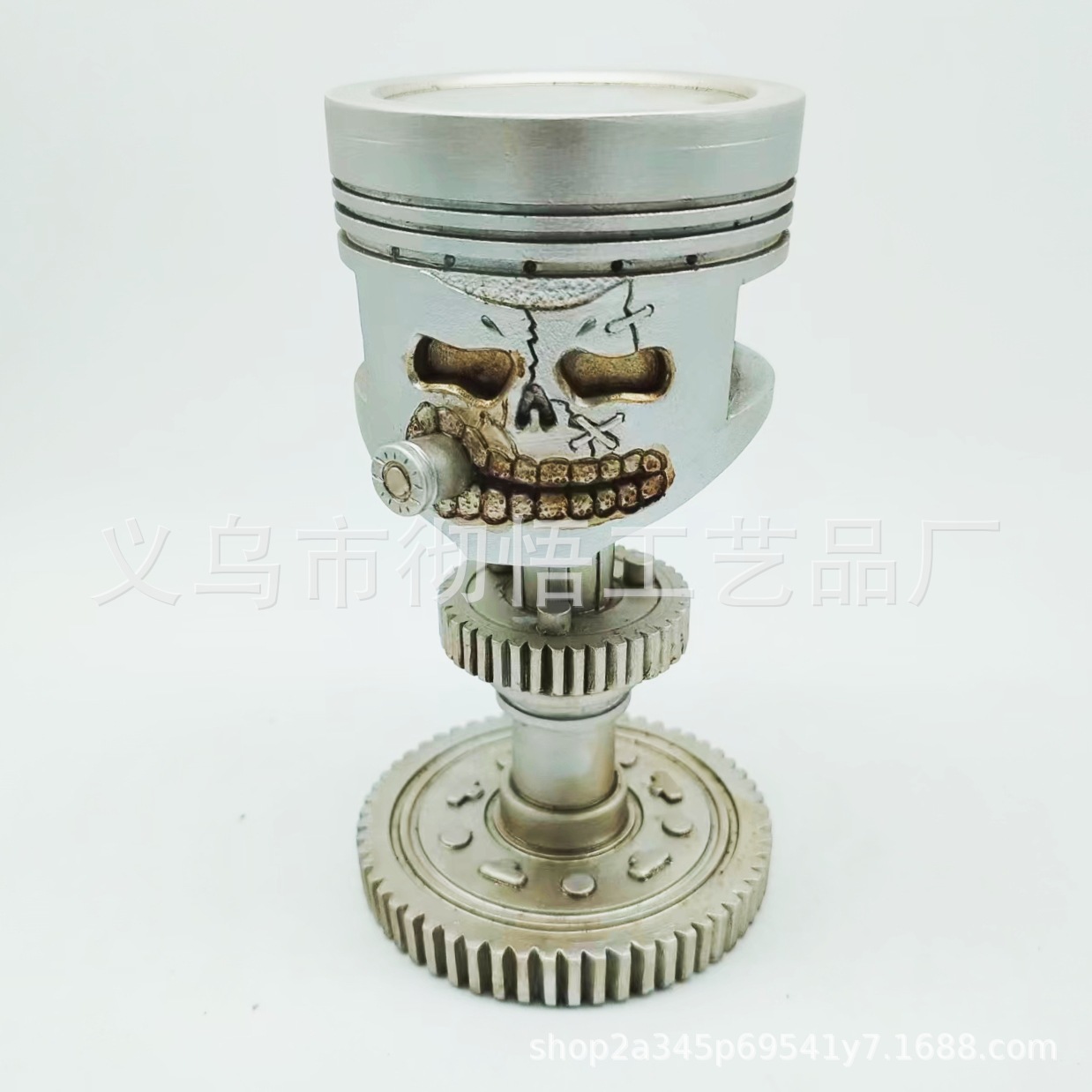 跨境 雕刻活塞骷髅脸雕塑金属艺术雕像Carving Piston Skull Face
