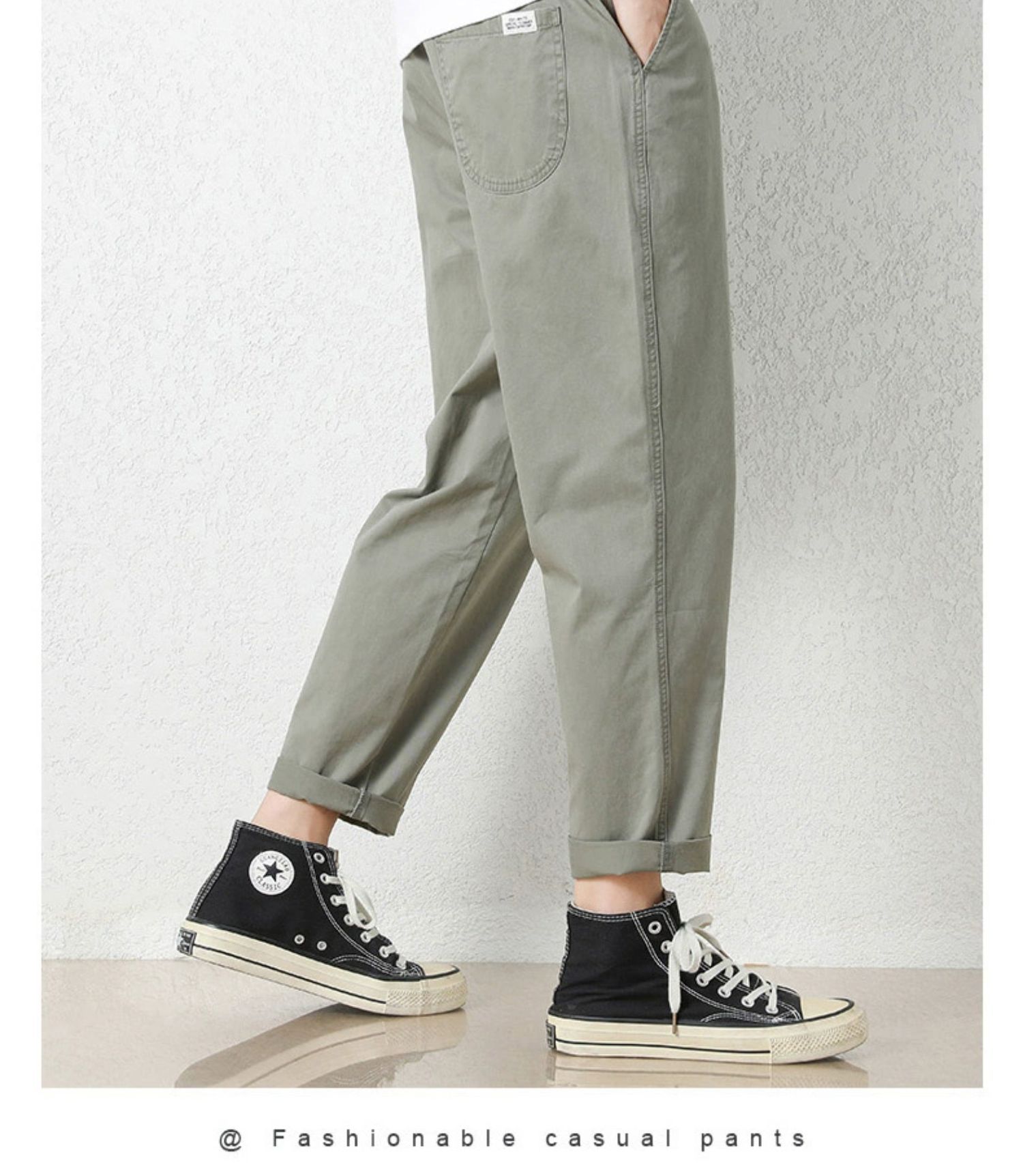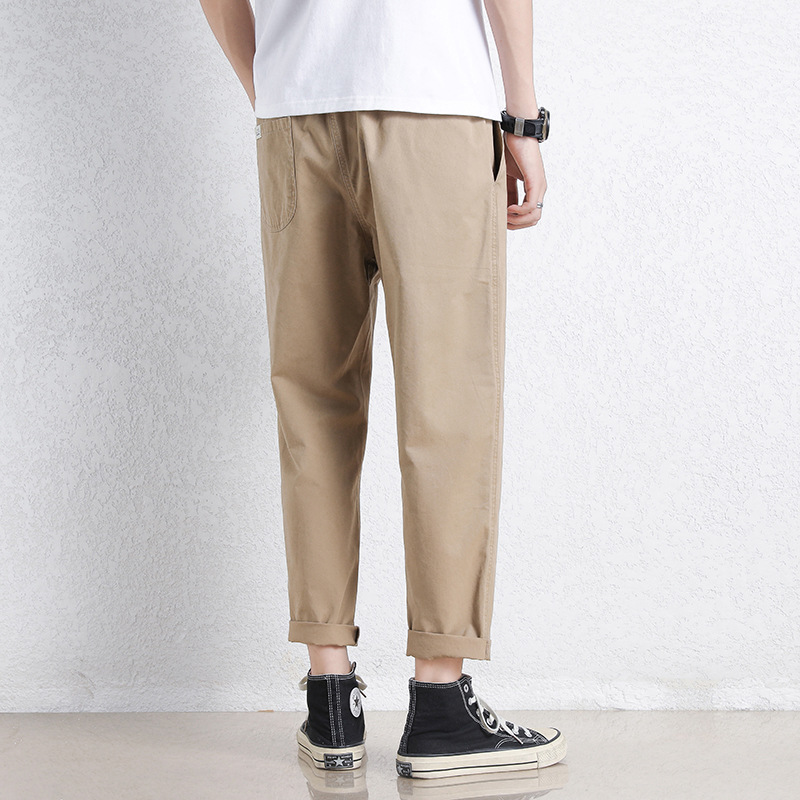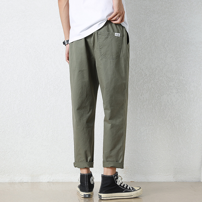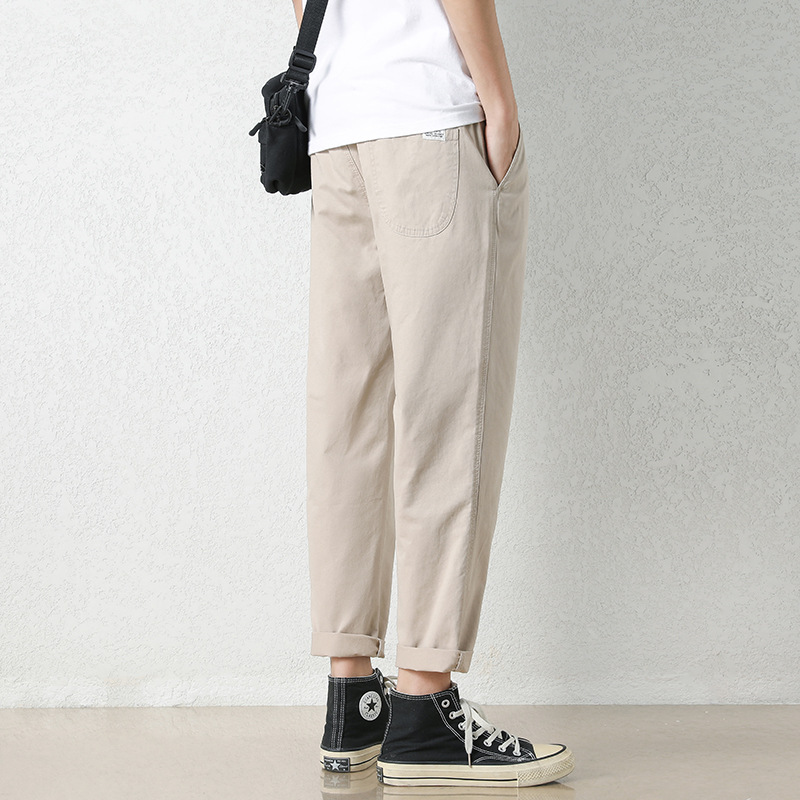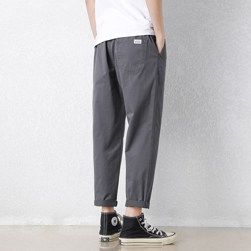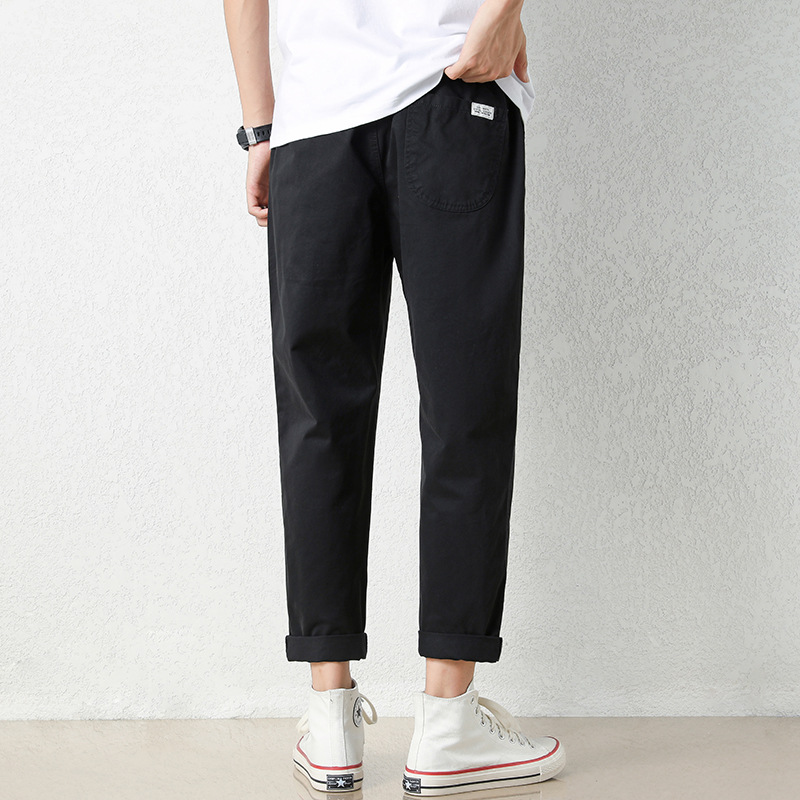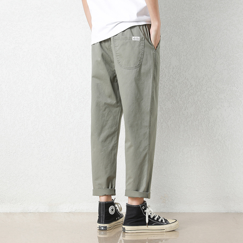 NASA 바지 남성 봄, 가을 새로운 패션 브랜드 ins 루즈 캐주얼 바지 순수 코튼 학생 스트레이트 9부 바지