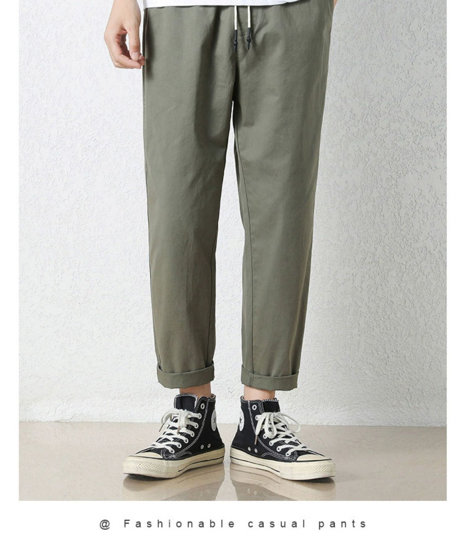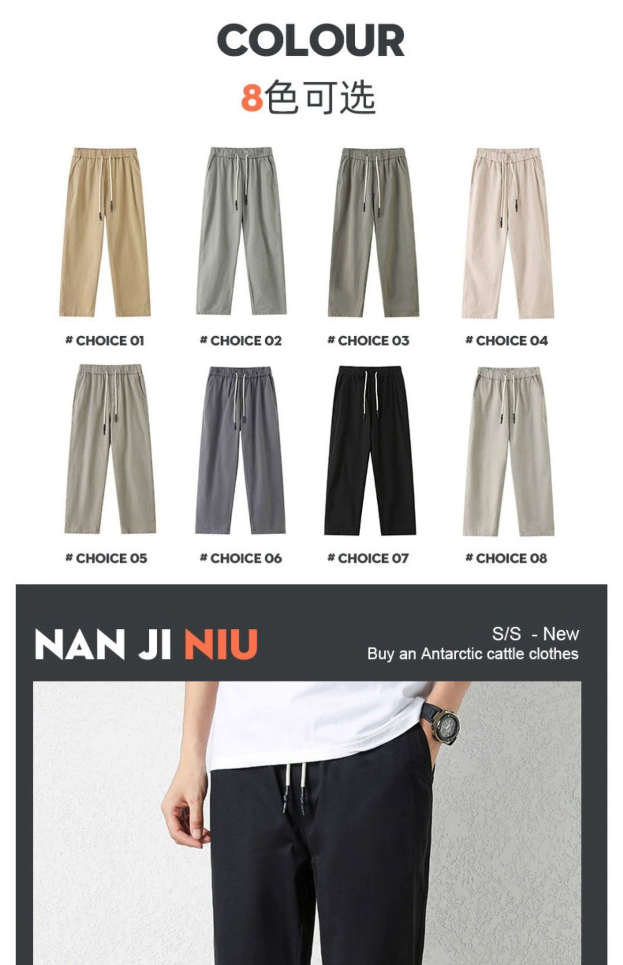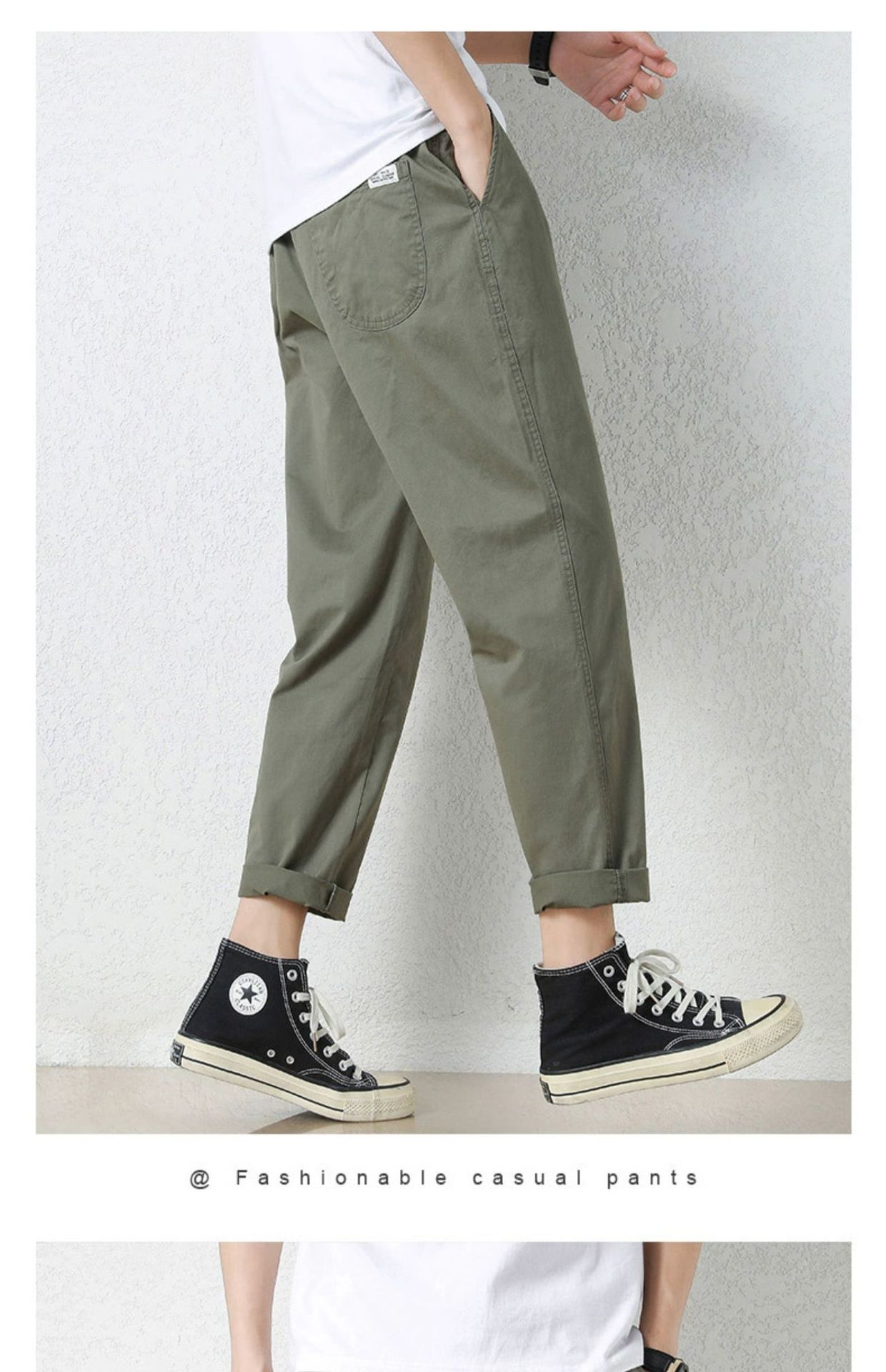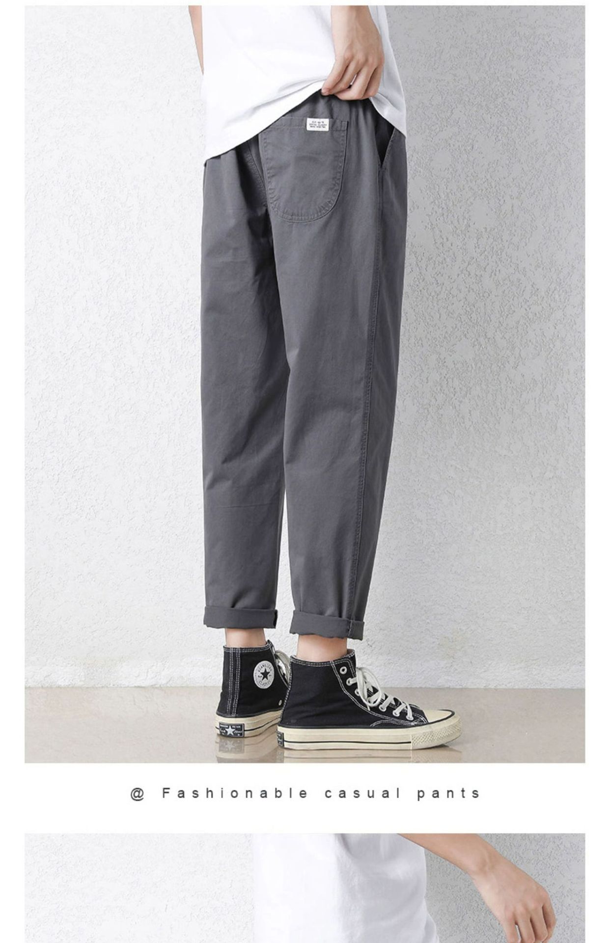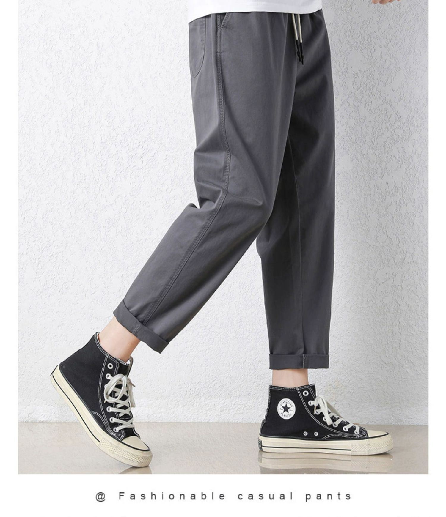 NASA 바지 남성 봄, 가을 새로운 패션 브랜드 ins 루즈 캐주얼 바지 순수 코튼 학생 스트레이트 9부 바지
