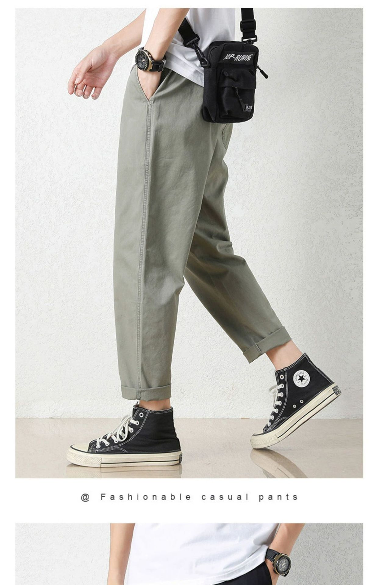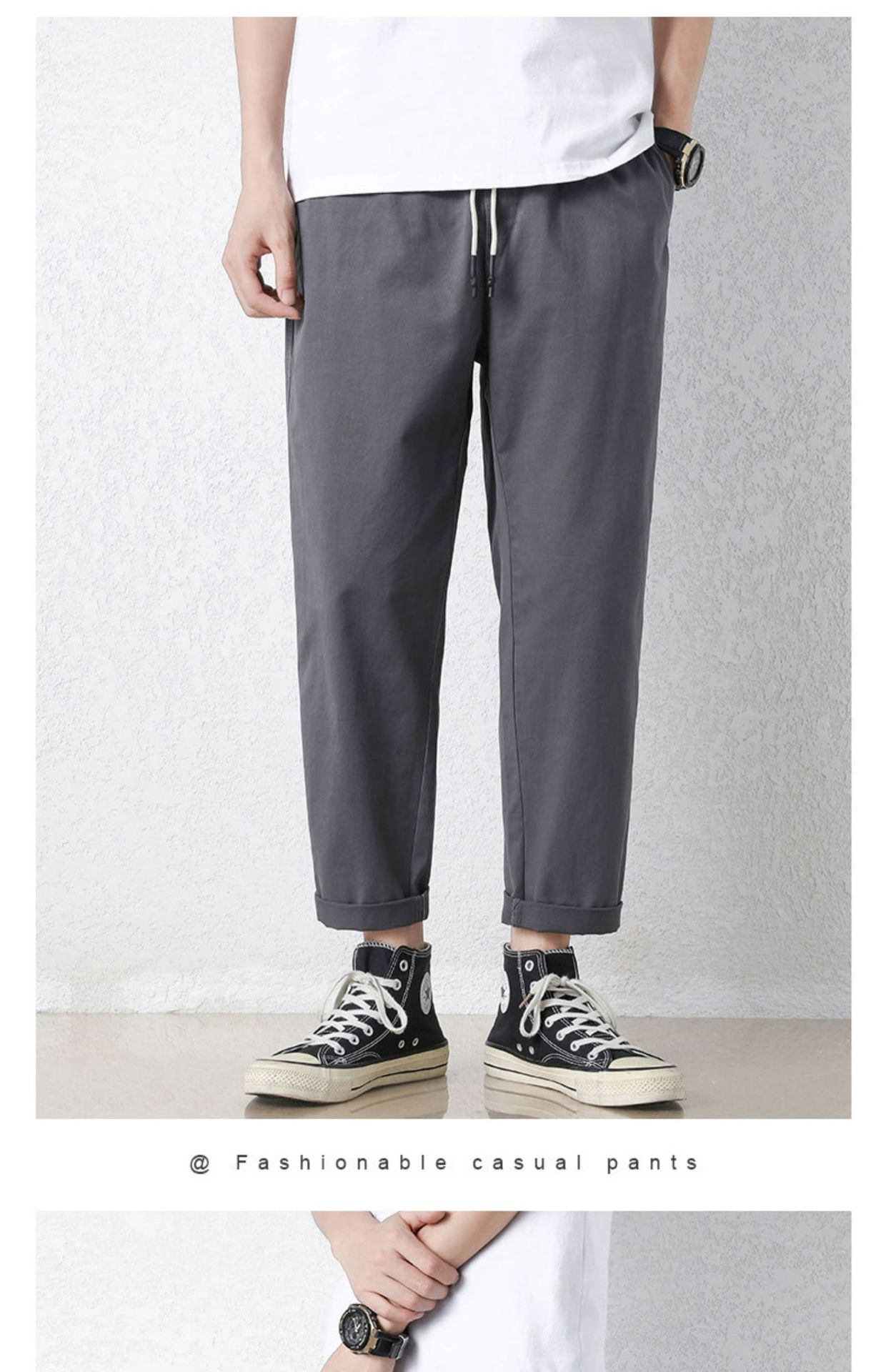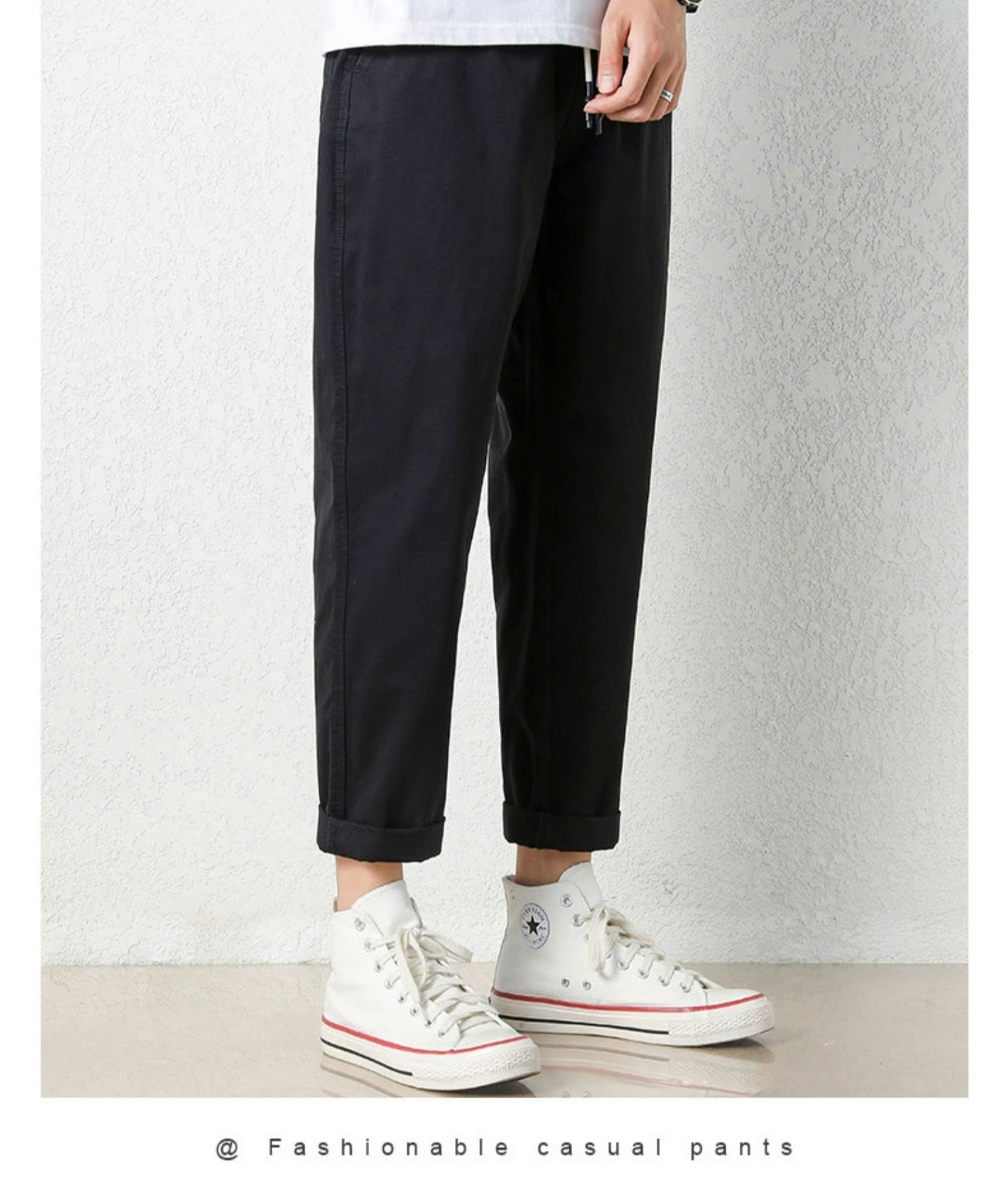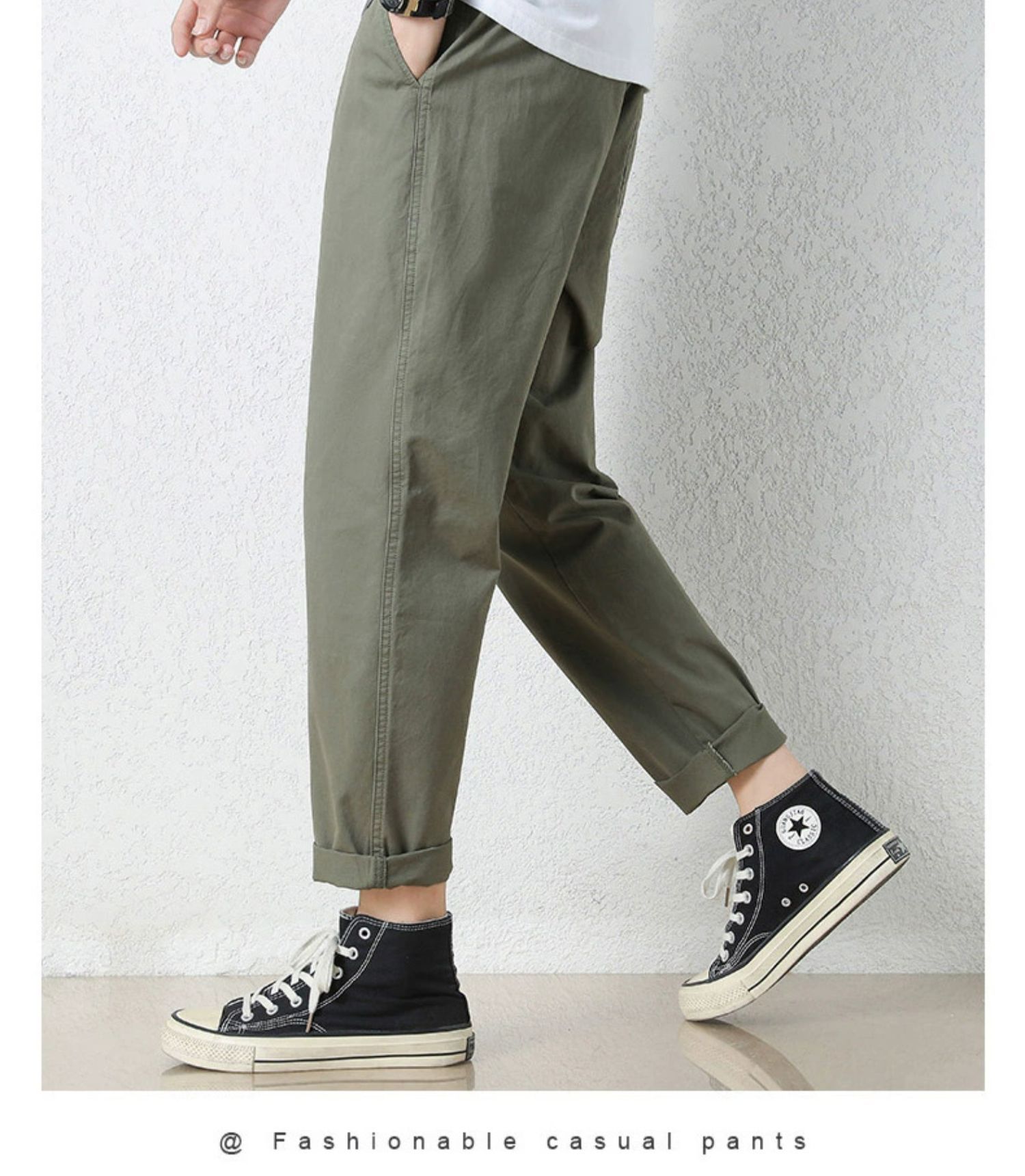 NASA 바지 남성 봄, 가을 새로운 패션 브랜드 ins 루즈 캐주얼 바지 순수 코튼 학생 스트레이트 9부 바지
