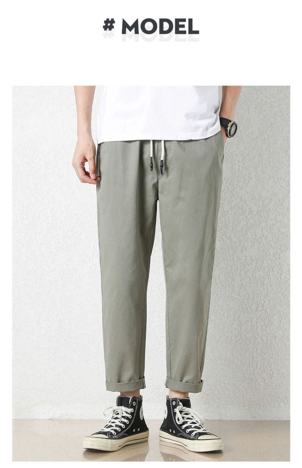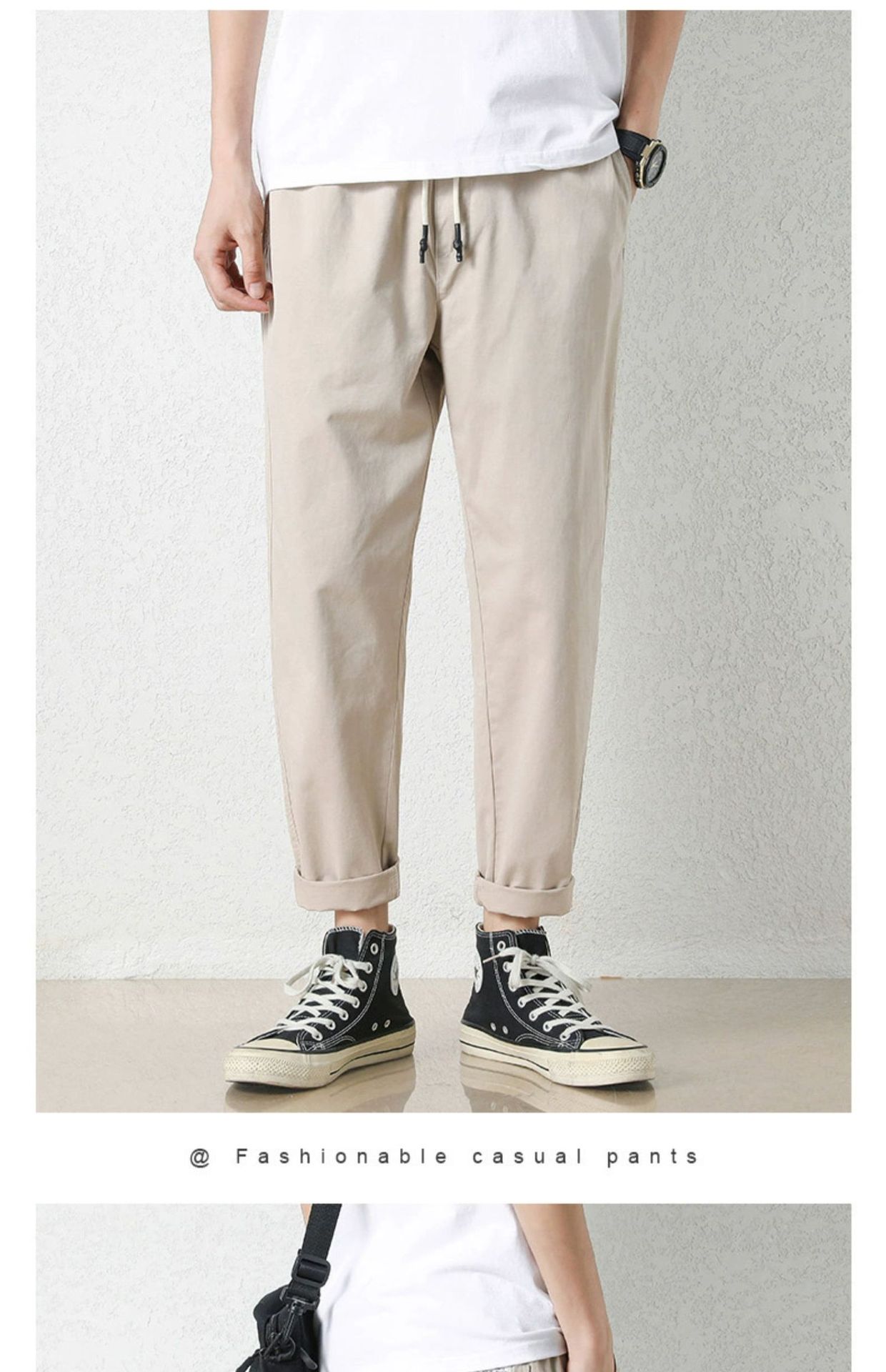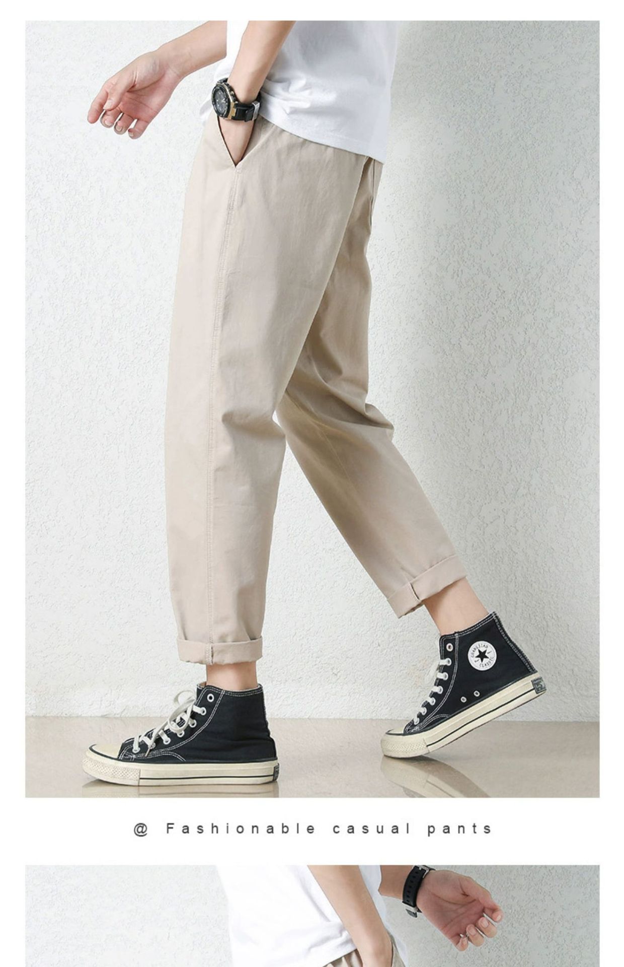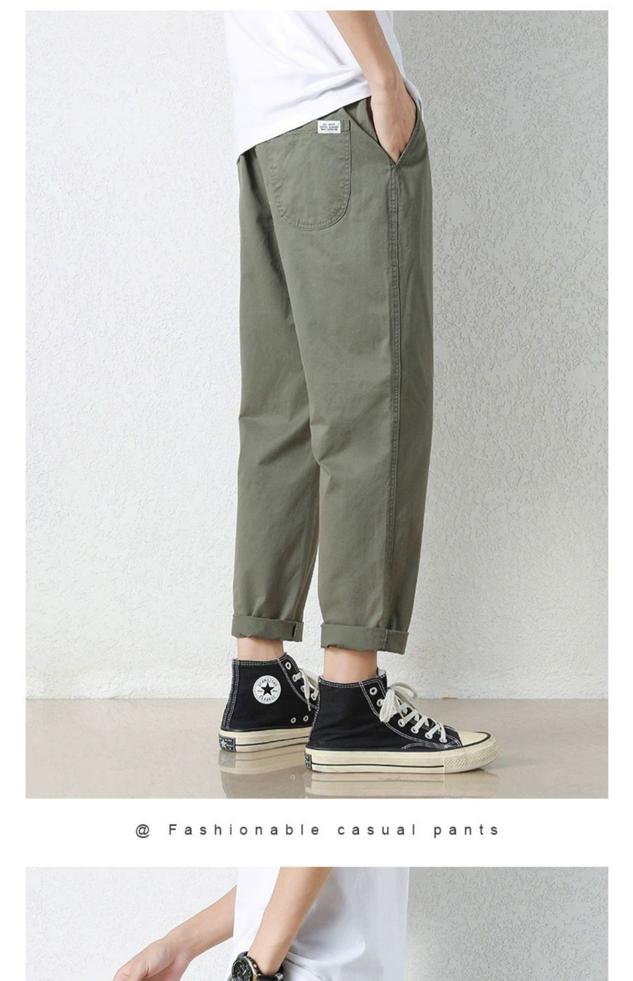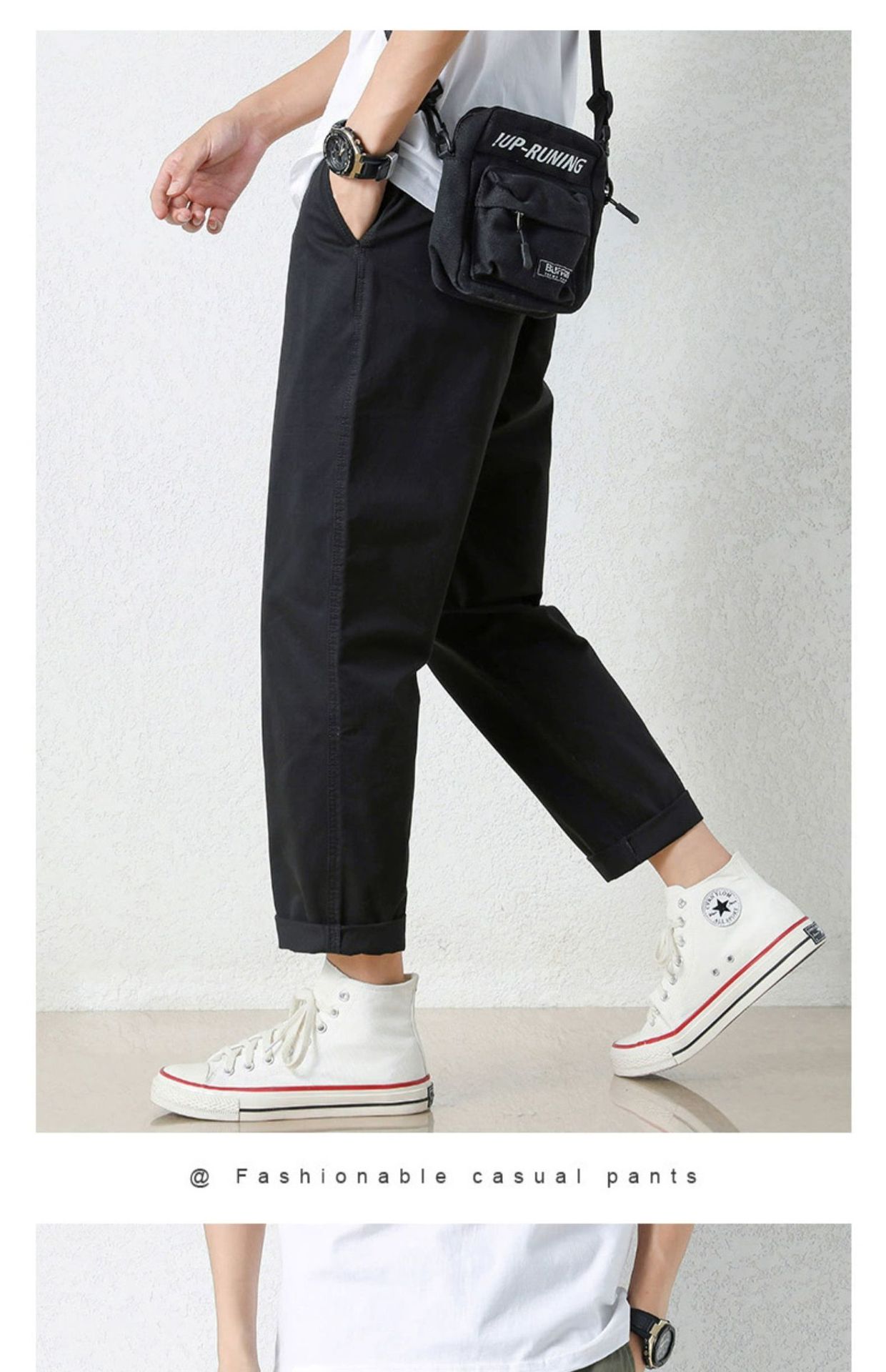 NASA 바지 남성 봄, 가을 새로운 패션 브랜드 ins 루즈 캐주얼 바지 순수 코튼 학생 스트레이트 9부 바지
