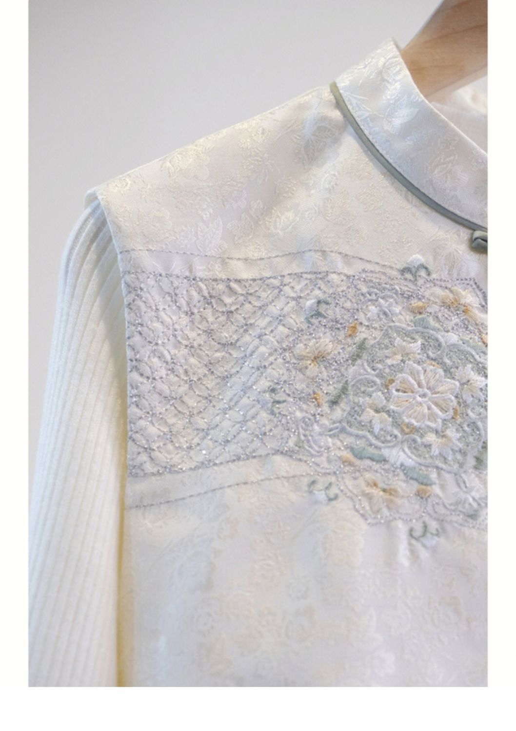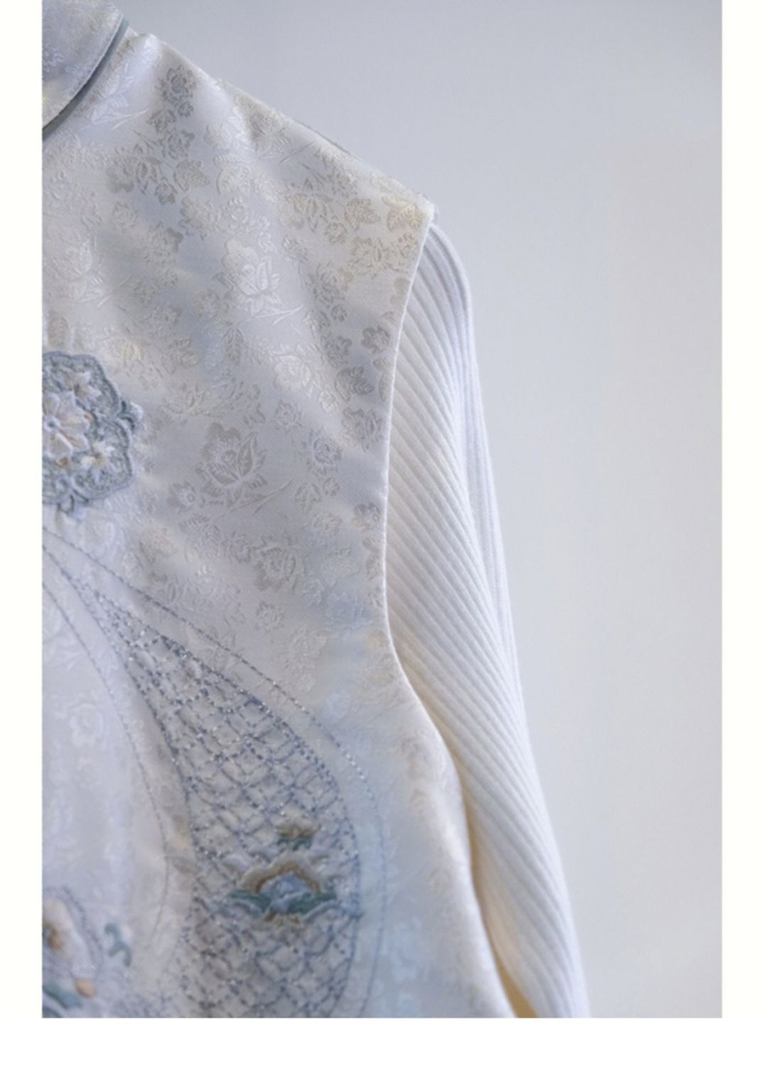 새로운 중국 스타일 여성 의류 중국 스타일 자수 조끼 탕 세트 코트 2023 디자인 감각 조끼 차 코트
