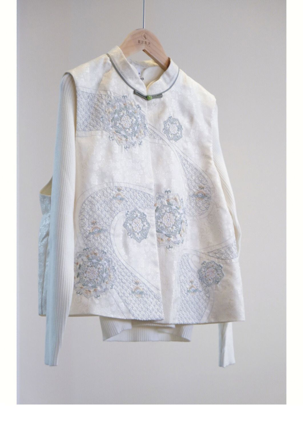 새로운 중국 스타일 여성 의류 중국 스타일 자수 조끼 탕 세트 코트 2023 디자인 감각 조끼 차 코트스토어 가기