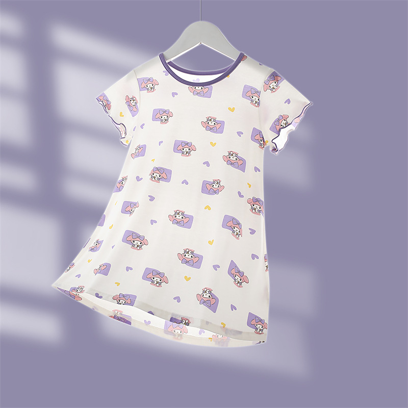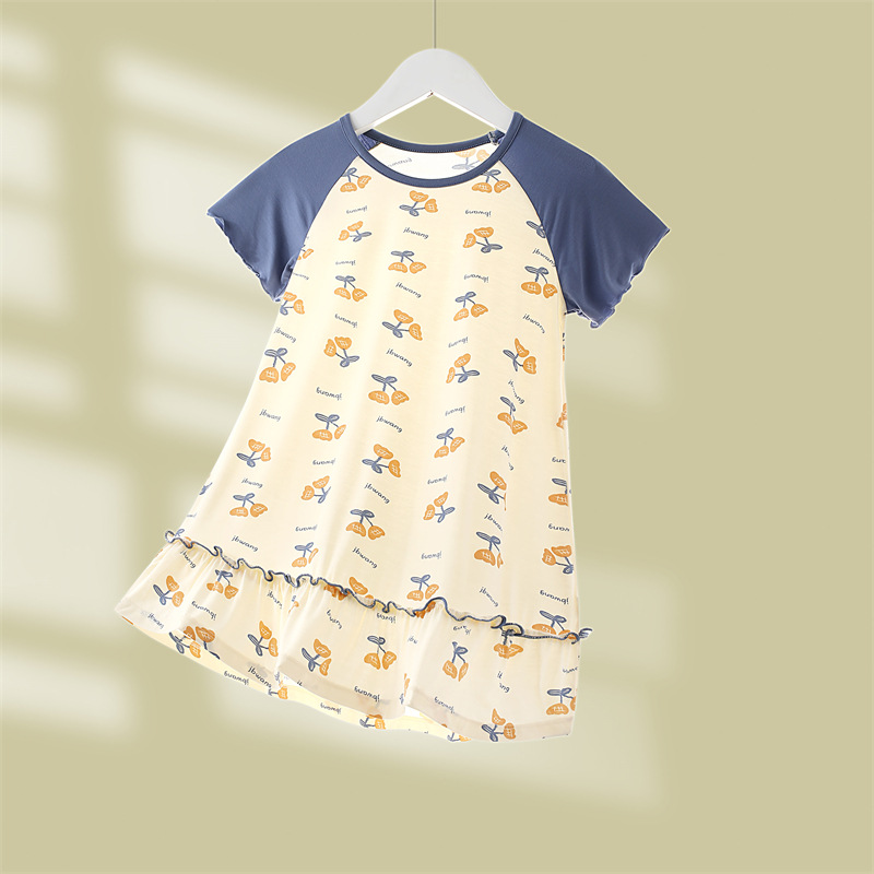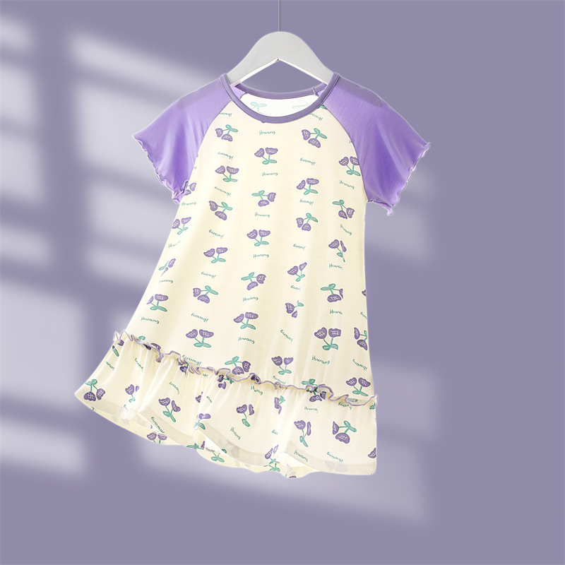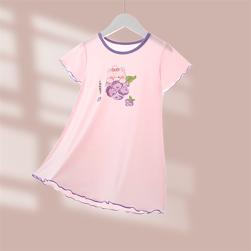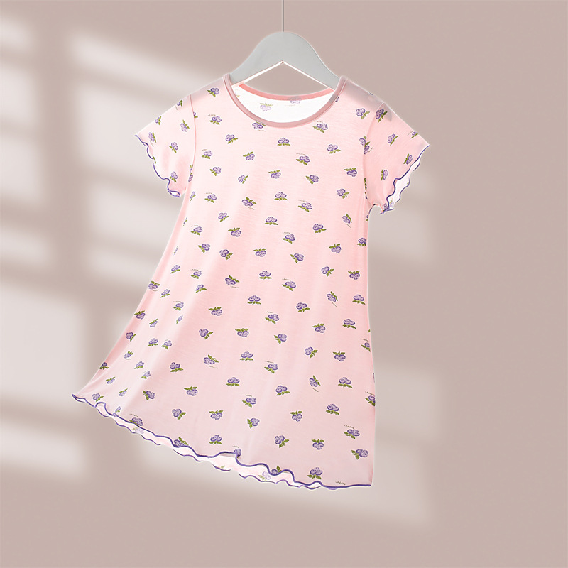 소녀의 잠옷 여름 모달 긴 아이들의 집 옷 아이스 실크 공주 아기의 에어컨 옷 어린이를위한 얇은 잠옷스토어 가기