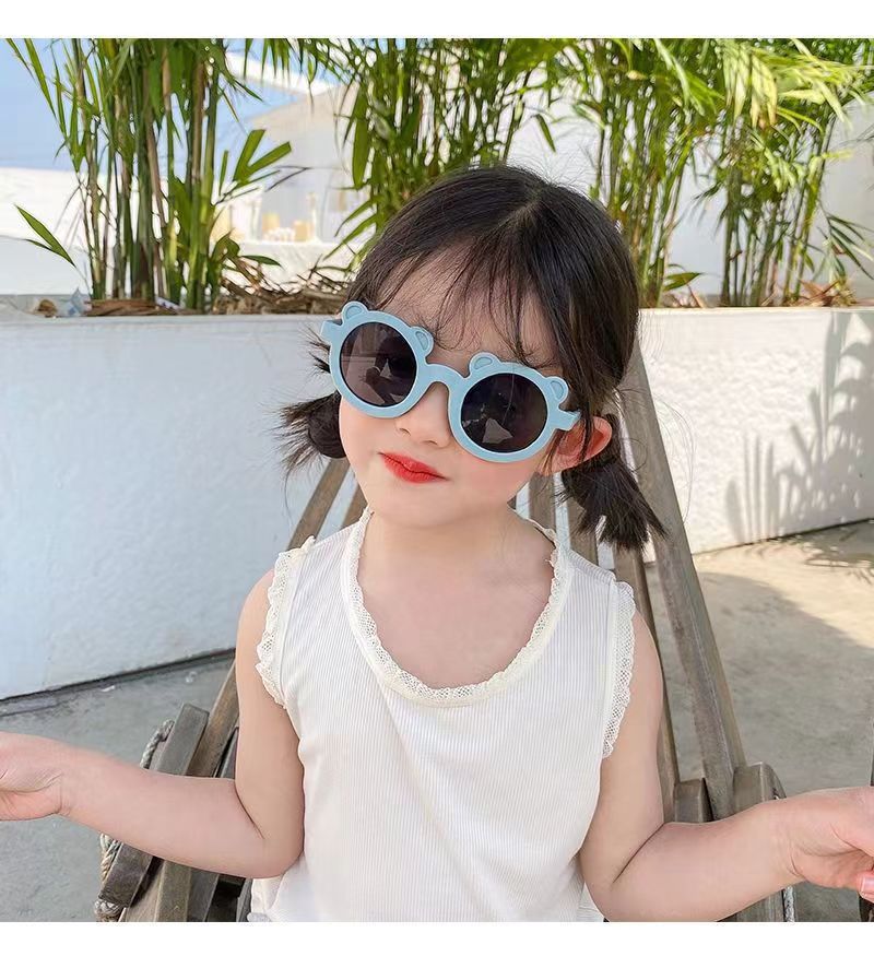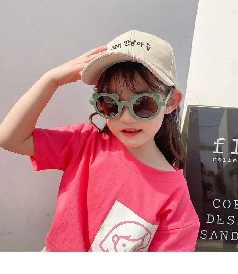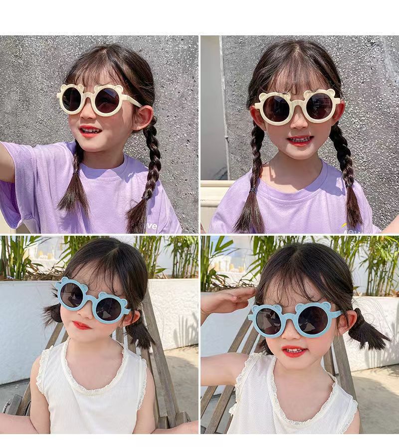 TEMU 새로운 어린이 선글라스 데이지 귀여운 곰 선글라스 라운드 프레임 꽃잎 안경 유행 패션