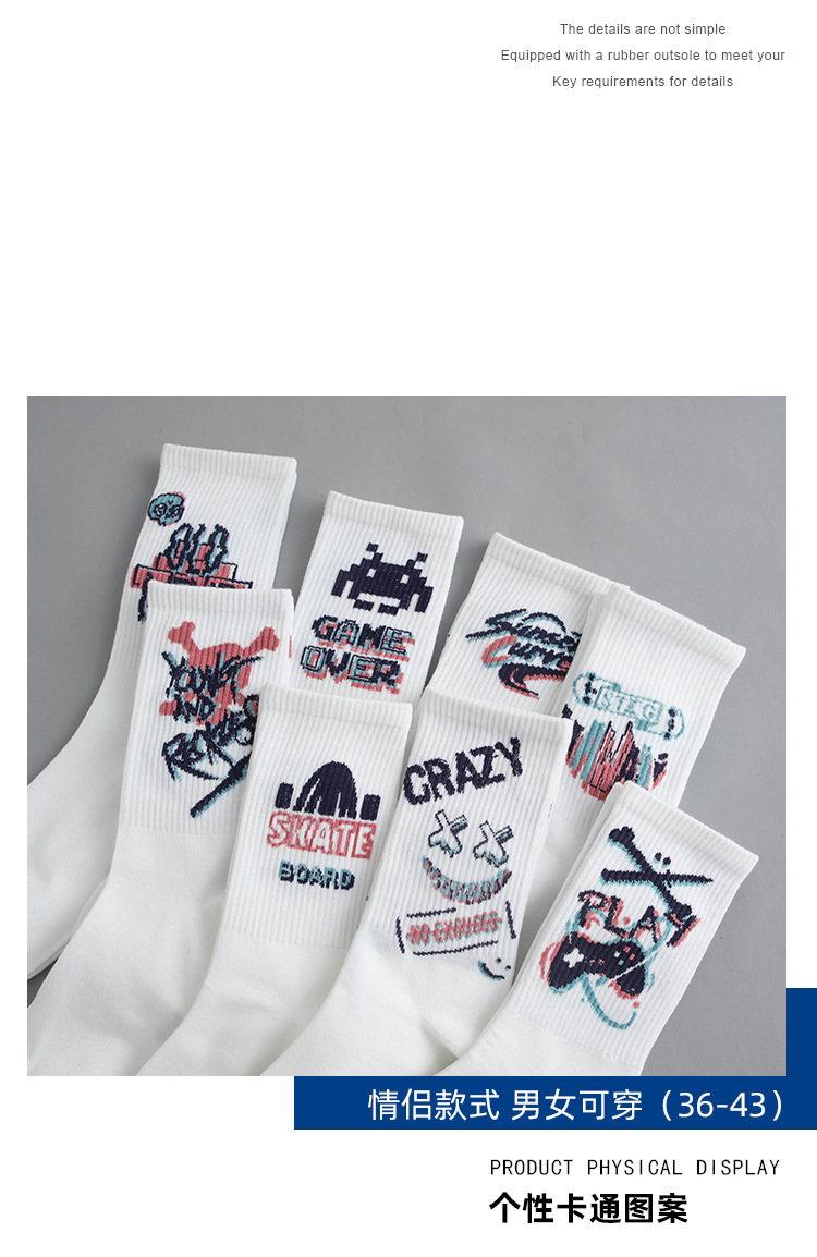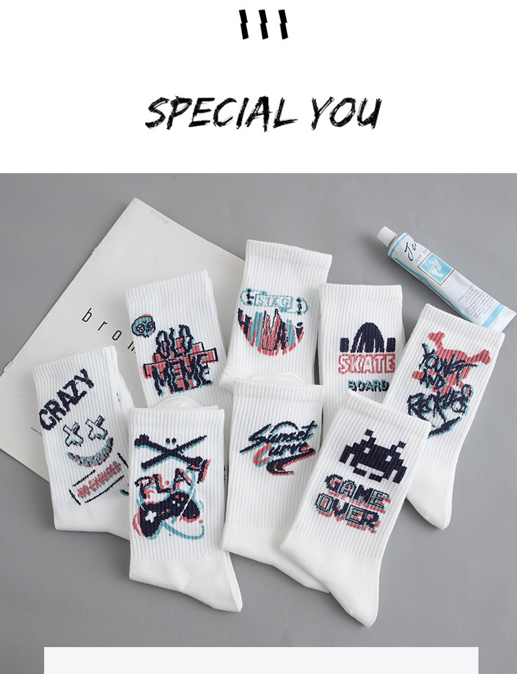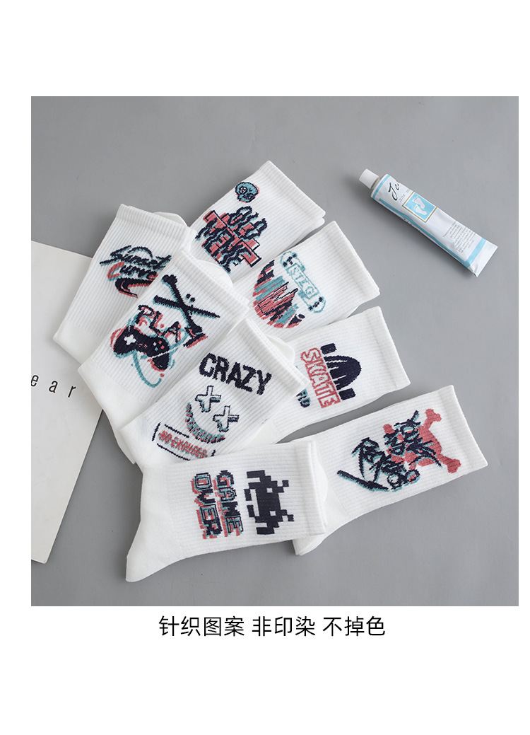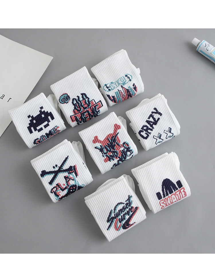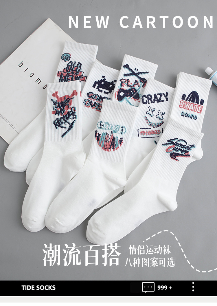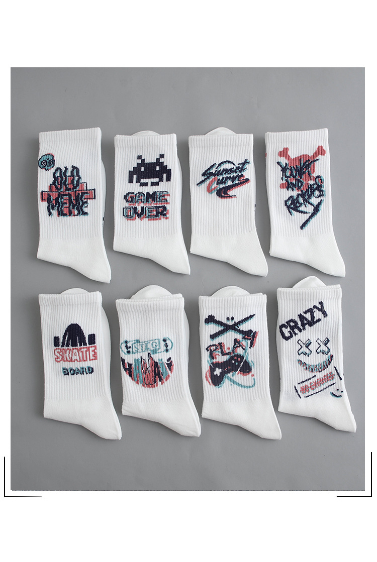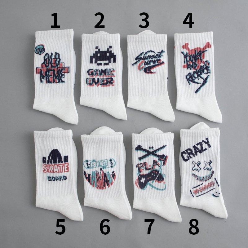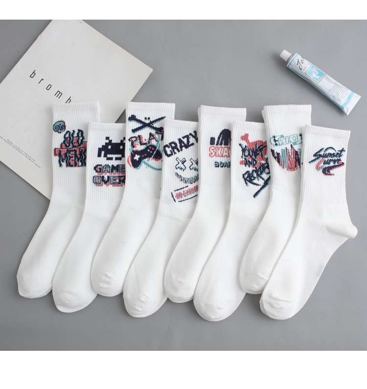 낙서 양말 남자 Ins 트렌디 한 올 매치 하이 페이스 값 미드 배럴 가을 학생 스포츠 농구 양말 장거리 유행 남자 스타킹
