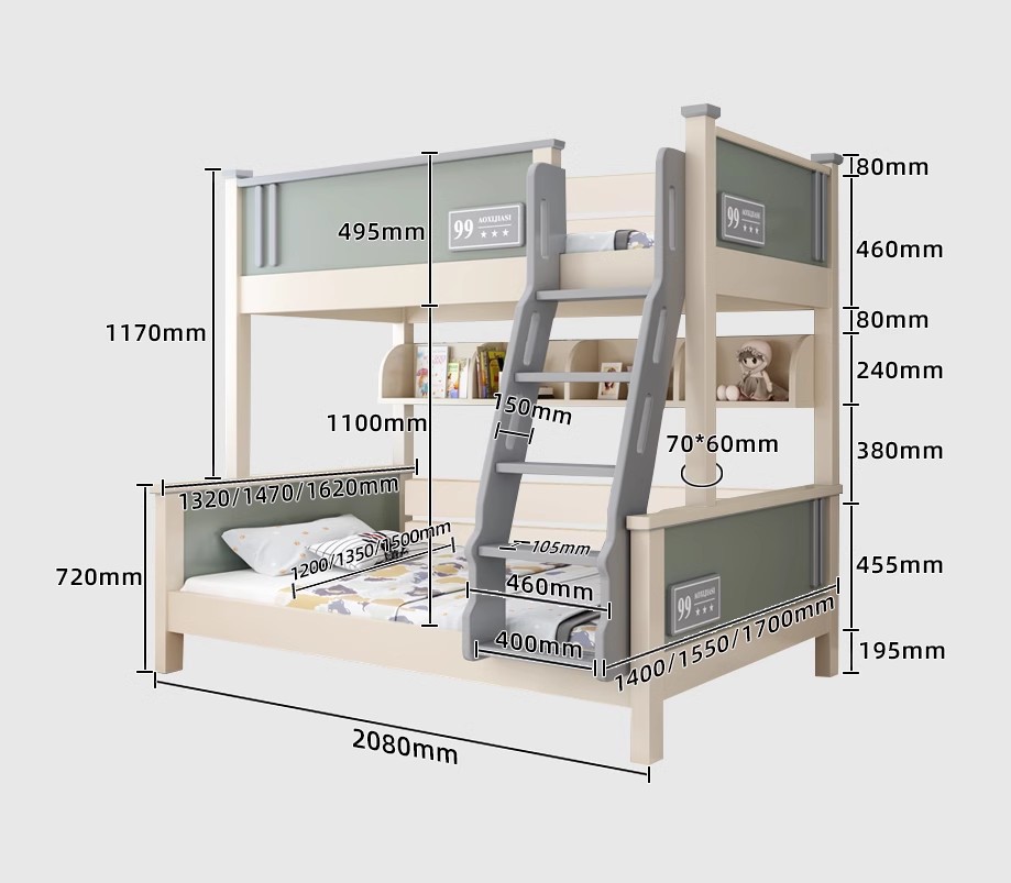 • G2 사다리 침대 + 책꽂이 + 침대 보드 + 매트리스