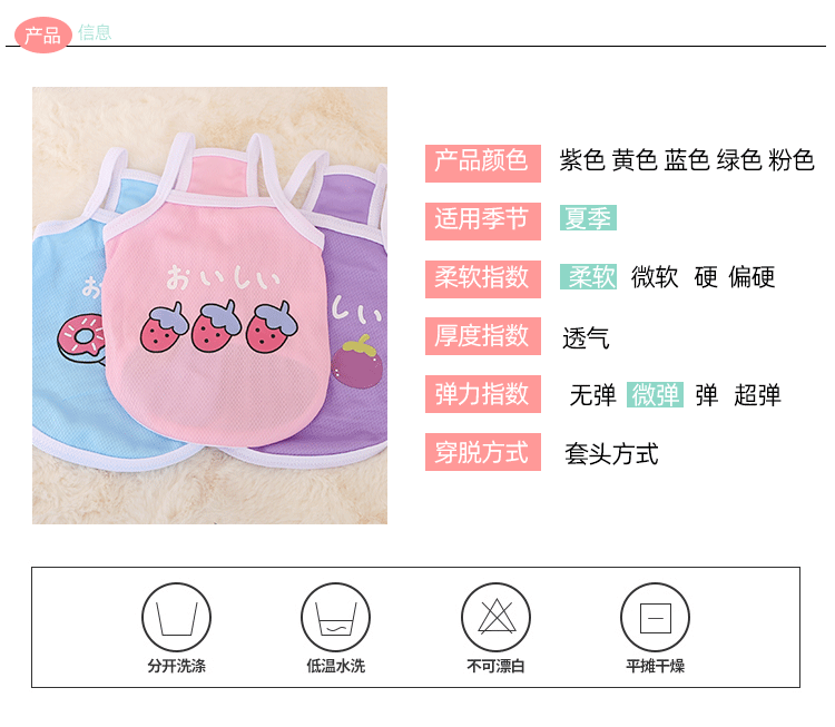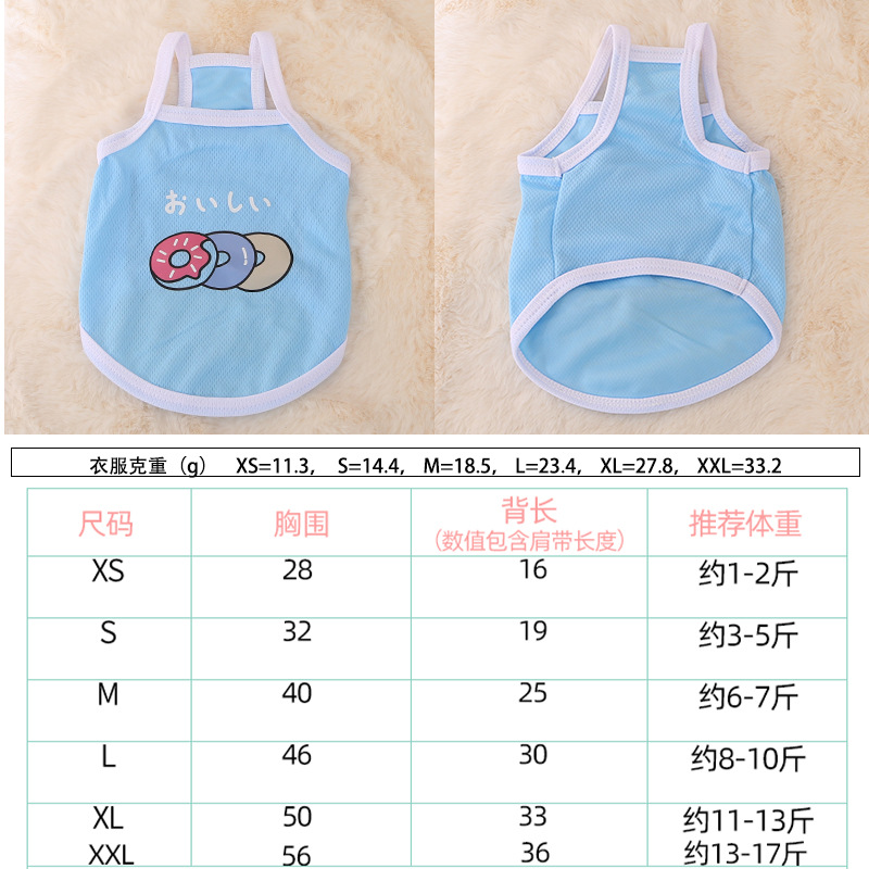 여름 새로운 강아지 캐미솔 테디 베어 애완 동물 옷 얇은 통기성 프랑스 버킷 고양이 조끼