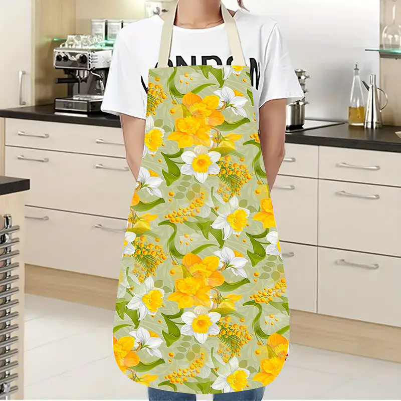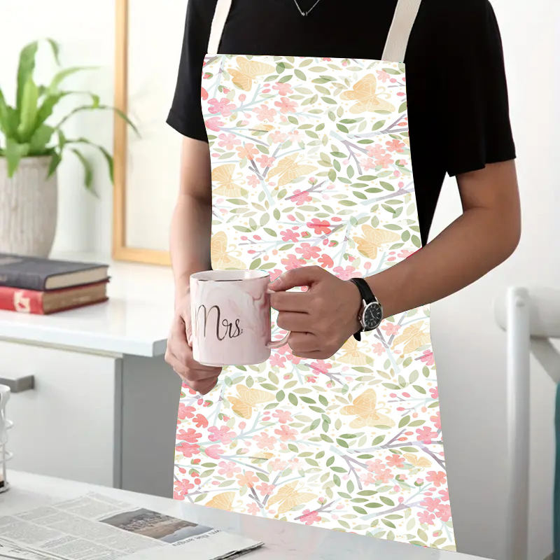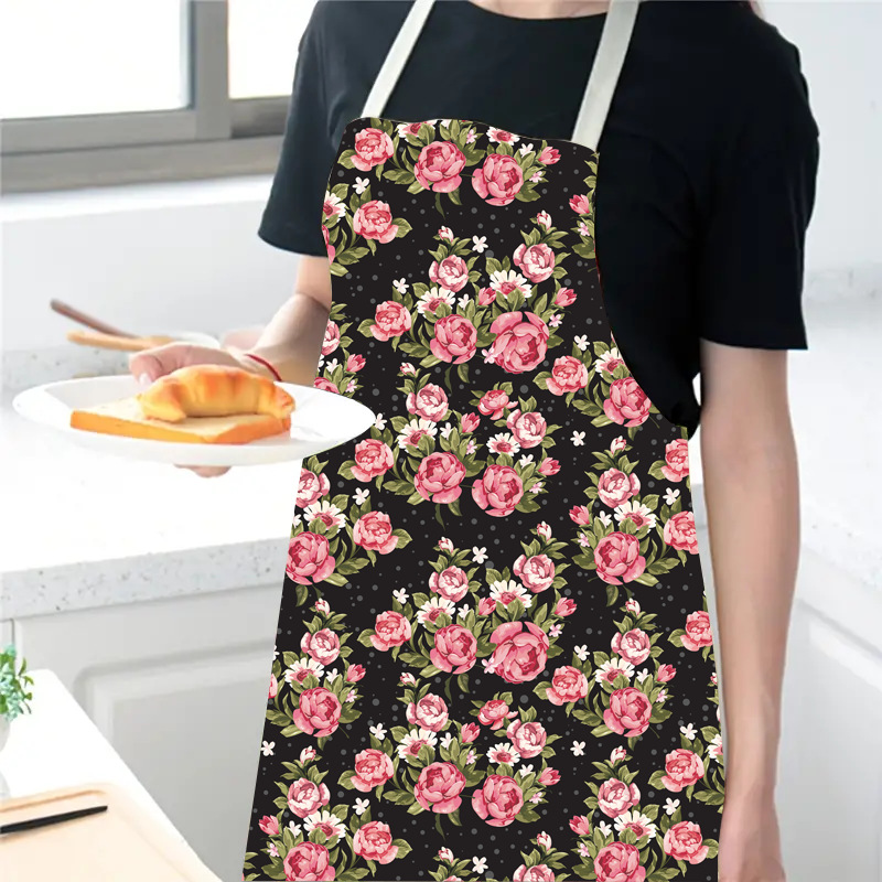신선한 작은 꽃 인쇄 폴리 에스테르 방수 앞치마 가정 앞치마 요리 집 앞치마 커피 우유 차 가게 작업복