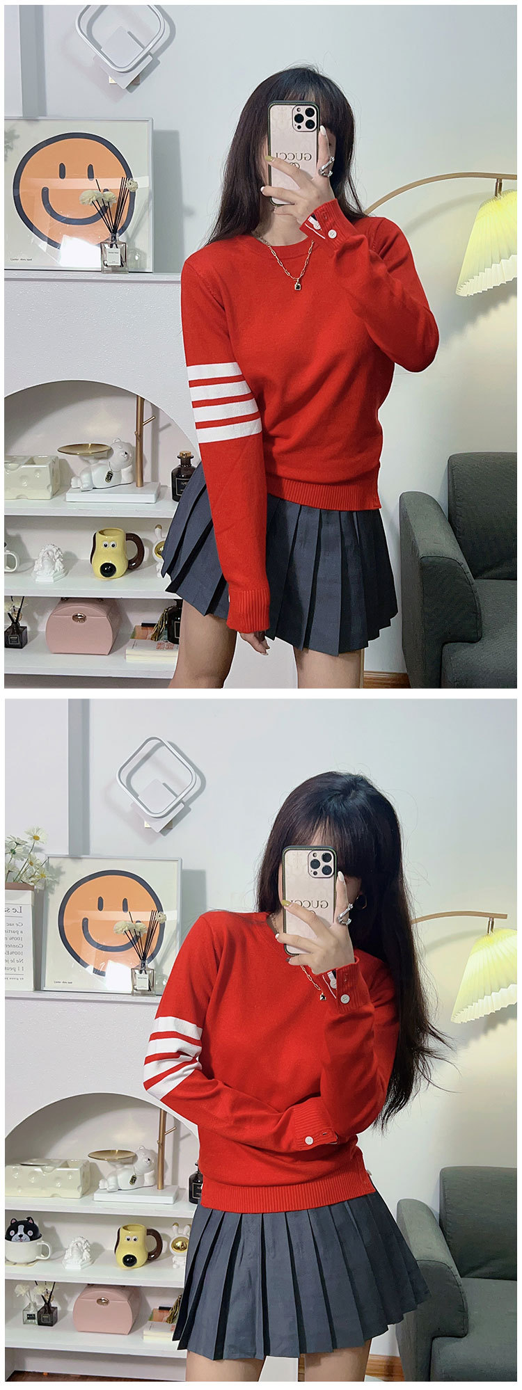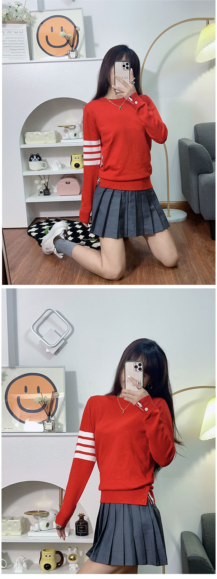 tb 커플 스웨터 여성용 2025 신상 가을 겨울 고급스러운 봄옷 빨간색 설날 니트 스웨터 뱀띠스토어 가기