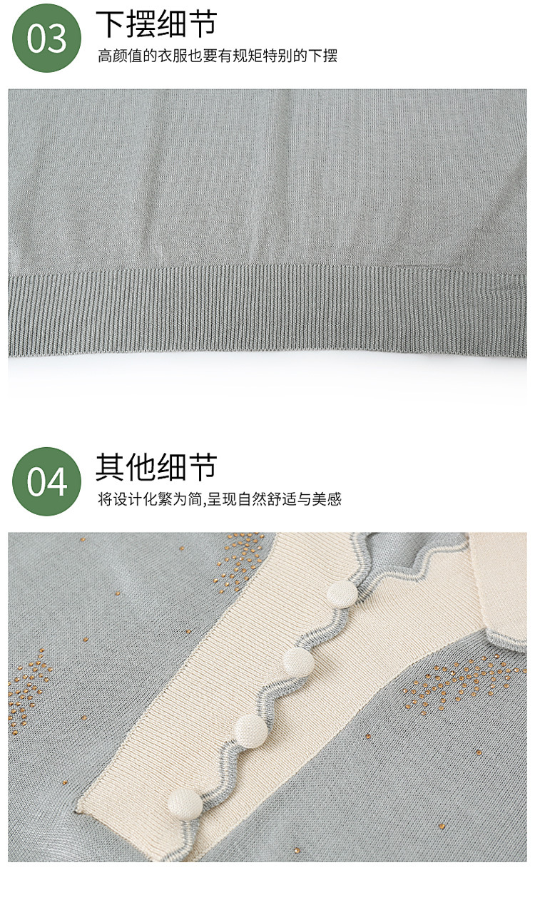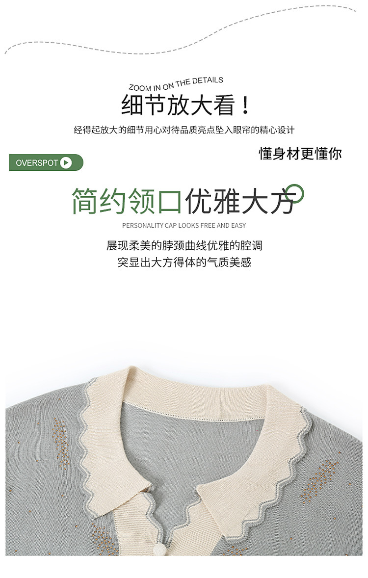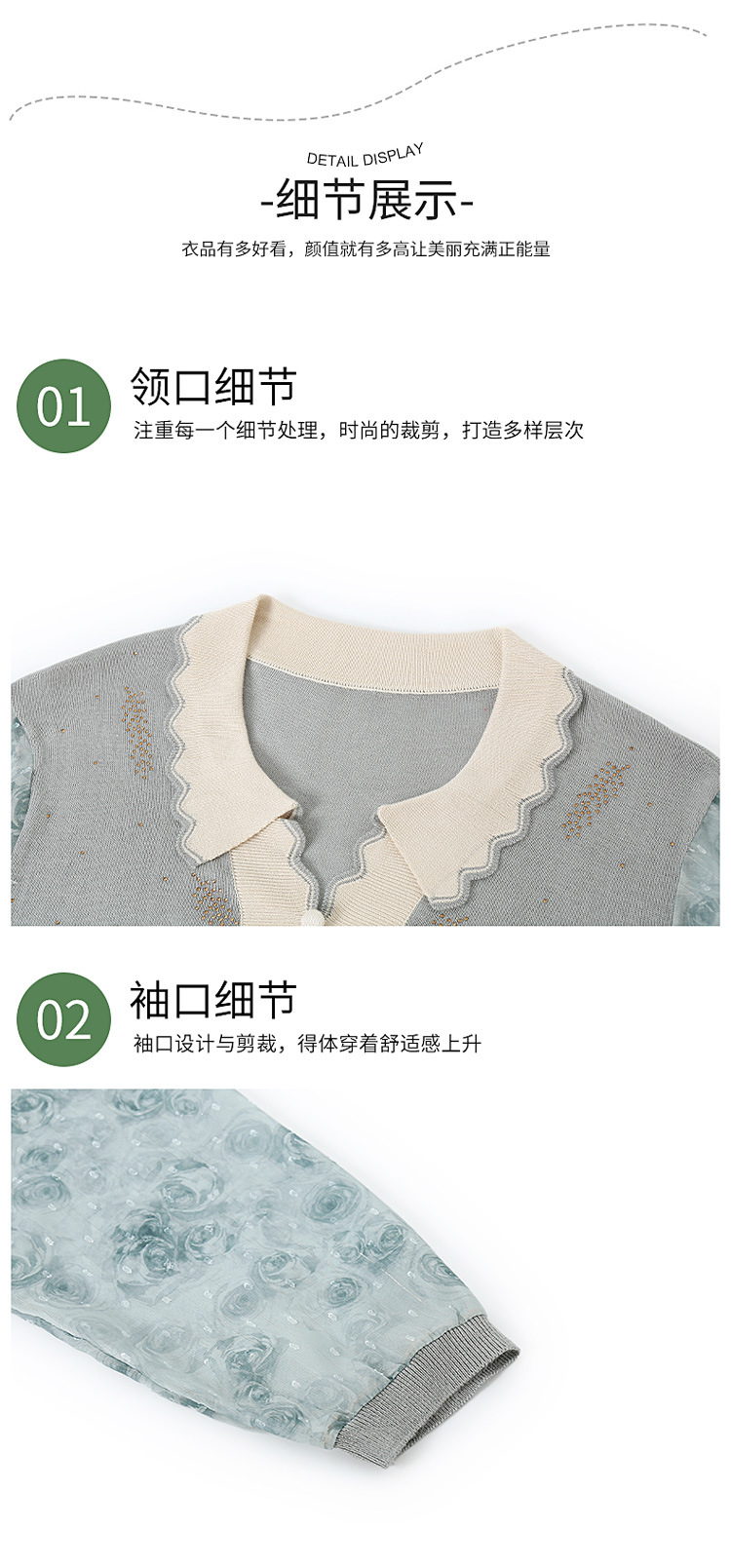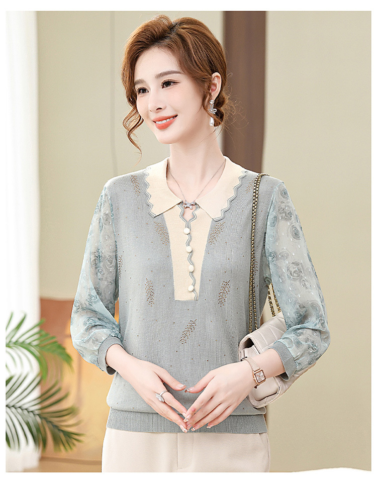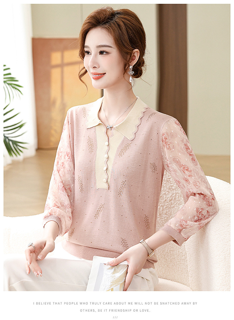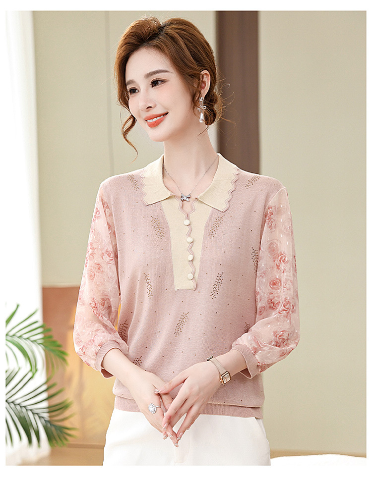 중년 엄마는 봄 새 옷깃 탑 중년 및 노인 여성 여름 니트웨어 3/4 소매 기질 작은 셔츠를 입습니다.스토어 가기