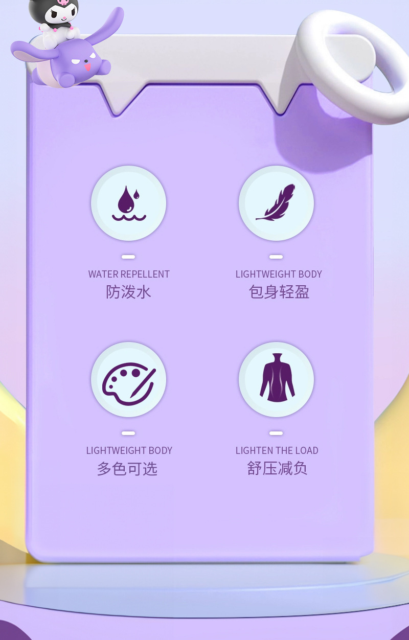 초등학생을위한 새로운 스타일의 schoolbag Kuromi 같은 스타일의 소녀 1, 2, 3, 6 학년 소녀 어린이 배낭 도매