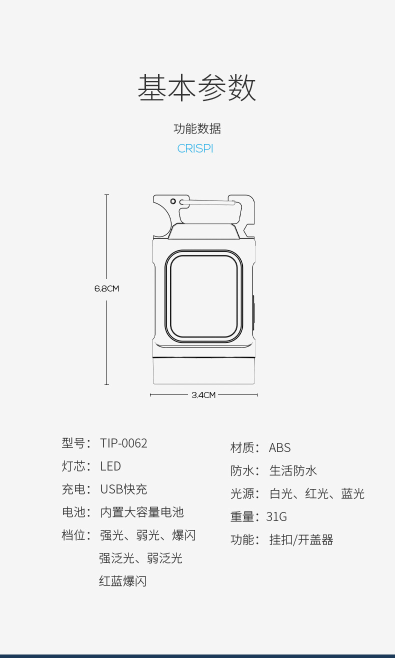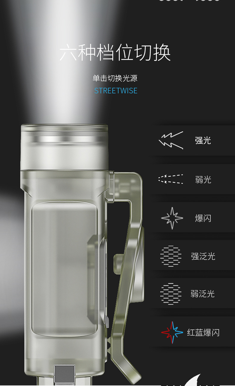 应用场景:帽夹灯/夜间行走/户外露营/看书/开瓶器/钥匙扣/警示用 等等