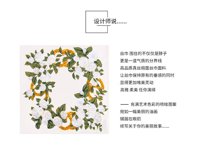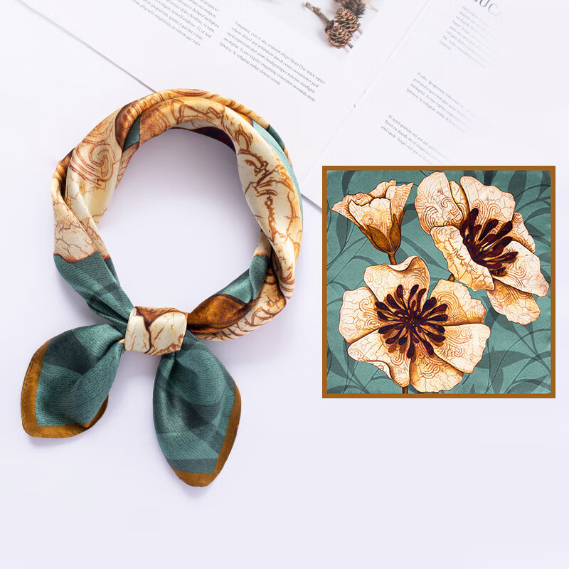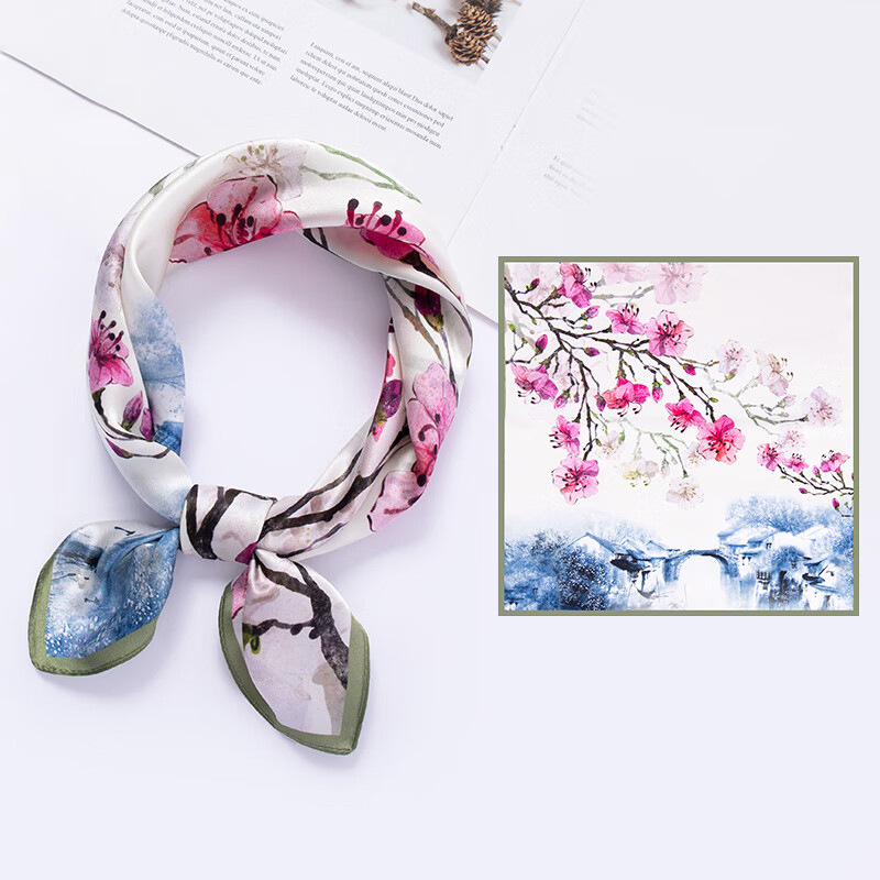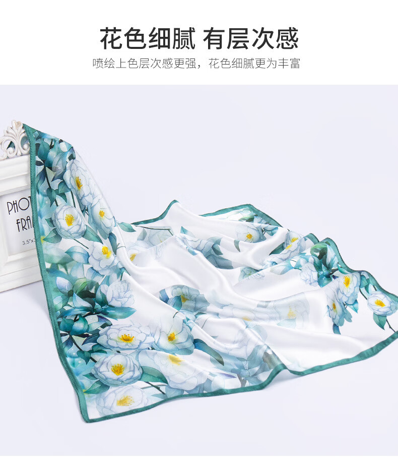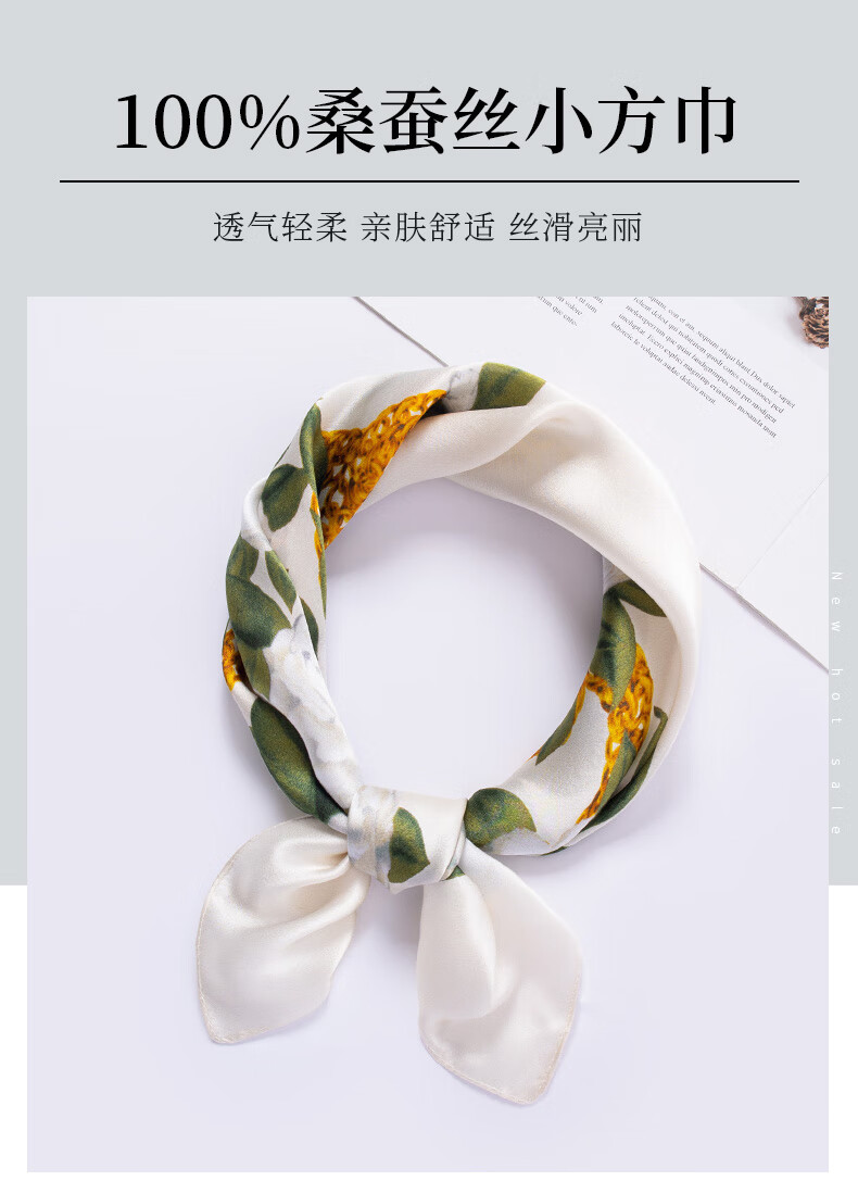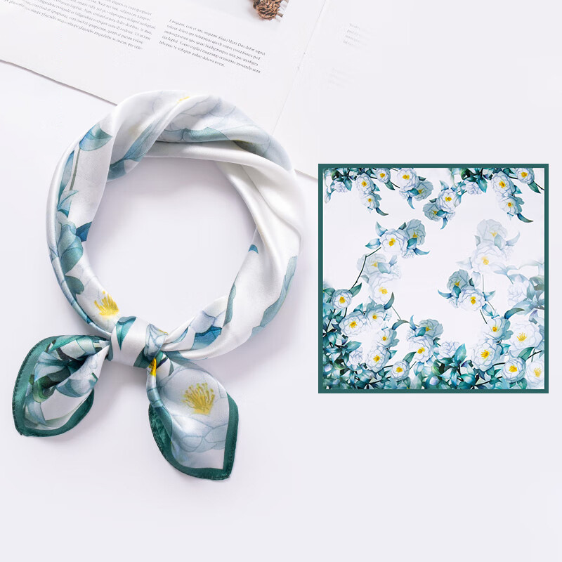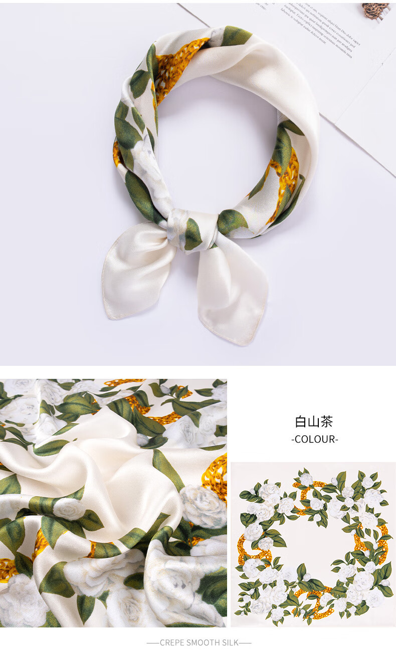 흰색 동백 24 새로운 식물 꽃 실크 스카프 100% 실크 작은 사각형 스카프 여름 인쇄 장식 매칭 기능스토어 가기