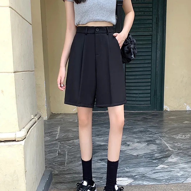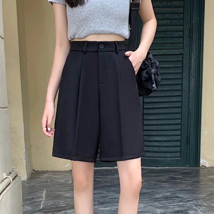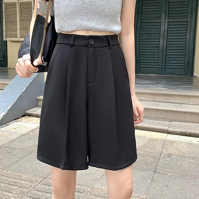 플러스 사이즈 블랙 크롭 팬츠 여성용 핫팬츠 여름 겉옷 23 슬리밍 통통녀 단어 20 캐주얼 하이 웨이스트 스트레이트 반바지스토어 가기