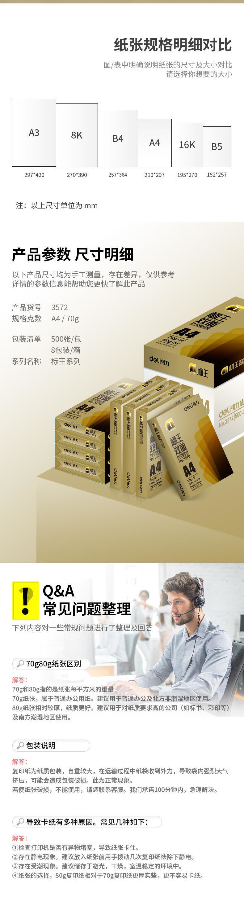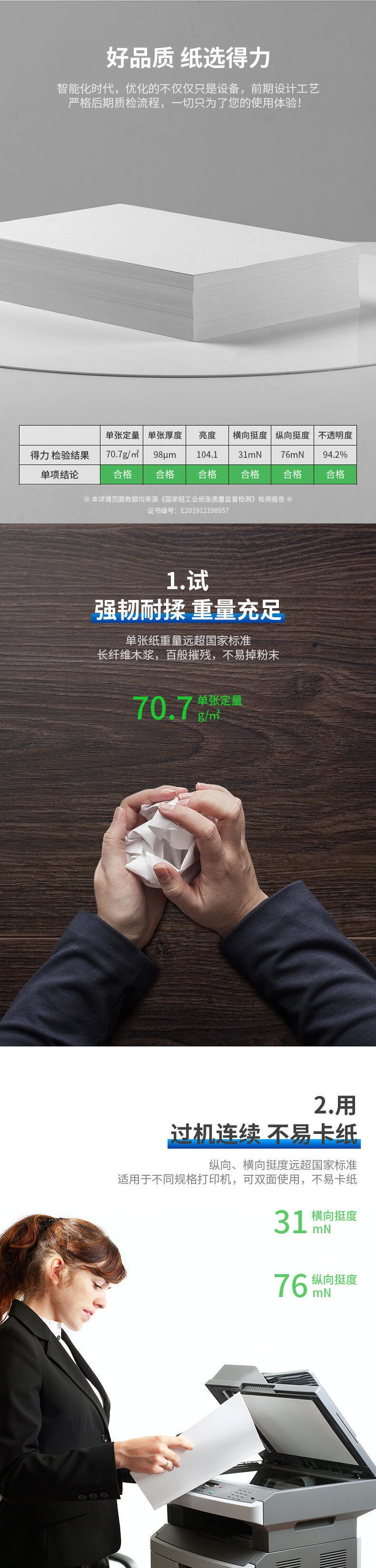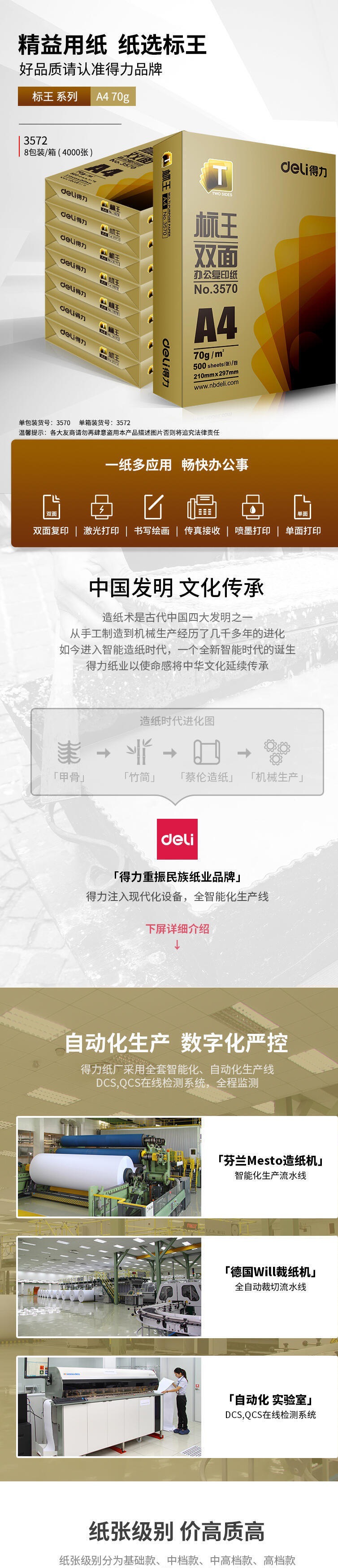 델리 A4 용지 양면 인쇄 용지 70g 학생 종이 사무실 용품 도매 80g 복사 용지 100 시트 500 시트스토어 가기