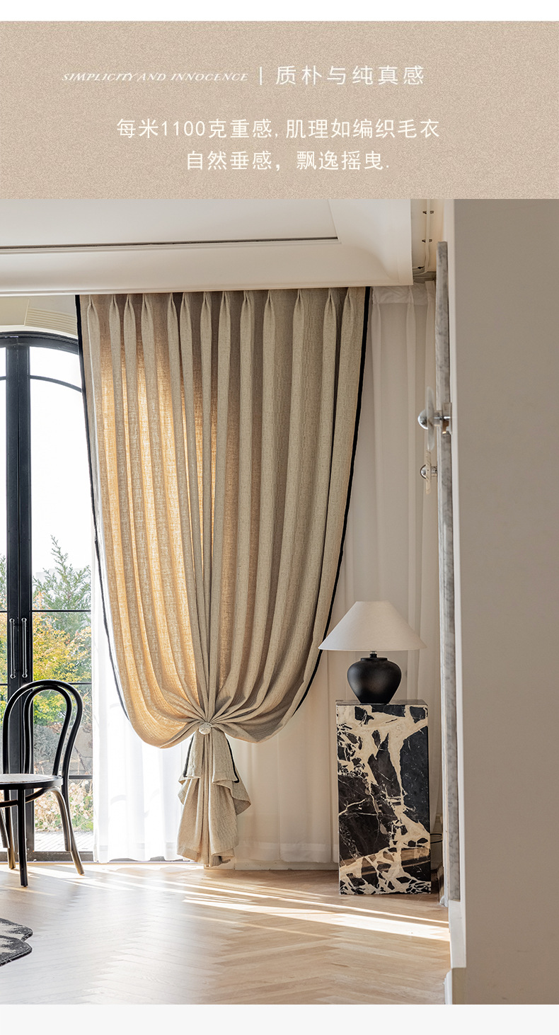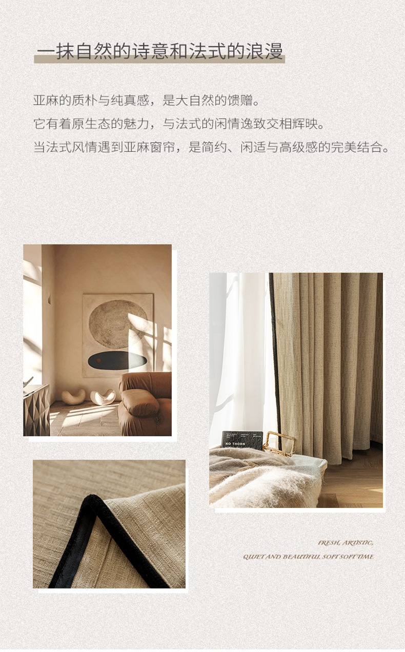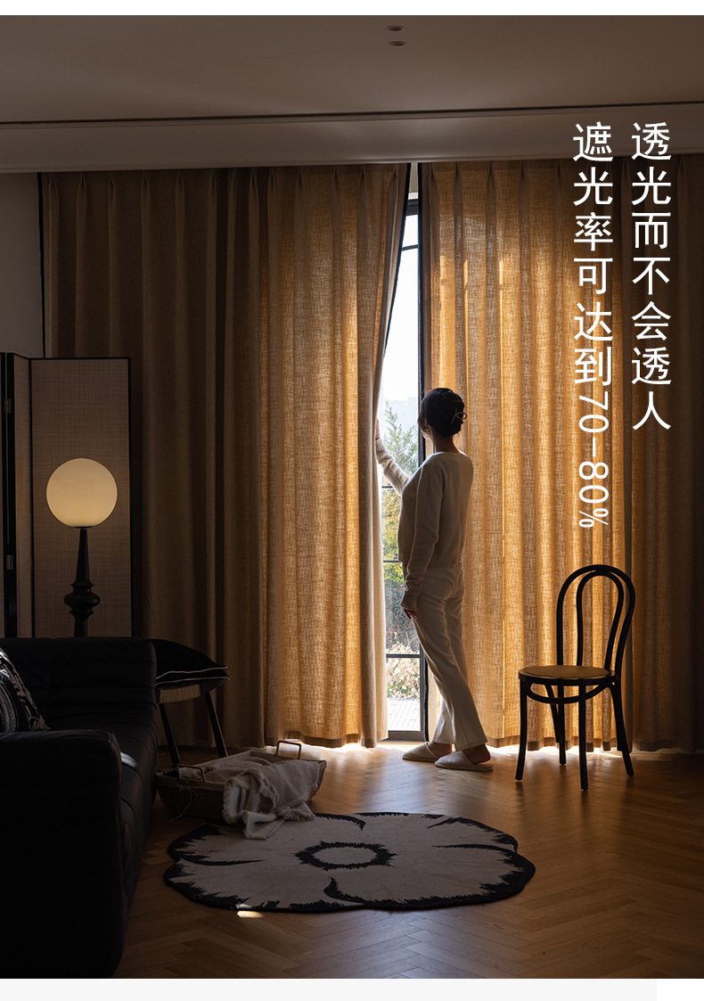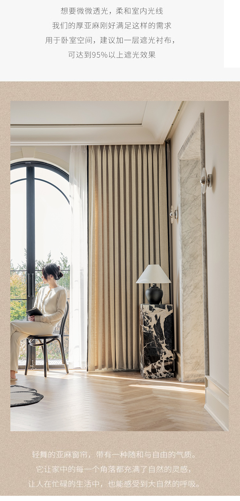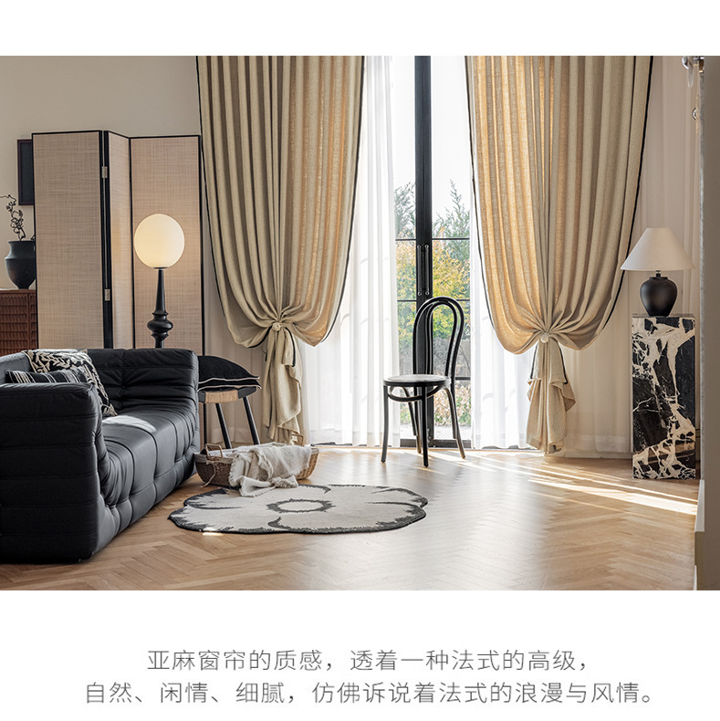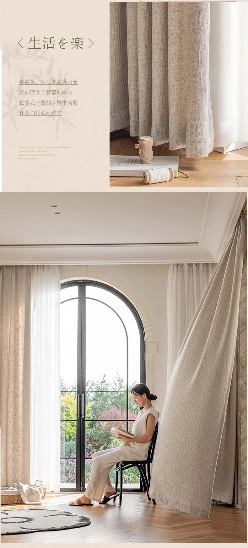 프랑스 린넨 커튼 반 음영 간단한 중국 스타일 거실 다실 연구 침대 및 아침 식사 스타일 투명