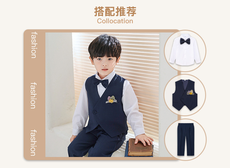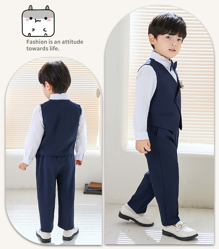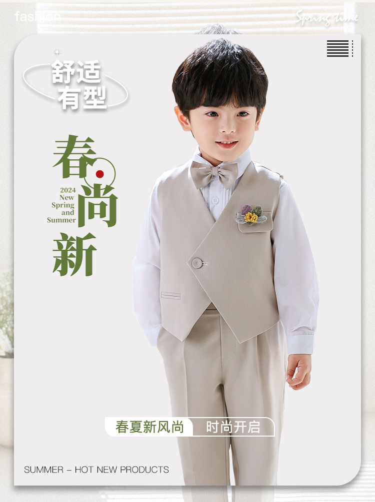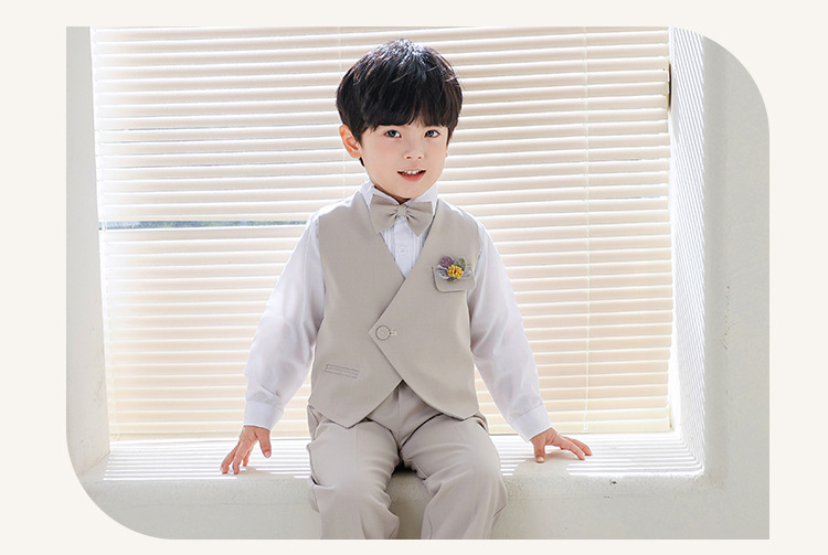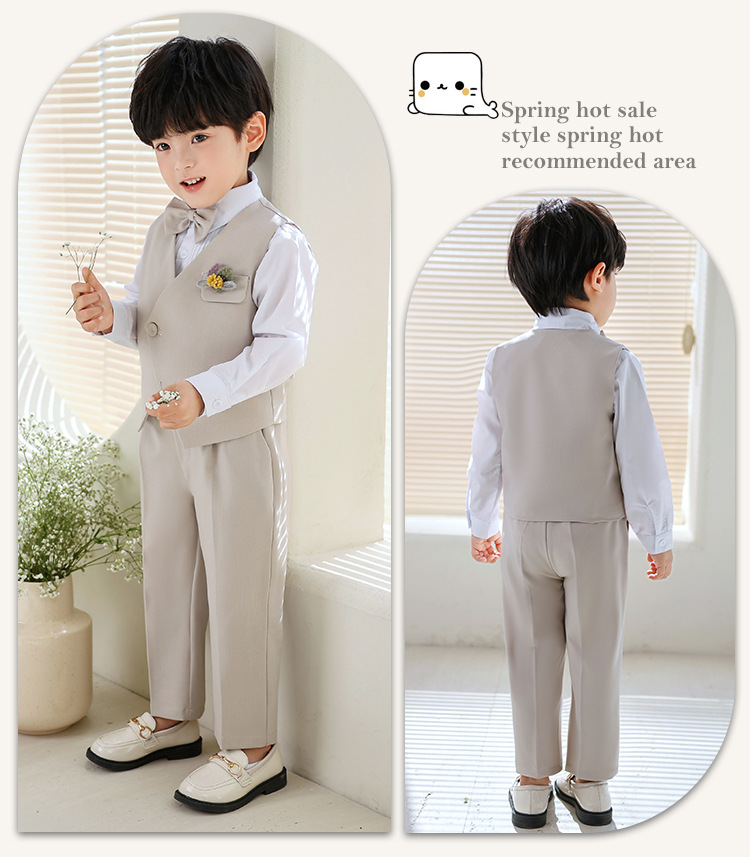 어린이 세트 원피스 소년 봄 한국식 단색 조끼 세트 소년의 생일 꽃 소녀 의상