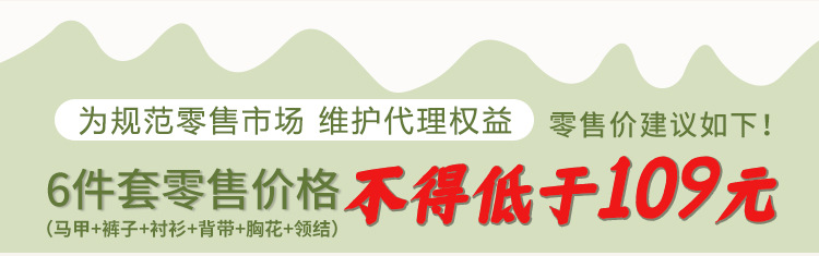 • 카키 6종세트 ([반팔셔츠]+조끼+바지+코사지+나비넥타이+멜빵)
