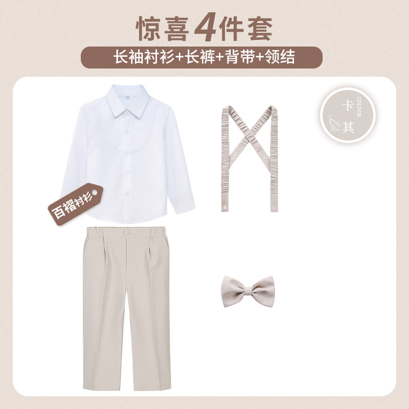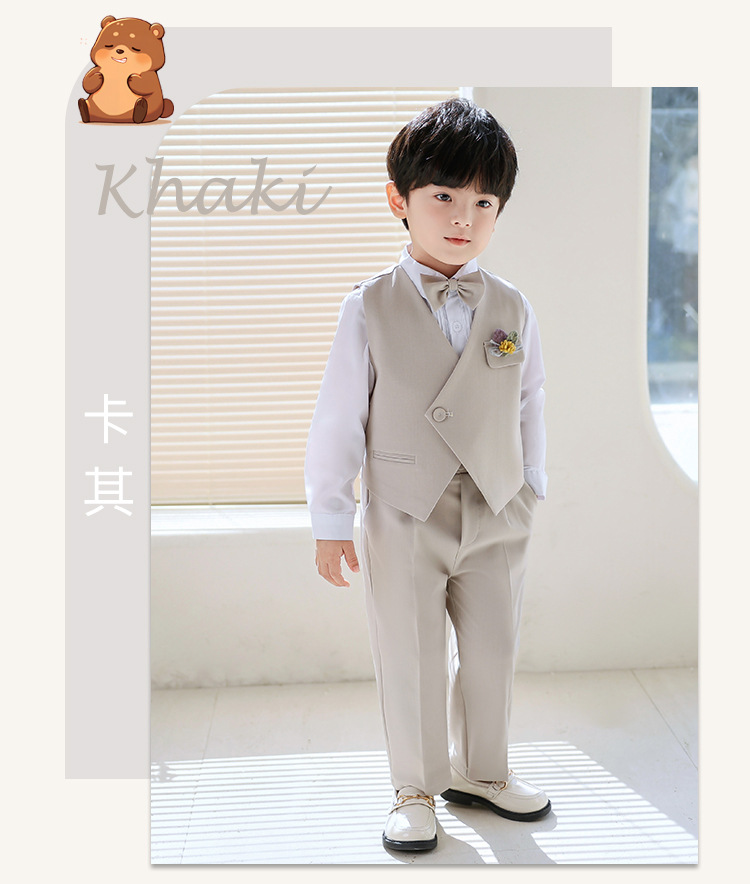 • 카키 6 피스 세트 (긴 소매 셔츠 조끼 + 바지 + corsage + 나비 넥타이 + 스트랩)