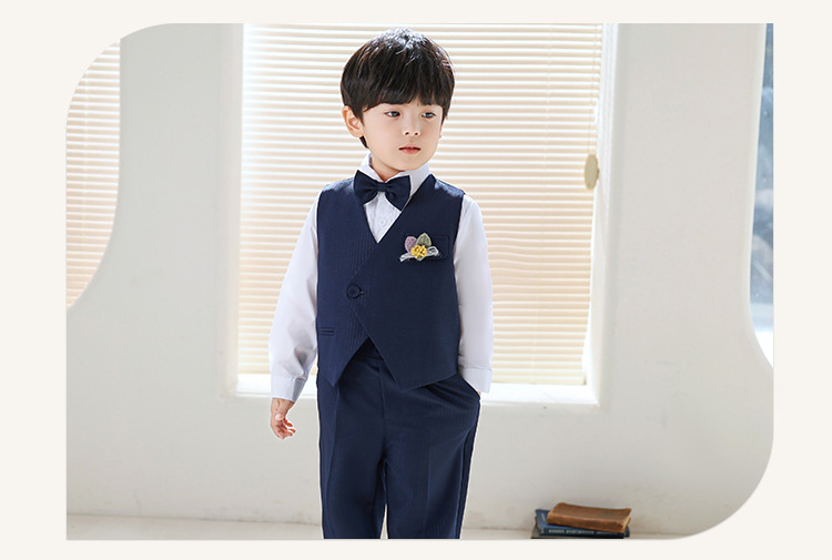 • 네이비 5 피스 세트 (조끼 + 바지 + corsage + 나비 넥타이 + 스트랩)