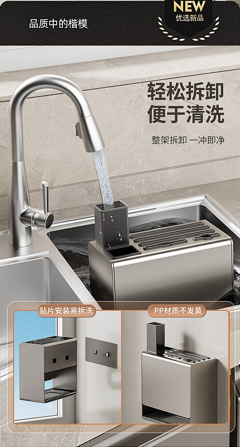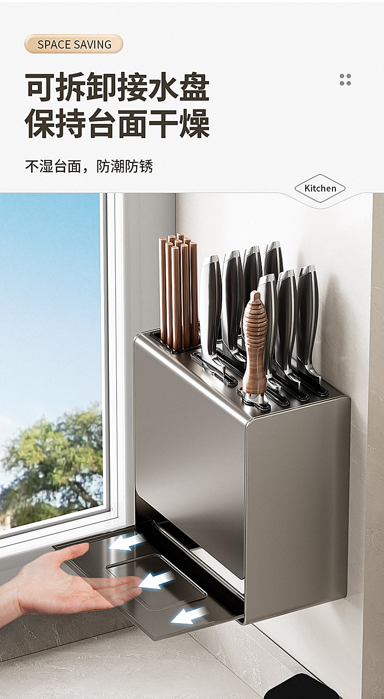 칼 홀더 보관 랙 총 회색 주방 나이프 홀더 카운터 탑 젓가락 케이지 나이프 통합 스토리지 랙 벽걸이 형 젓가락 케이지 나이프 홀더