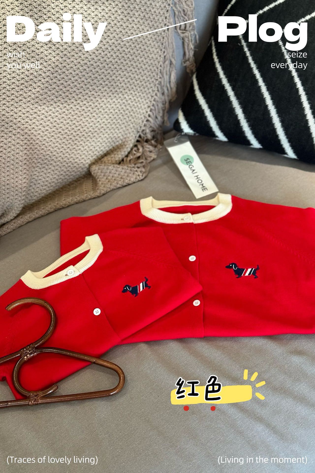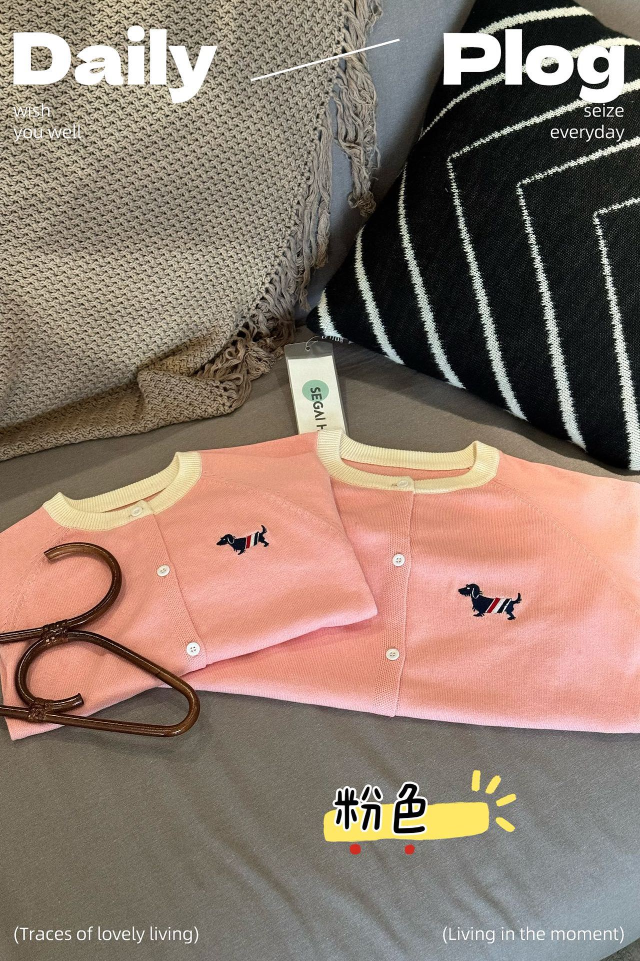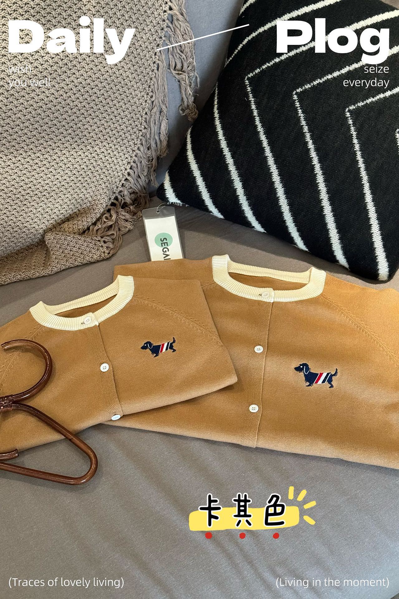 봄과 가을의 새로운 패션 브랜드 니트 카디건 소년 소녀를위한 부모-자식 착용 커플은 TB 강아지 니트 카디건 작은 코트를 착용합니다.스토어 가기