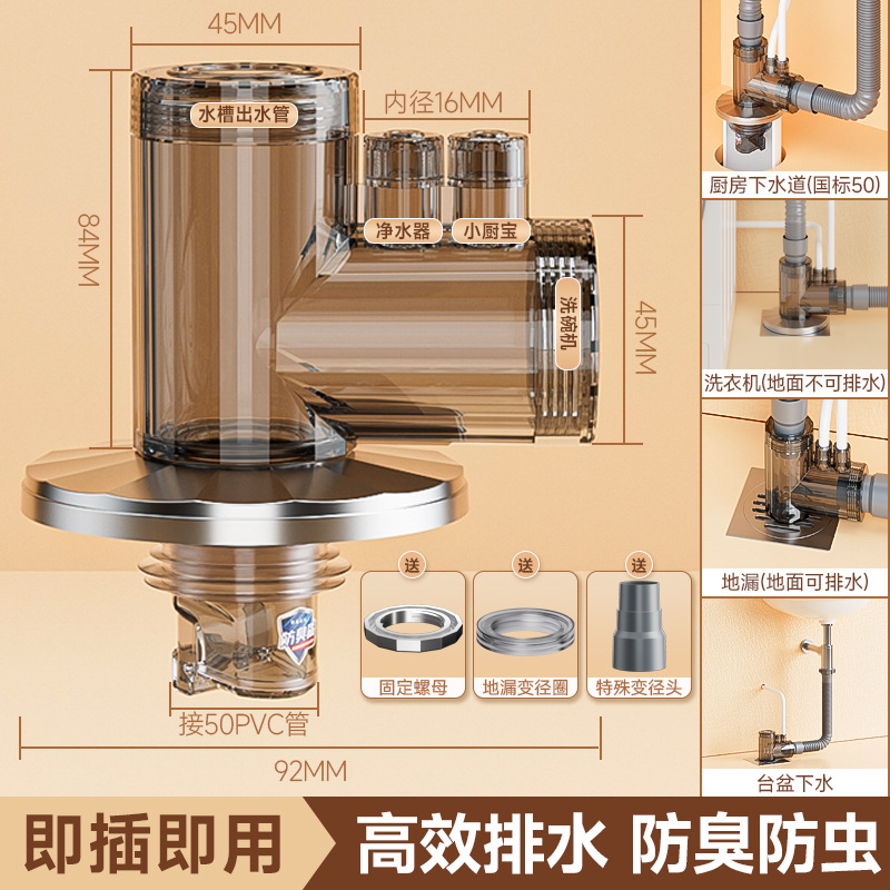 • 50 튜브 바닥 배수 보편적 인 3 방향 탈취제 모델 [적용 가능한 세탁기-바닥 배수구 물]]