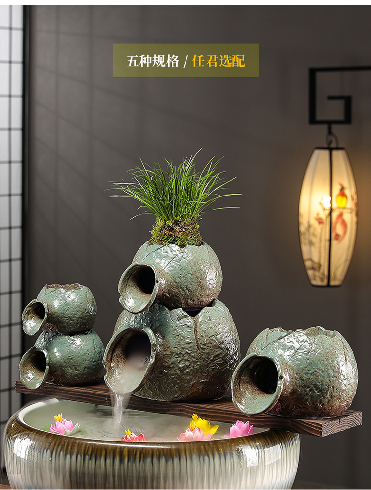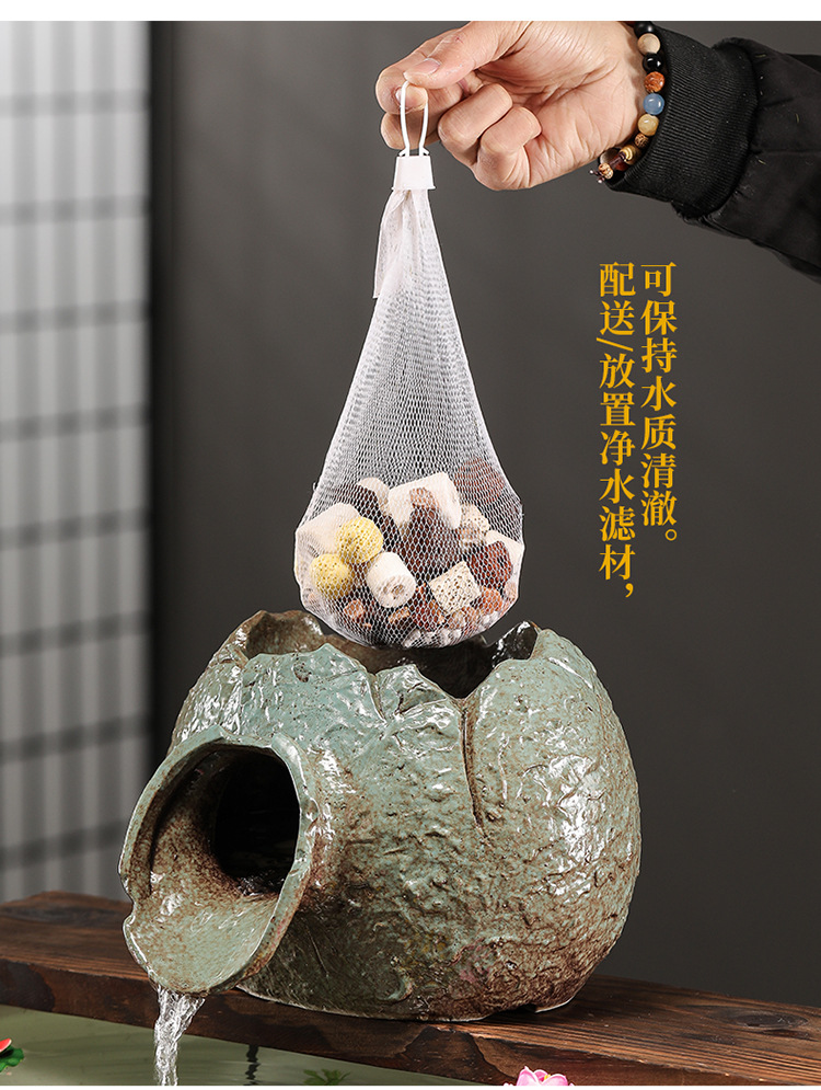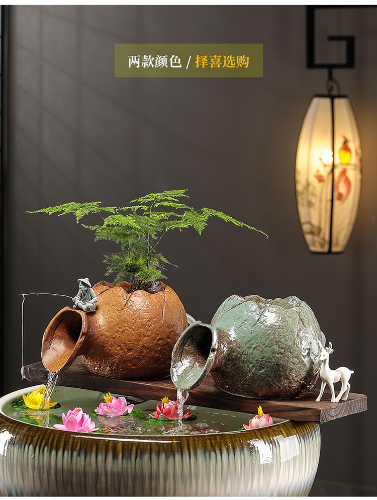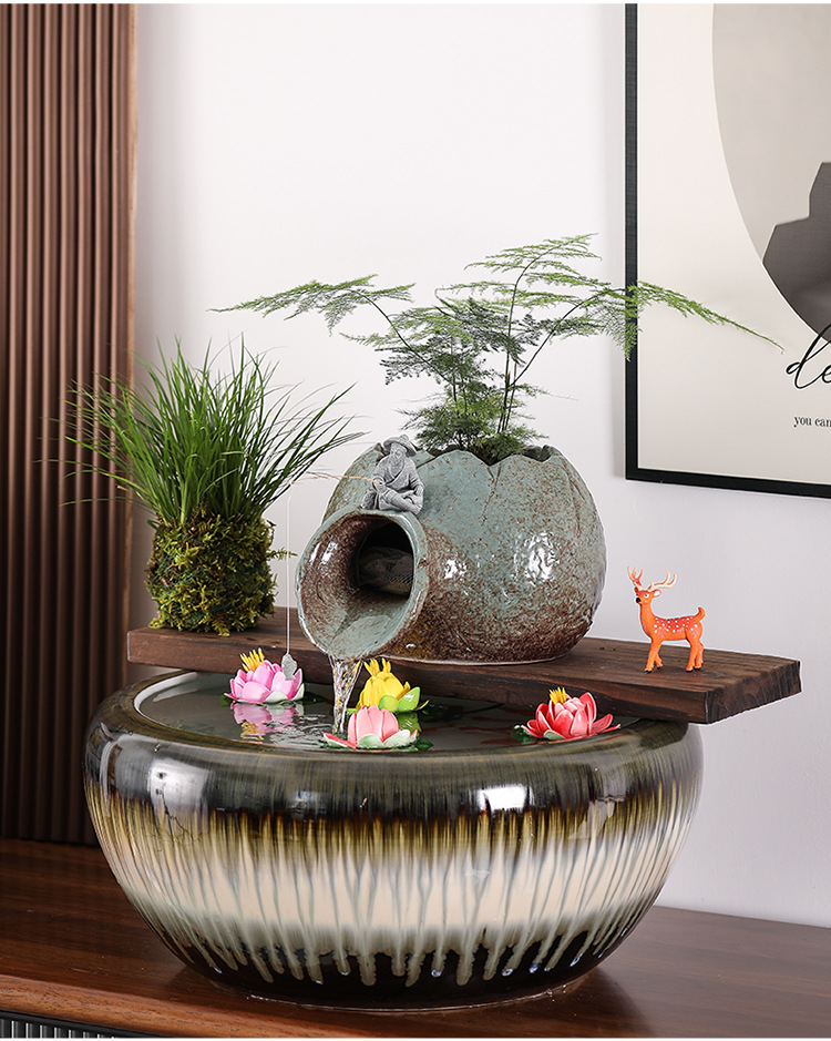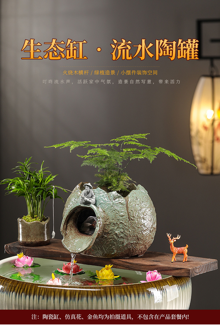 창조적 인 생태 탱크 고대 물고기 탱크 물 순환 세라믹 오픈 탱크 순환 필터 풍경 정원 물 장식