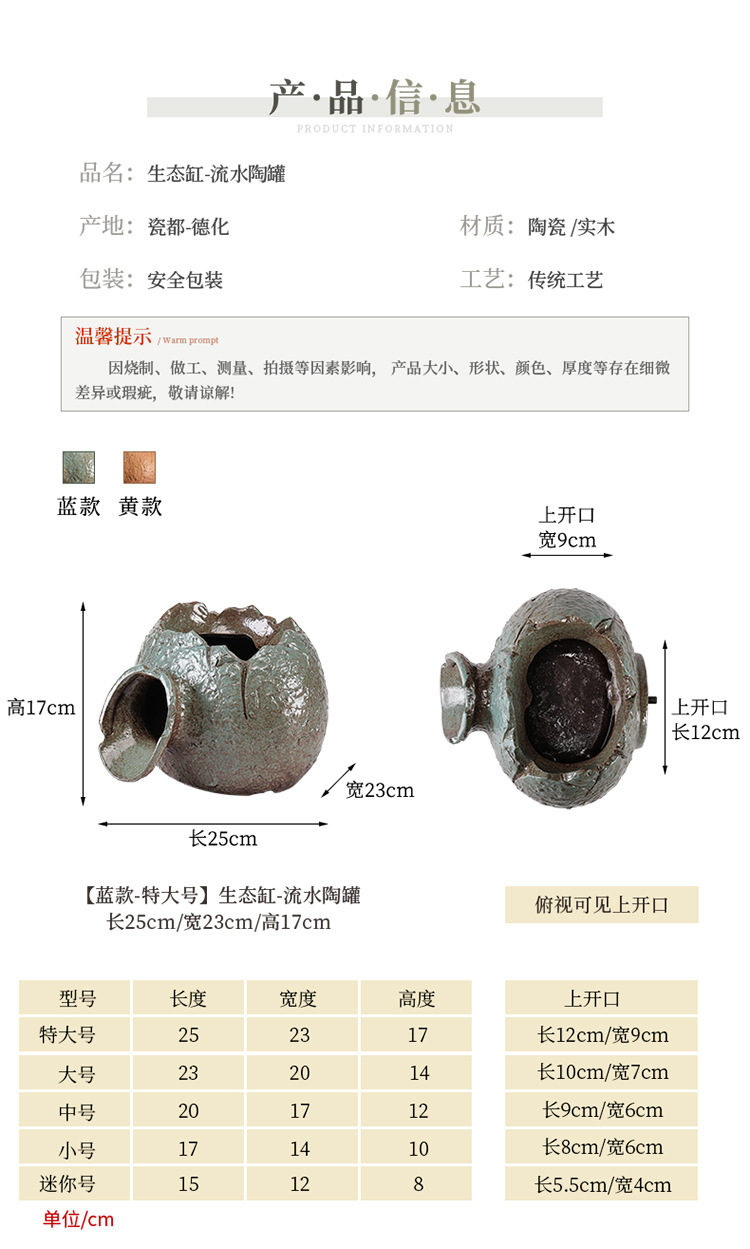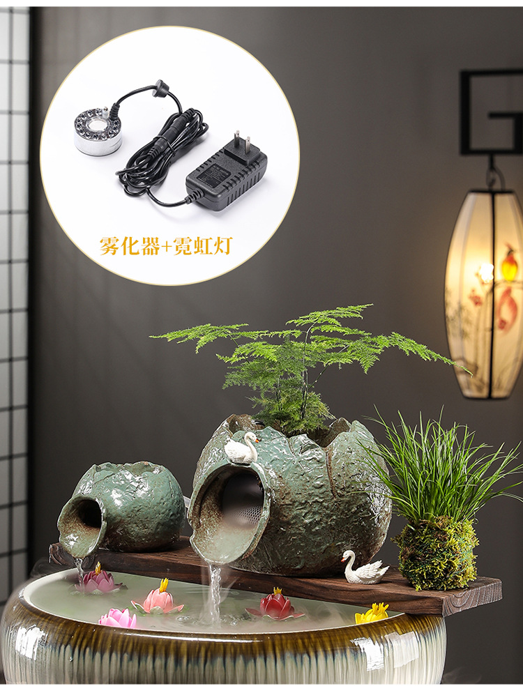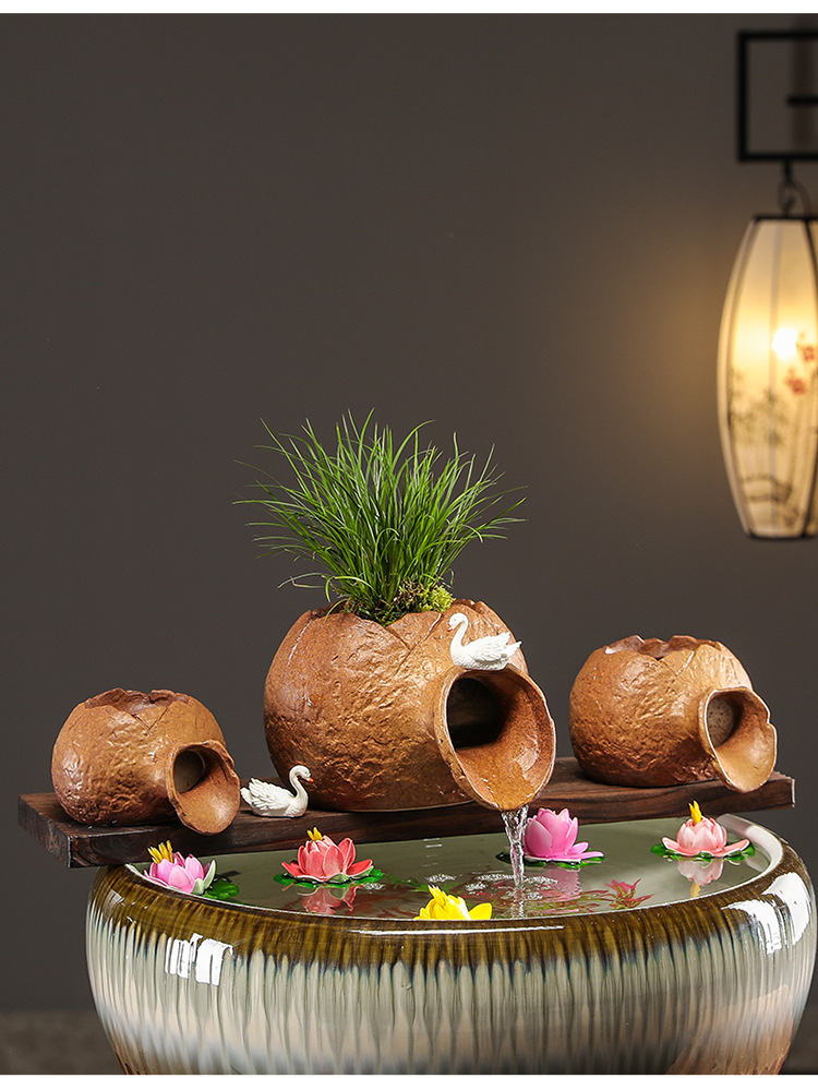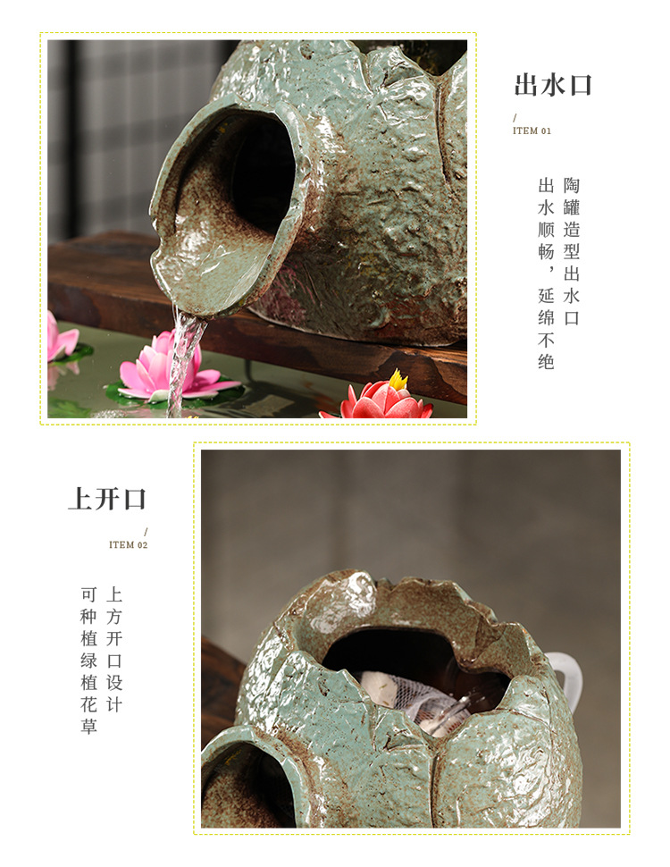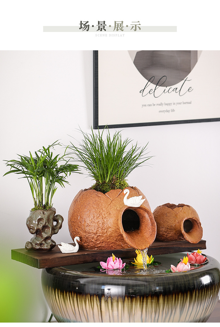창조적 인 생태 탱크 고대 물고기 탱크 물 순환 세라믹 오픈 탱크 순환 필터 풍경 정원 물 장식