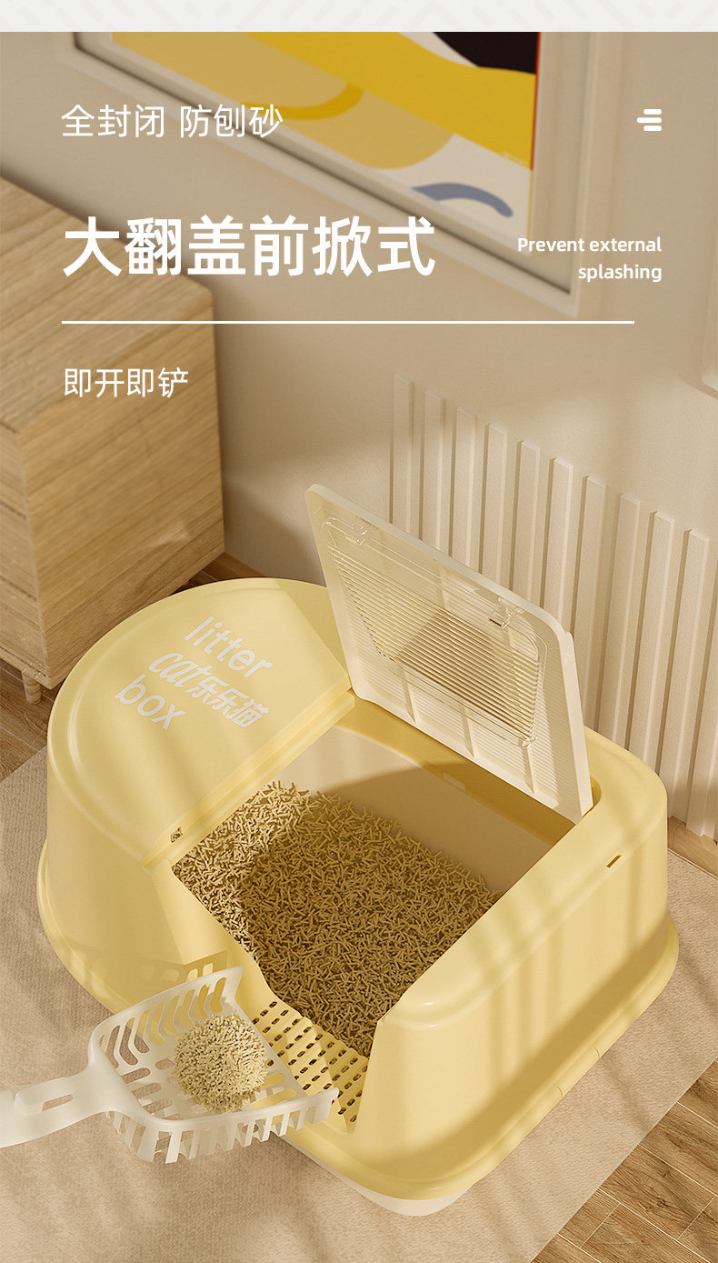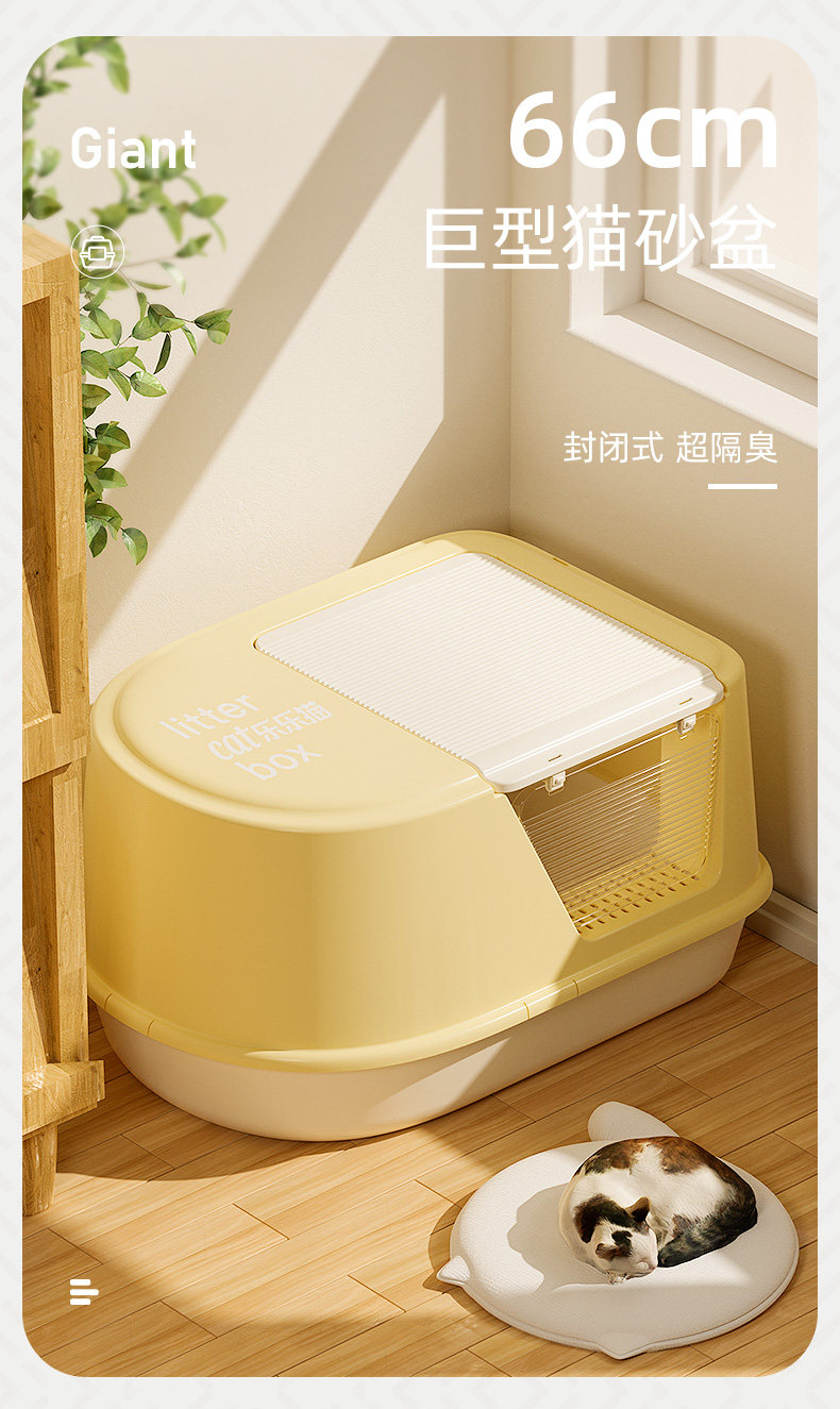 【品名】:乐乐猫超大全封闭猫砂盆- (奶油黄/春辰绿 )