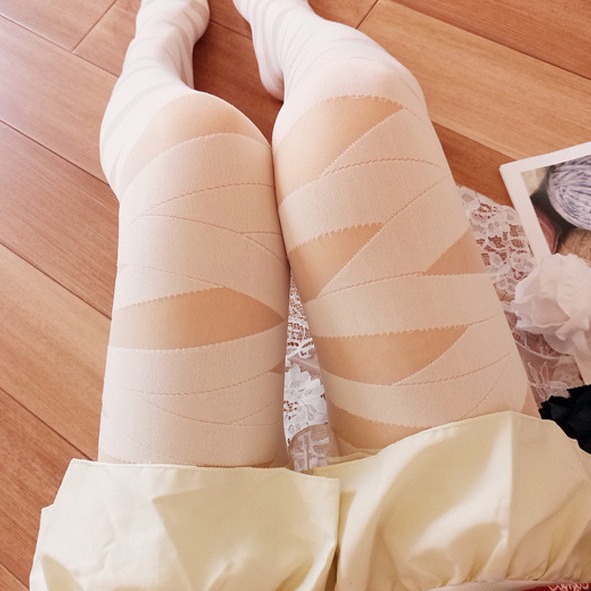 무릎 붕대 위에 로리타 크로스 스트랩 팬티 스타킹 중공 반투명 스타킹 로리타 양말 우유 흰색 바인딩 양말