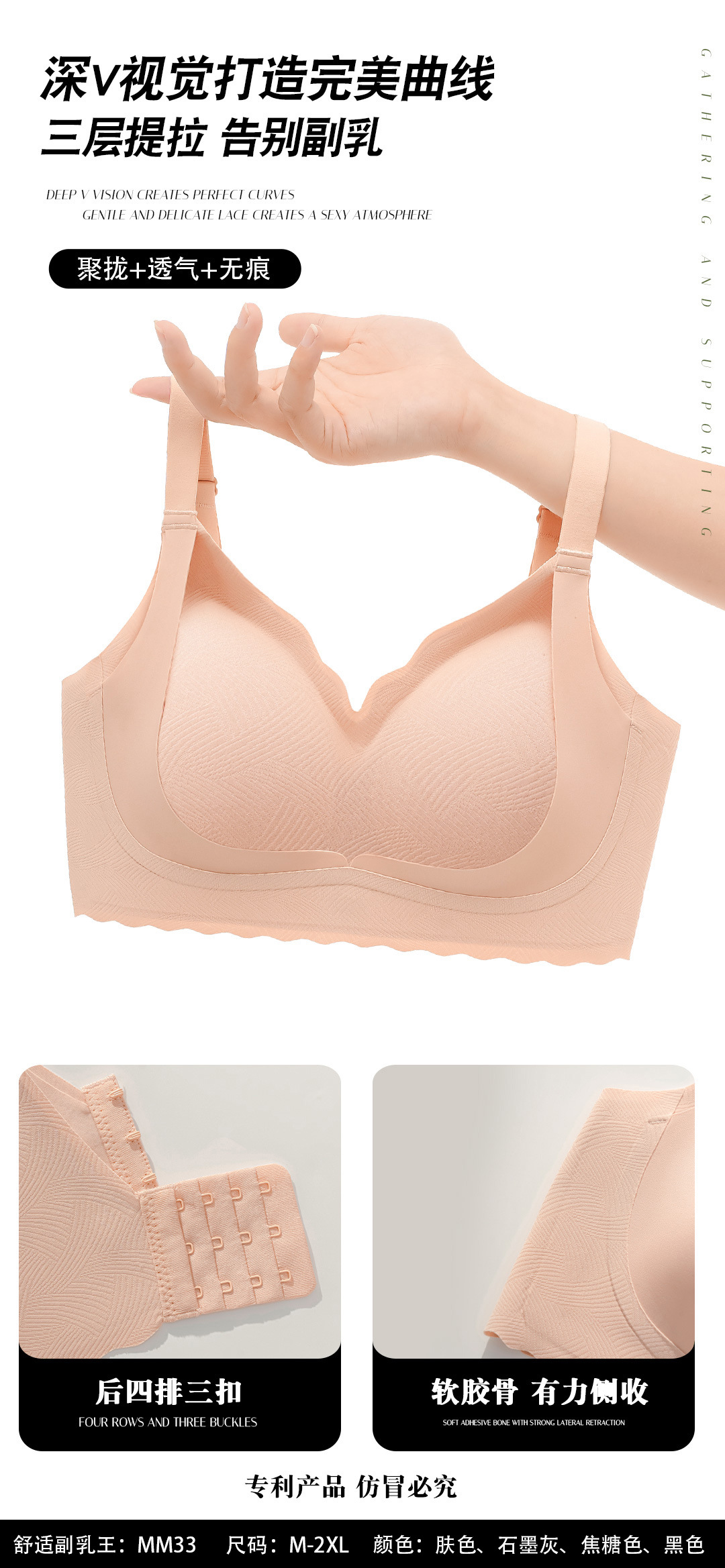 원활한 안티 중력 리프팅 조정 고정 컵 속옷 무선 푸시 업 안티 처짐 통기성 가슴 브래지어