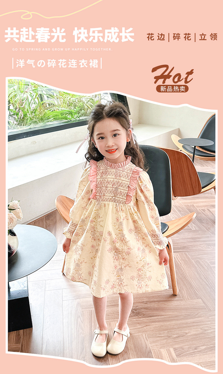 소녀 장미 꽃 원피스 2024 봄 새로운 서양식 유행 아동복 아기 소녀 달콤한 공주 원피스 패션스토어 가기