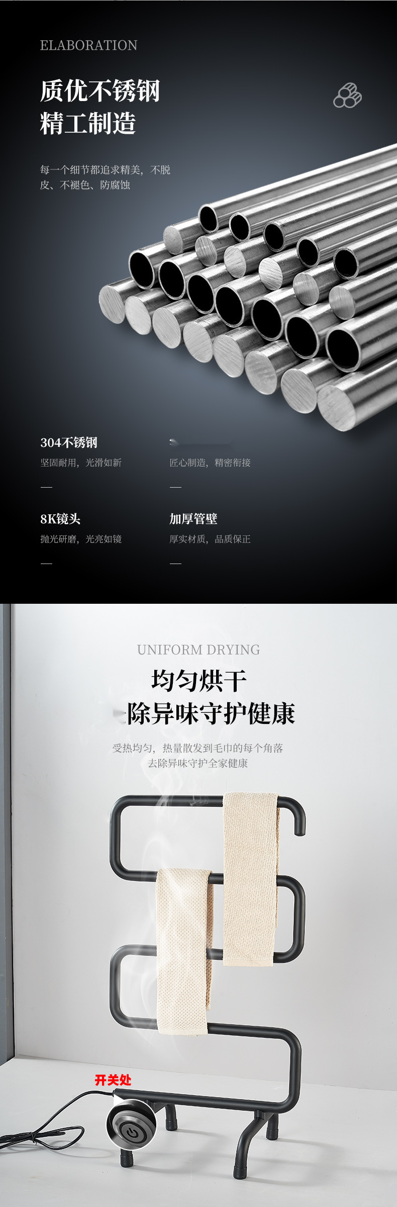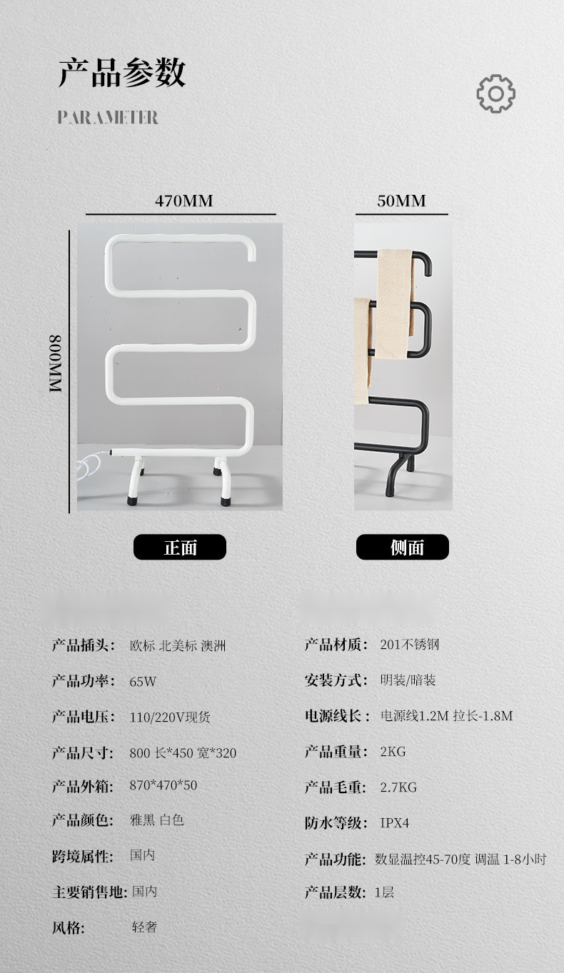 국경 유럽 및 미국 표준 110v 영국 표준 전기 타월 랙 스테인레스 스틸 이동식 호텔 온도 제어 난방 건조 랙