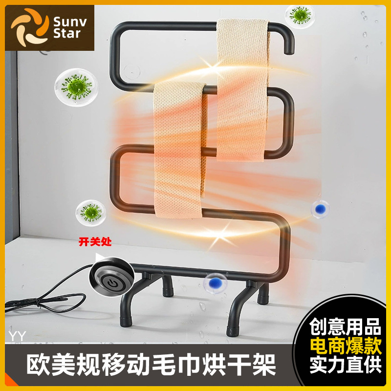 국경 유럽 및 미국 표준 110v 영국 표준 전기 타월 랙 스테인레스 스틸 이동식 호텔 온도 제어 난방 건조 랙스토어 가기
