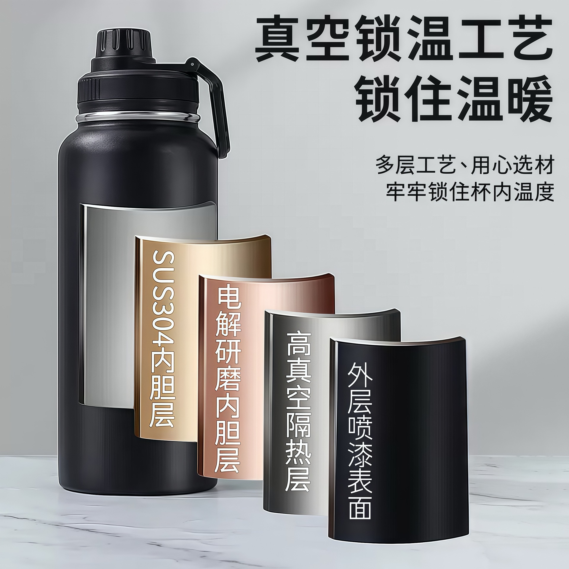 국경 간 32oz 공간 병 304 스테인레스 스틸 절연 컵 야외 휴대용 손잡이 사이클링 등산 스포츠 병