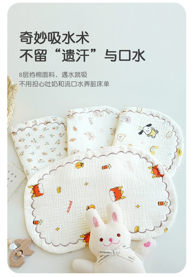 아기 구름 베개 0-6 개월 아기 땀 흡수성 통기성 침 방지 우유 베개 8 층 거즈 베개 수건 어린이 베개