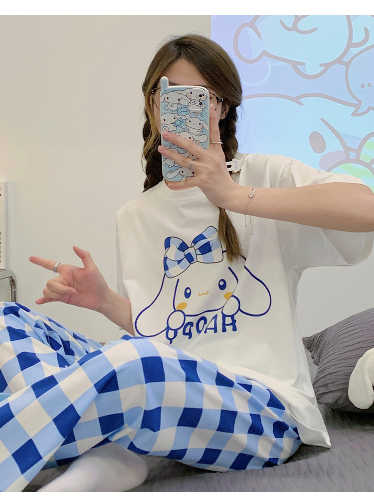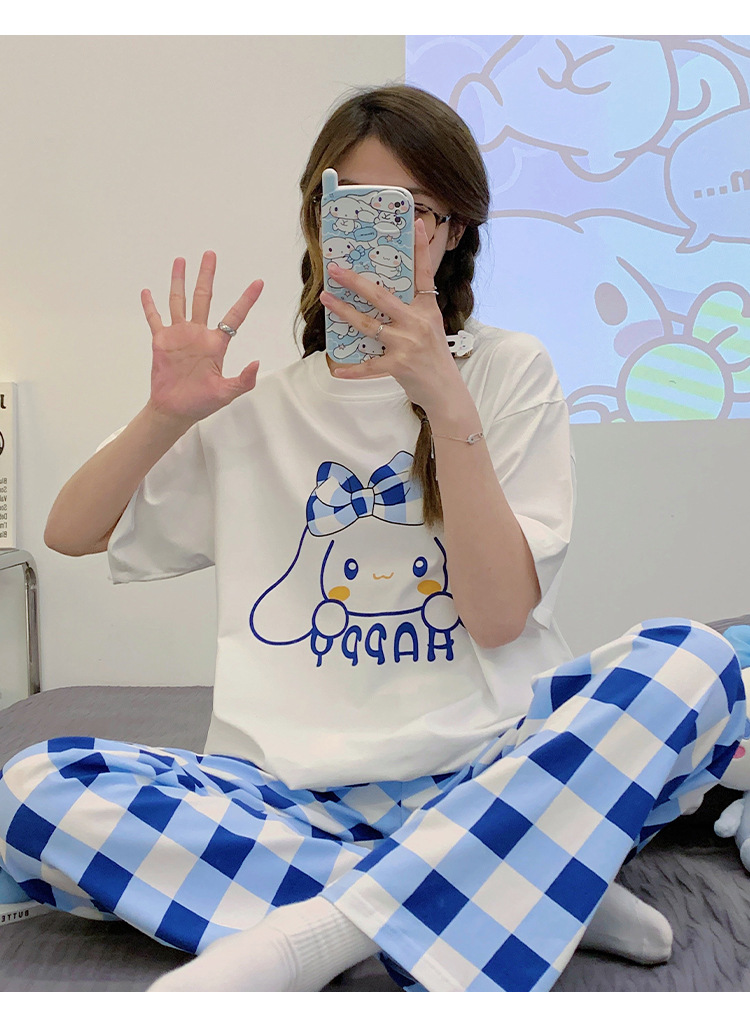 여자 잠옷 여자 봄 여름 반팔 바지 면화 얇은 만화 중학생 18 세 고등학생 가정복 세트스토어 가기
