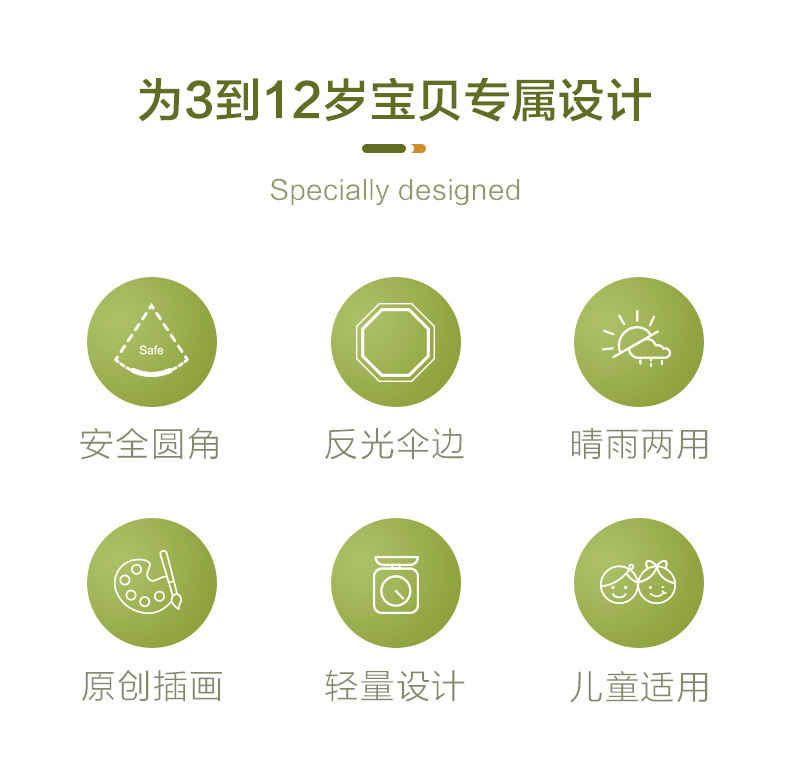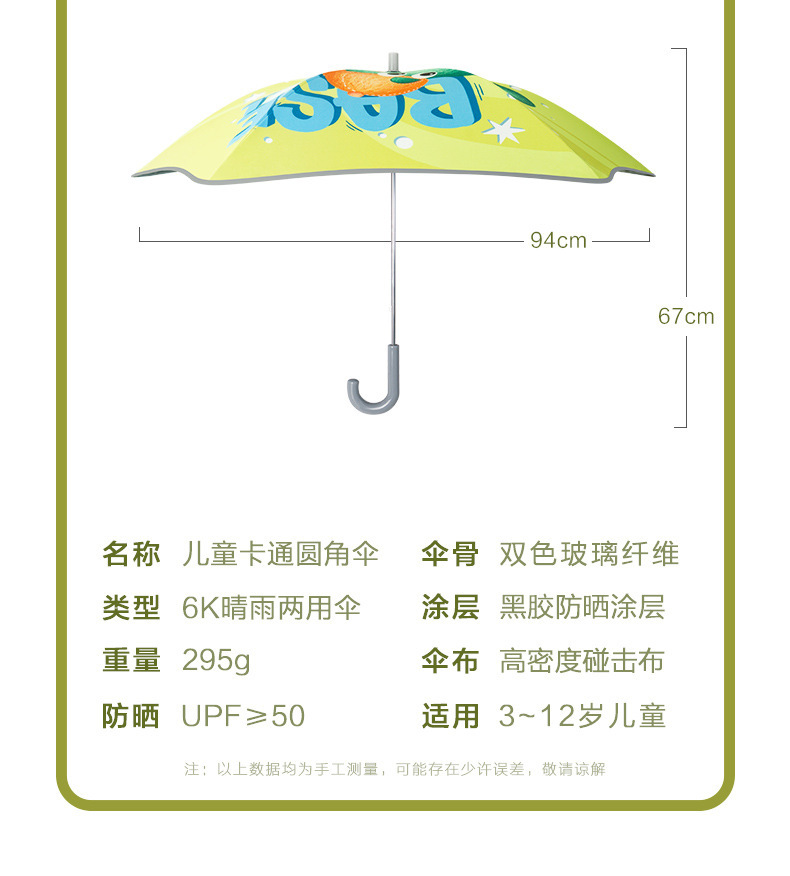 만화 패턴 둥근 모서리 안전 어린이 우산 초등학교 학생 안티 펑크 블랙 접착제 햇볕이 잘 드는 우산 야외 태양 보호 어린이 우산