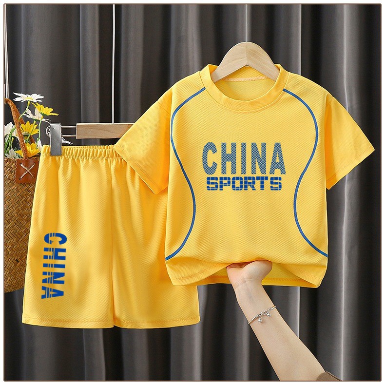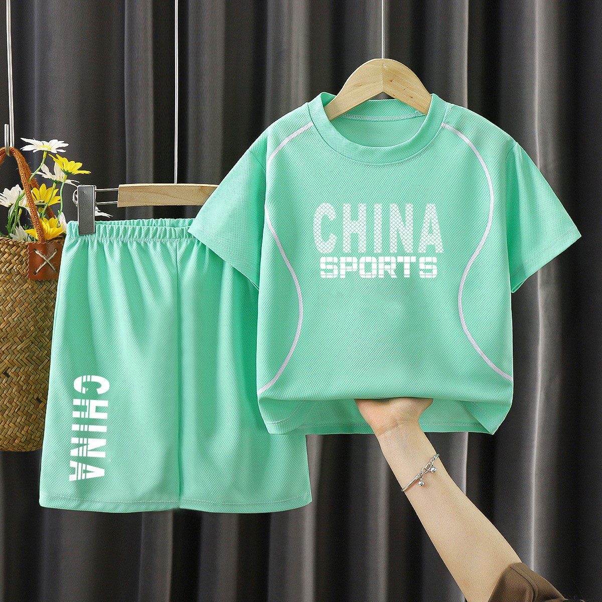 아이들의 느슨한 캐주얼 반팔 반바지 투피스 세트를 세트 어린이 여름 메쉬 통기성 편지 인쇄 스포츠