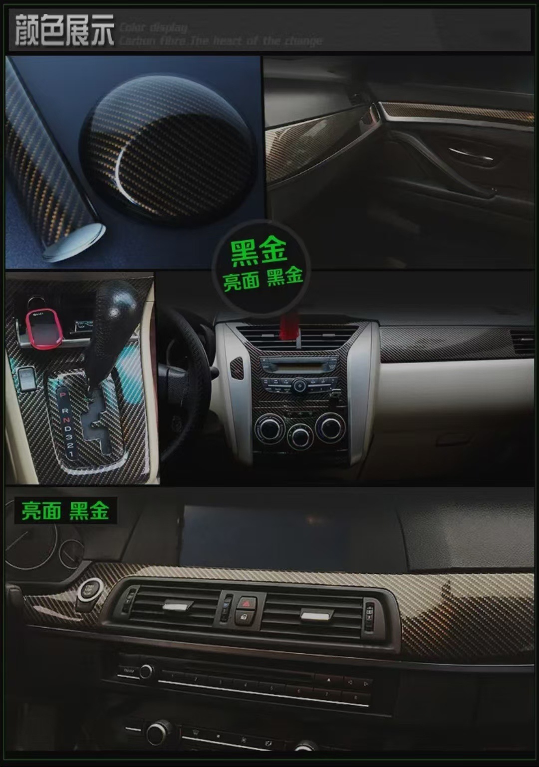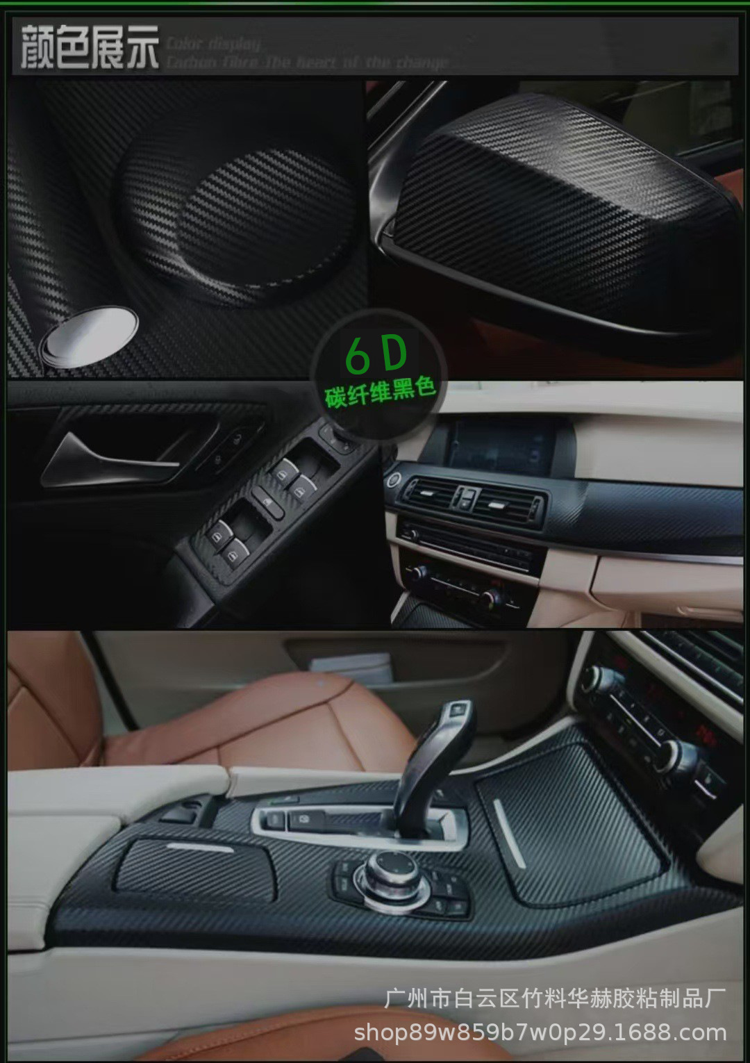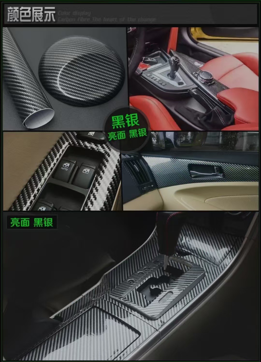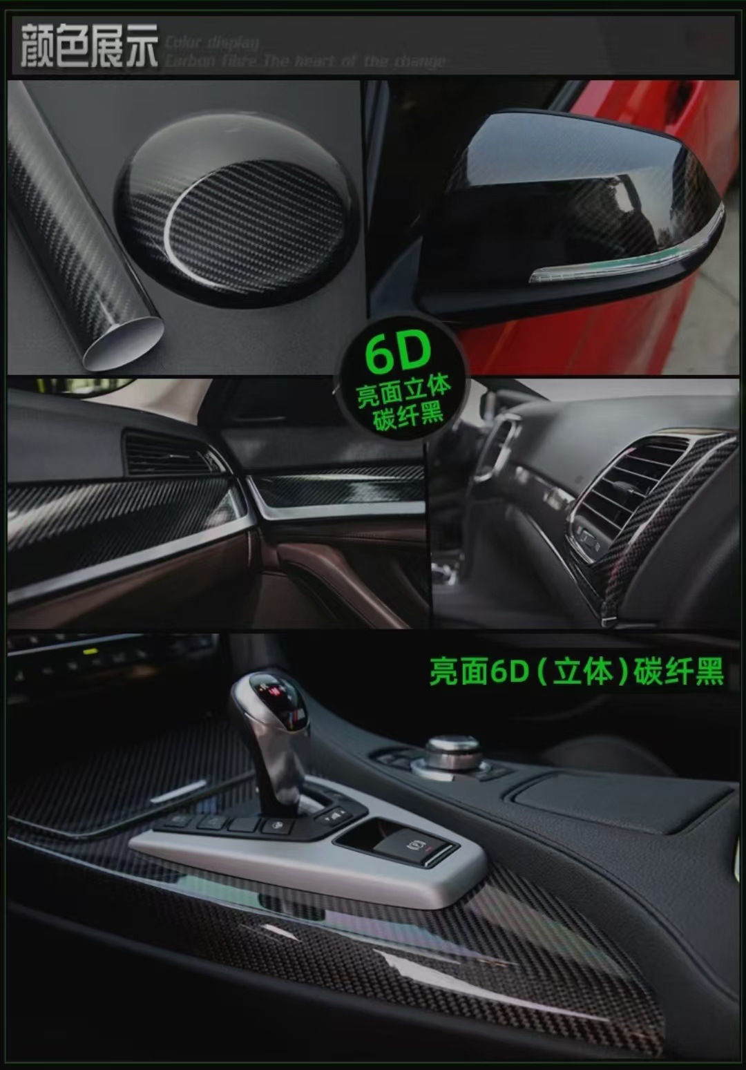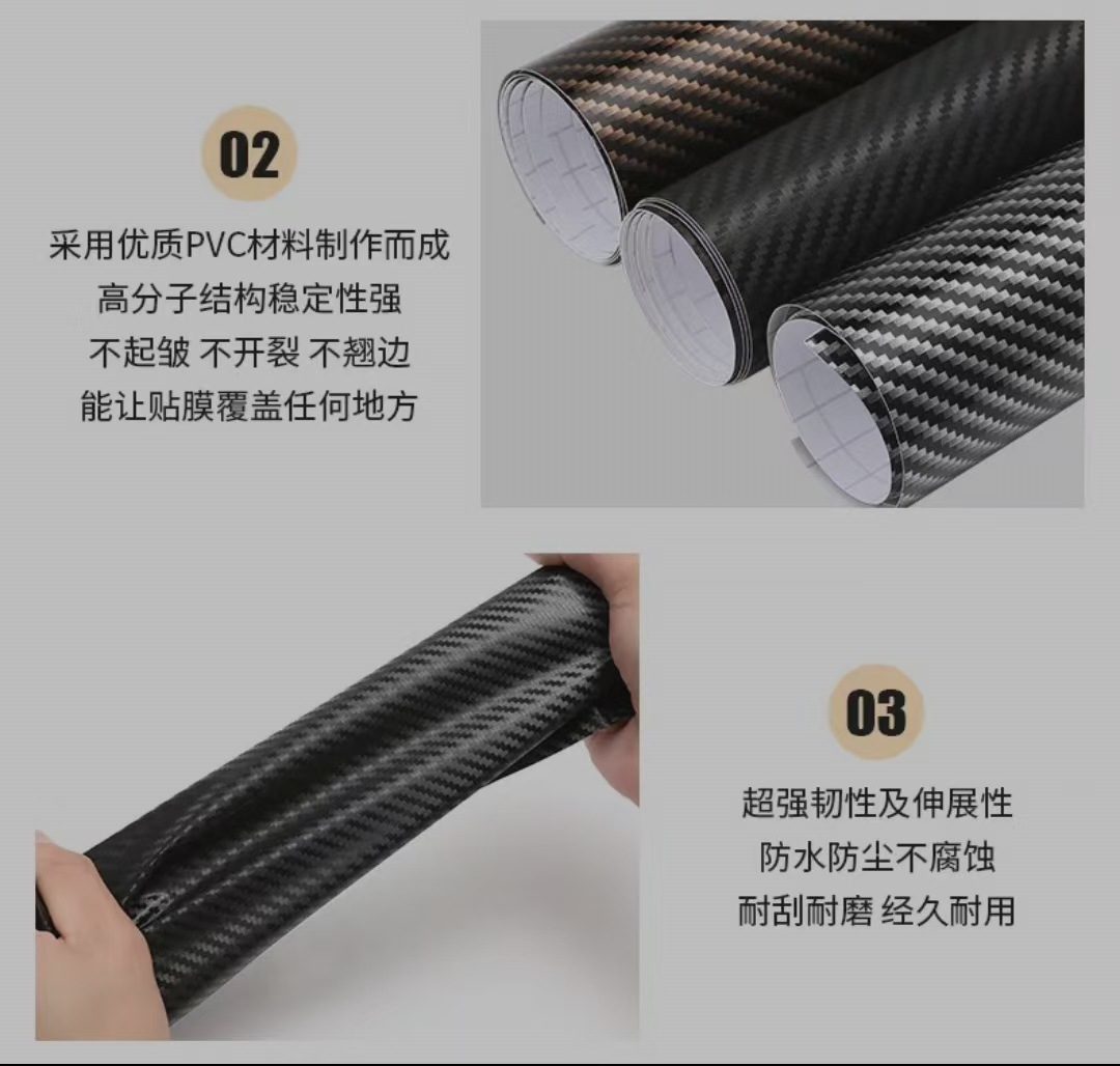 亮面汽车碳纤维6D改色膜机盖车顶内饰后视镜摩托车碳纤黑贴纸改装